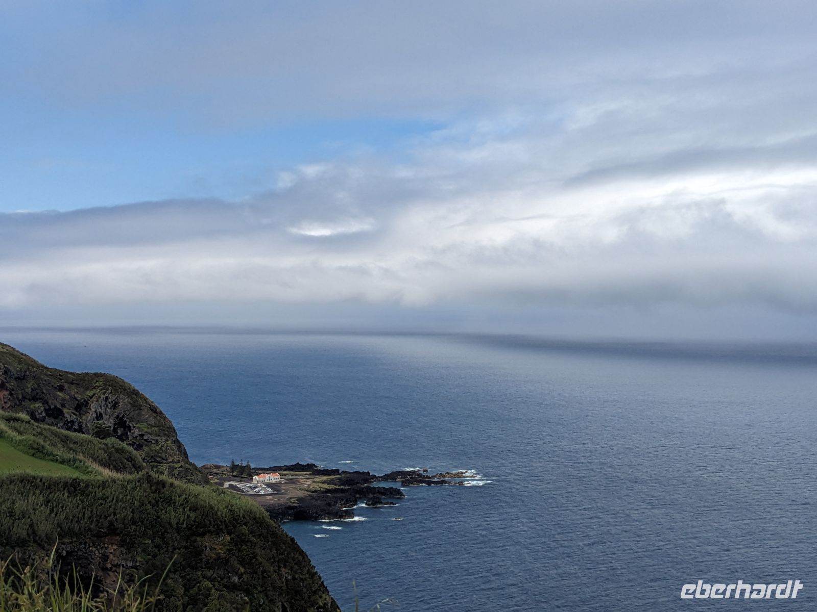 Heute führte uns die Route tief in die westliche Seite der Insel Faial, wo sich Naturgewalten in einer einzigartigen Landschaft zeigen. Unser erster Halt war der Aussichtspunkt Ponta Furada – steile Felsen, aufgewühlte See und die scharfen Konturen der Lavaküste gaben den Ton für diesen Tag vor. Der Blick auf den Atlantik war wild und ungezähmt, und schon hier wurde klar: Faial hat ein anderes, herberes Gesicht als São Miguel.