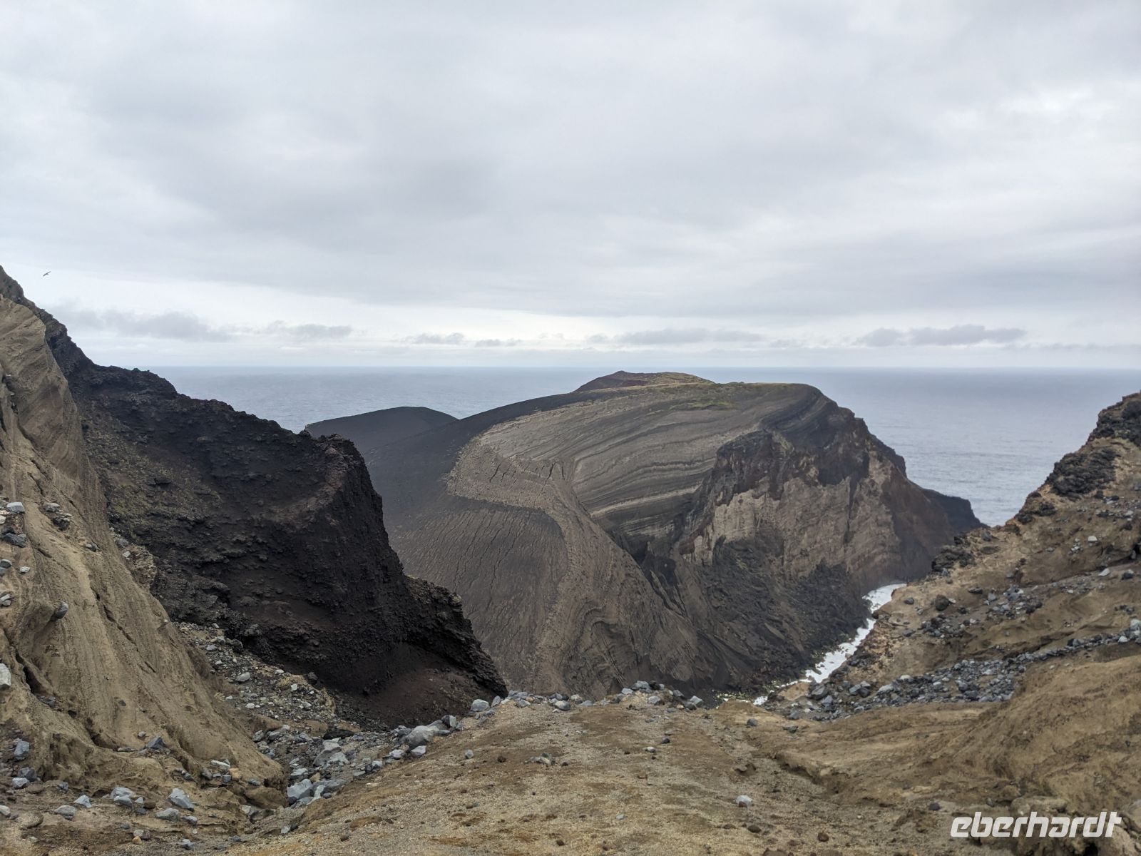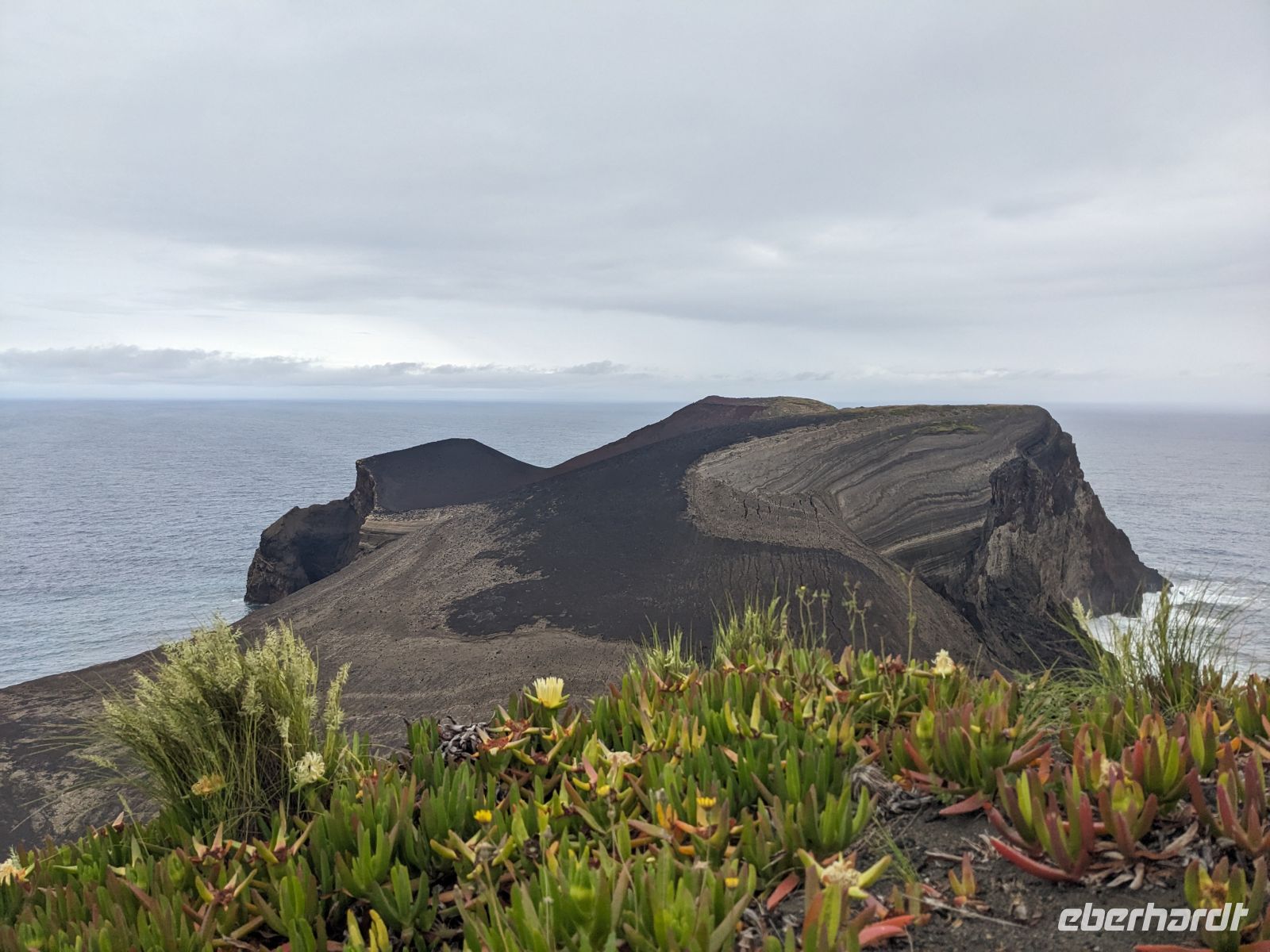Dann näherten wir uns dem vielleicht eindrücklichsten Ort der Insel: dem Vulkan Capelinhos. Auf staubigem, fast mondartigem Boden wanderten wir entlang der ehemaligen Küstenlinie, vorbei an trockener Erde und zerfallenen Ruinen, die von einem Leben vor dem Ausbruch zeugten. Die Stille dort war eindringlich. Es war ein Spaziergang durch eine Landschaft, die Geschichte geschrieben hat – 1957 war der Vulkan ausgebrochen und hatte das Landschaftsbild für immer verändert. Die Weite, der Wind, der Blick hinunter zum Meer: Es war einer dieser Orte, an dem man unwillkürlich langsamer geht.