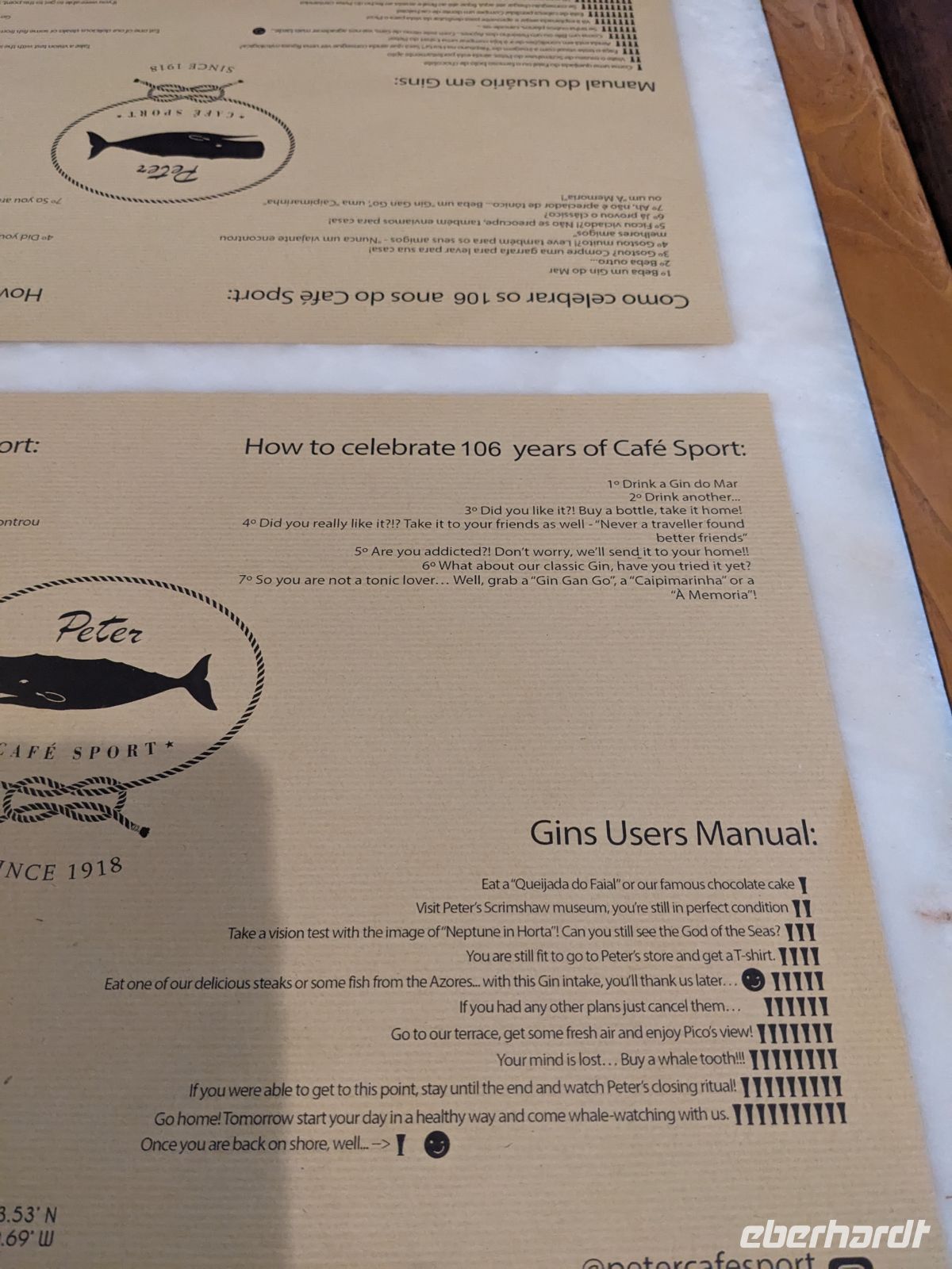 Zurück im Hotel am späten Nachmittag war die Stimmung trotz des Wetters gut – die Erlebnisse des Tages hatten Eindruck hinterlassen. Beim gemeinsamen Abendessen im bekannten Peter’s Café Sport fehlten krankheitsbedingt einige Gesichter. Dennoch war das Restaurant ein passender Ort, um diesen intensiven, rauen, aber authentischen Tag auf Faial ausklingen zu lassen.