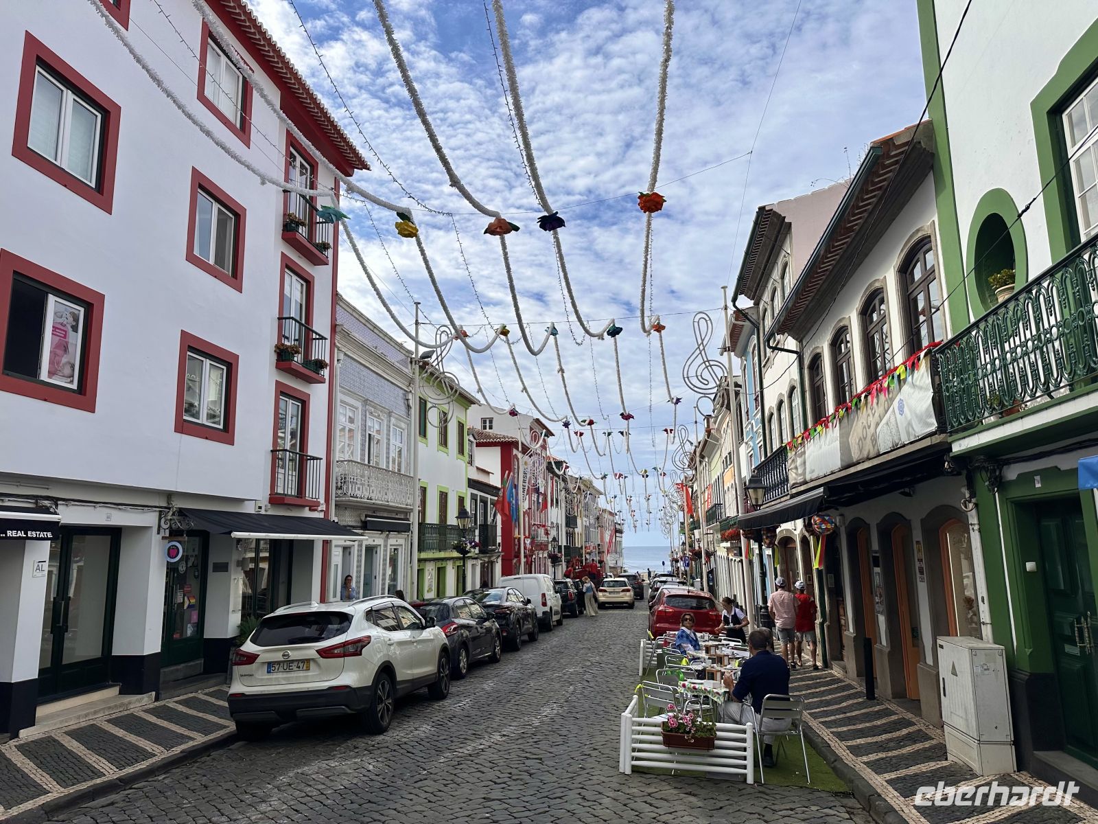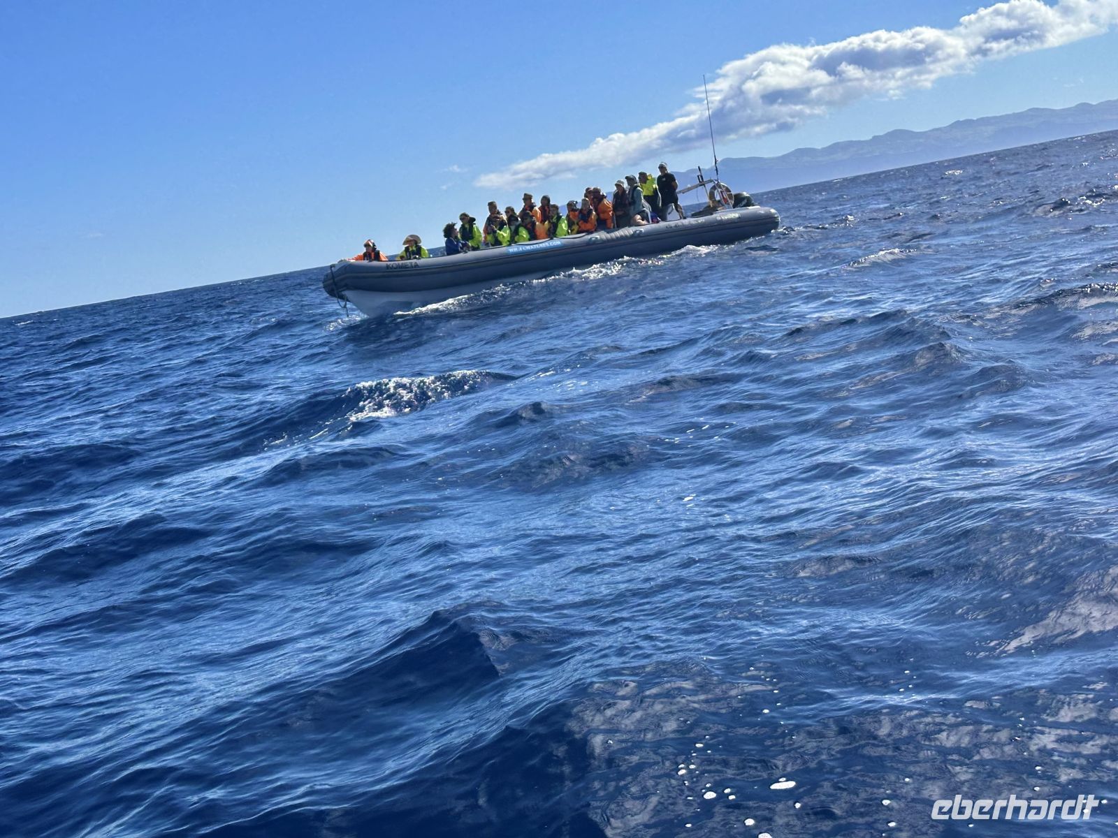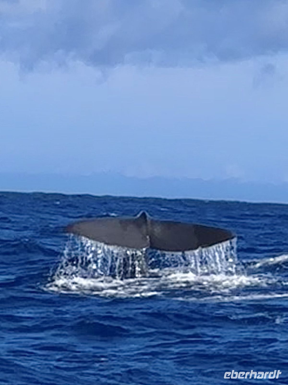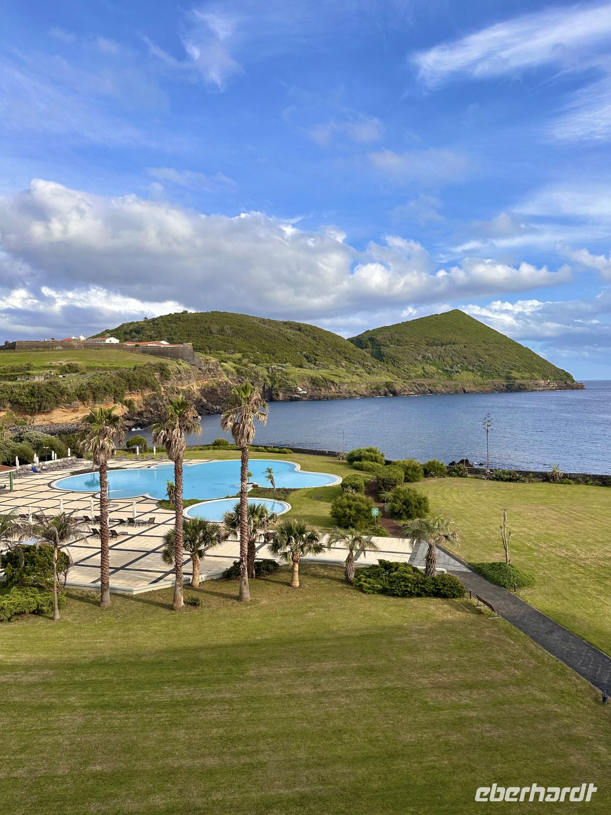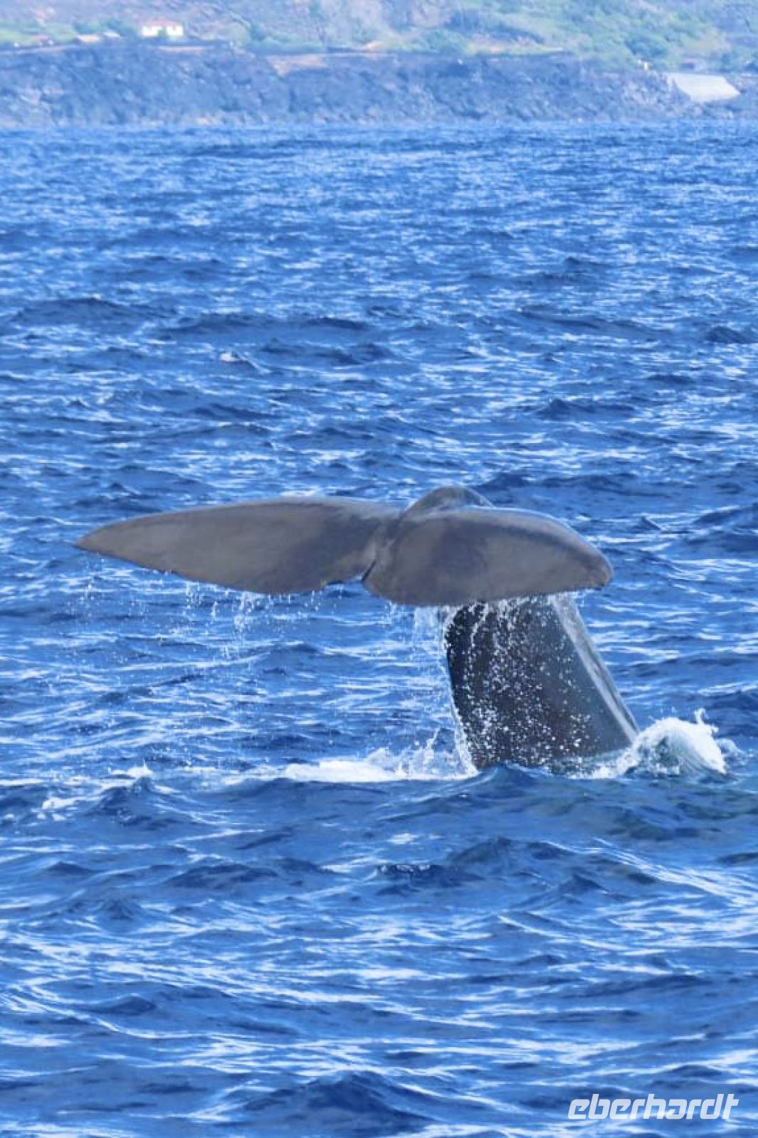 In Erinnerung an den gestrigen Tag, erfreuen wir uns heute nochmals daran das der Walfang auf den Azoren nicht mehr praktiziert wird. Deshalb haben wir nämlich heute die Möglichkeit bei einer Waltour den Tieren auf dem Atlantik ganz nah zu kommen, ohne sie in ihrem Lebensraum zu stören. Wir starten mit dem Speedboot im Hafenbecken von Horta und genießen die Fahrt über das offene Meer und den Ausblicken auf Pico und Faial. Wir haben auf unserer Tour gleich mehrfach Glück und können insgesamt 3 Wale in Ruhe beobachten und einige Delfine an uns vorbei schwimmen sehen. Die Tour hat uns sehr gut gefallen und der teils wilde Wellengang machte den Ausflug noch spannender. Mit ganz vielen neuen und schönen Eindrücken im Gepäck machen wir uns am Nachmittag in Ruhe auf den Weg nach Terceira, unserer letzten Insel der Rundreise. Der Flug nach Terceira ist wieder sehr kurz, so dass wir den restlichen Tag bei schönstem Wetter auf der neuen Insel genießen können. In der Stadt finden aktuell große Festlichkeiten statt, denen die meisten unserer Gruppe am Abend noch beiwohnen wird. Die anderen genießen den Ausblick auf das Meer und den Abend auf der Hotelterrasse und freuen sich auf den morgigen Tag auf der Insel.