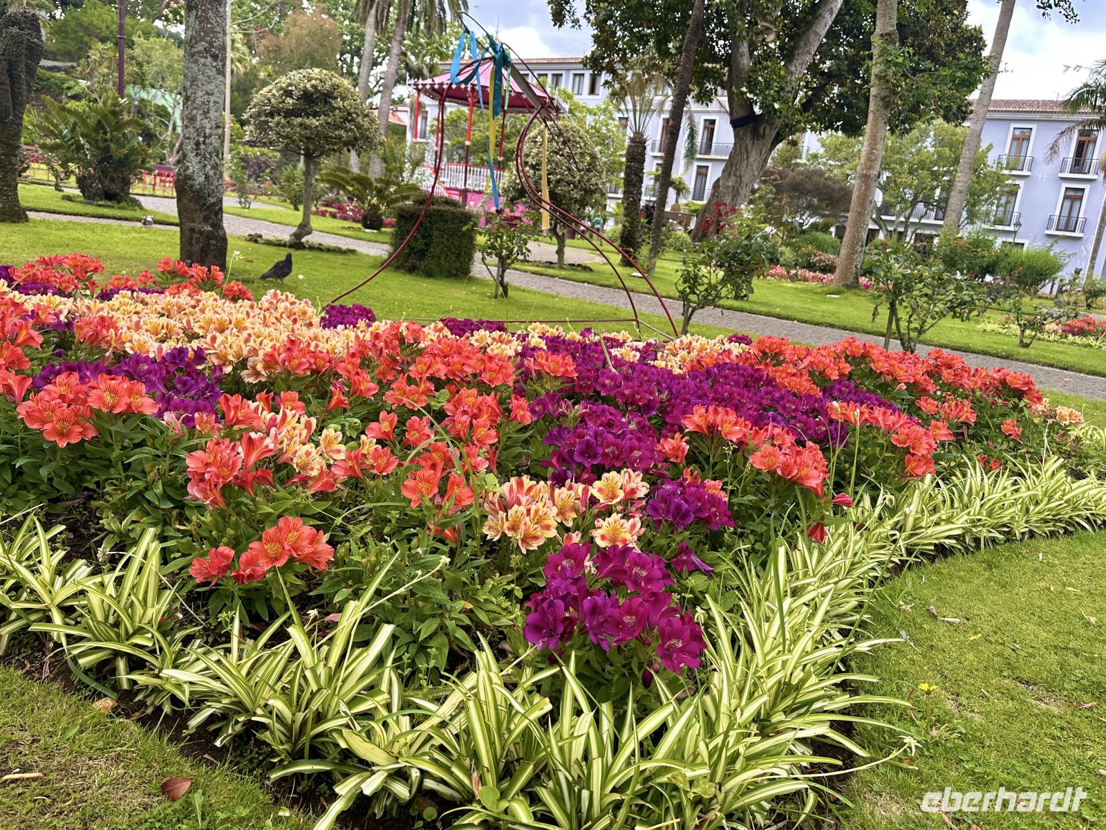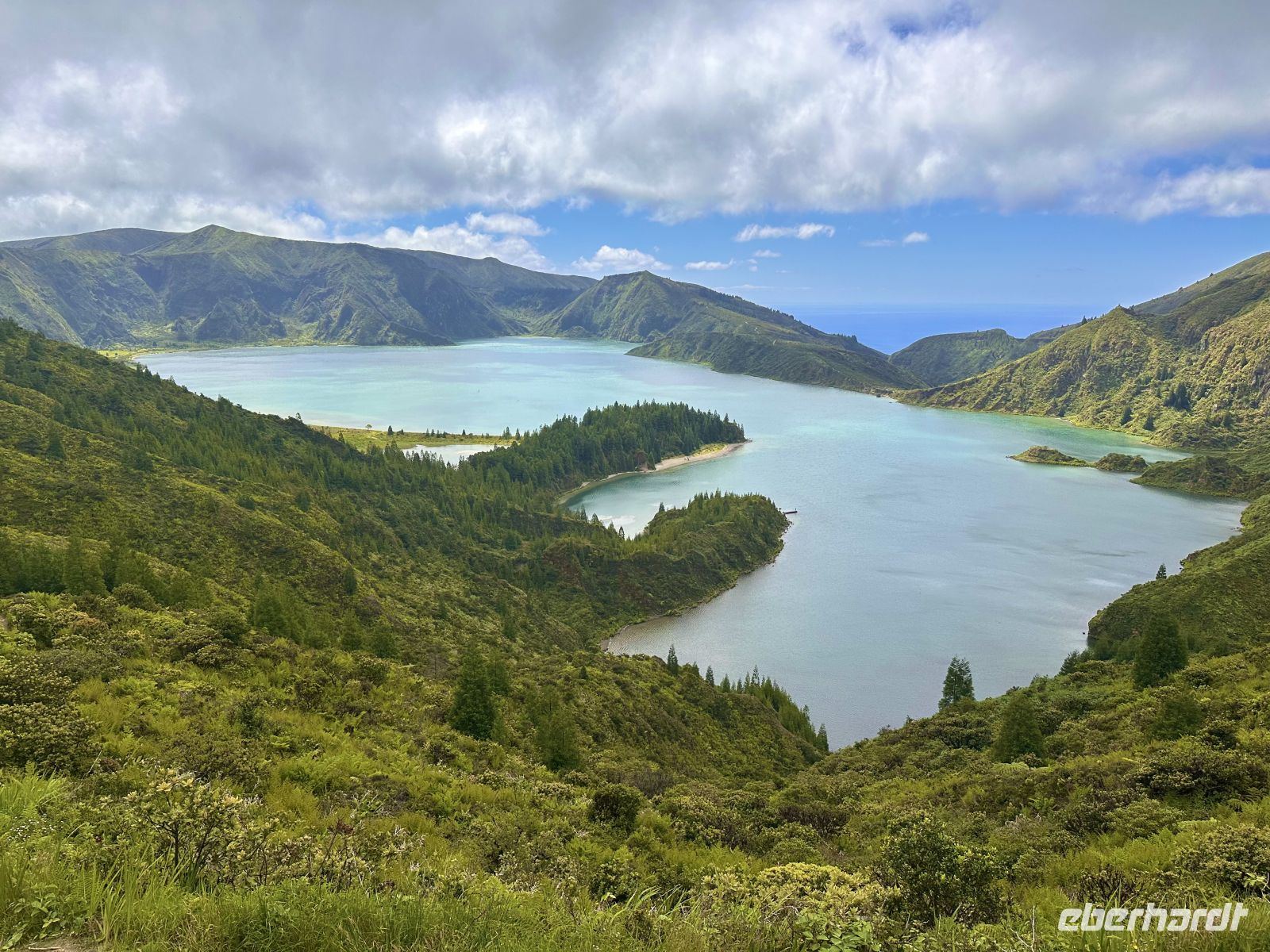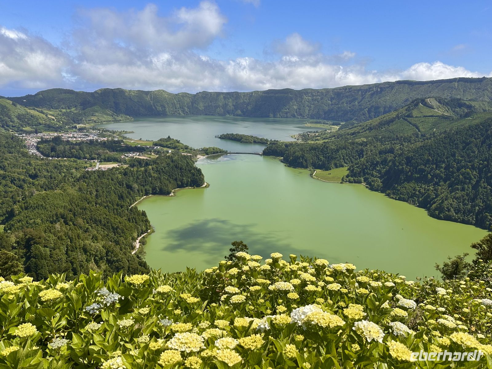 An unserem letzten Tag auf Sao Miguel möchten wir heute den westlichen teil der Insel erkunden. Auf dem Weg dahin besuchen wir eine Gärtnerei in der ausschließlich die azoreanische Ananas angebaut wird um sie anschließend unter anderem auch zu leckerem Anans-Likör zu verarbeiten. Welcher übrigens sehr lecker ist und anders als erwartet, nicht so süß wie man von Ananas erwartet. Seitdem wir durch die Führung nun auch wissen, wie aufwendig und vor allem langwierig die Anzucht von Ananas ist, betrachten wir die Früchte im Supermarktregal mit ganz anderen Augen. Weiter geht es zu unserem nächsten Halt, am Ethnoprafischen Museum. In liebevoller Detailarbeit wurden hier über Jahrzehnte Dinge zu den verschiedensten Themen zusammengetragen, die den ein oder anderen auch in Erinnerungen an früher schwelgen lassen. Unser eigentlicher Höhepunkt ist heute aber der blaue und der grüne See. Da weiß auf der Insel sofort jeder was mit anzufangen, wenn man das so sagt, auch ohne die Namen Lagoa Azul und Lagoa Verde sofort griffbereit zu haben. Der Ausblick ist einfach traumhaft und lädt zum Genießen ein. Im Anschluss fahren hinunter ins Tal zu den beiden Seen und verbringen am Ufer unsere Mittagspause bei leckeren Snacks im Restaurant und kleinen Spaziergängen am See. Auf unserem Rückweg nach Ponta Delgada runden wir unser Programm auf der Insel Sao Miguel noch mit einem Rundgang durch den Botanischen Garten der Stadt ab und erfahren noch viel interessantes zur bunten und vielseitigen Pflanzenwelt auf der Insel.