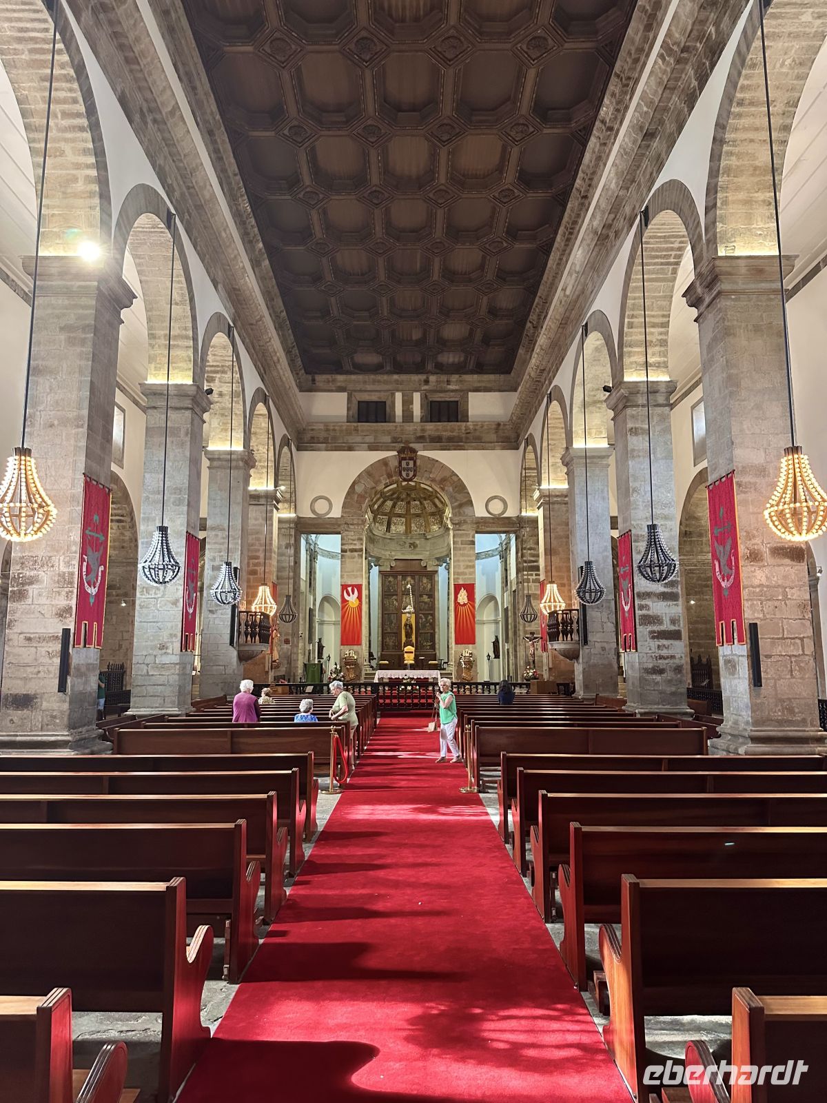 Unsere heutige Inseltour auf Terceira starten wir mit der Auffahrt zum Monte Brasil. Einer Erhöhung in der Inselhauptstadt Angra die zu einem Naherholungsgebiet für die Bewohner der Stadt liebevoll gestaltet wurde und einen schönen Ausblick auf die Stadt beschert. Im weiteren verlauf besuchen wir das Örtchen Vila de Sao Sebastiao und verbringen die Mittagszeit entspannt bei einem Stadtrundgang und Mittagstisch in dem am Meer gelegenen Städtchen Praia da Vitoria. Am Nachmittag haben wir uns zu einer Führung und Verkostung im Weinmuseum angemeldet in dem liebevoll angelegten und gepflegten garten des Weinmuseums lernen wir noch viel informatives über die heimischen Pflanzen und den Weinanbau, bevor wir in der Weinstube einige Weine verkosten können. Zum Abschluss unserer heutigen Tour besichtigen wir noch die unterirdische Lavahöhle Gruta do Natal in der man ganz gut vulkanische Formationen und erkaltete Lavaströme erkennen kann.