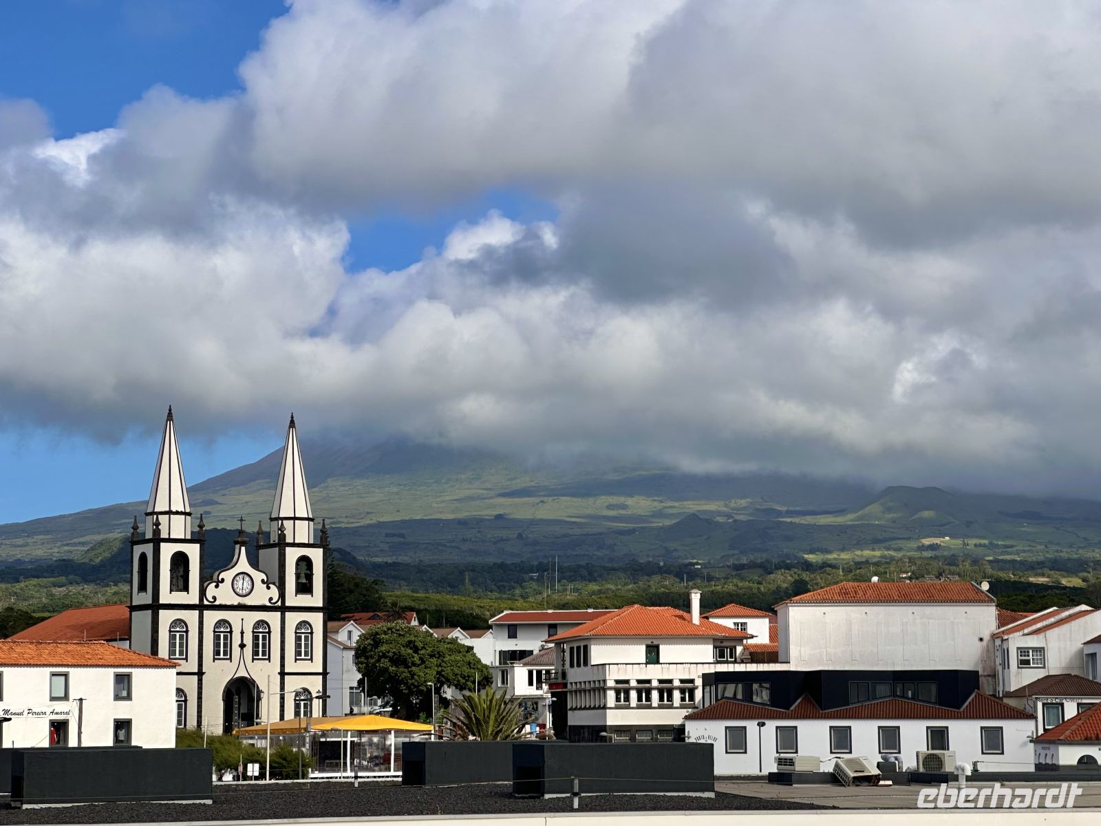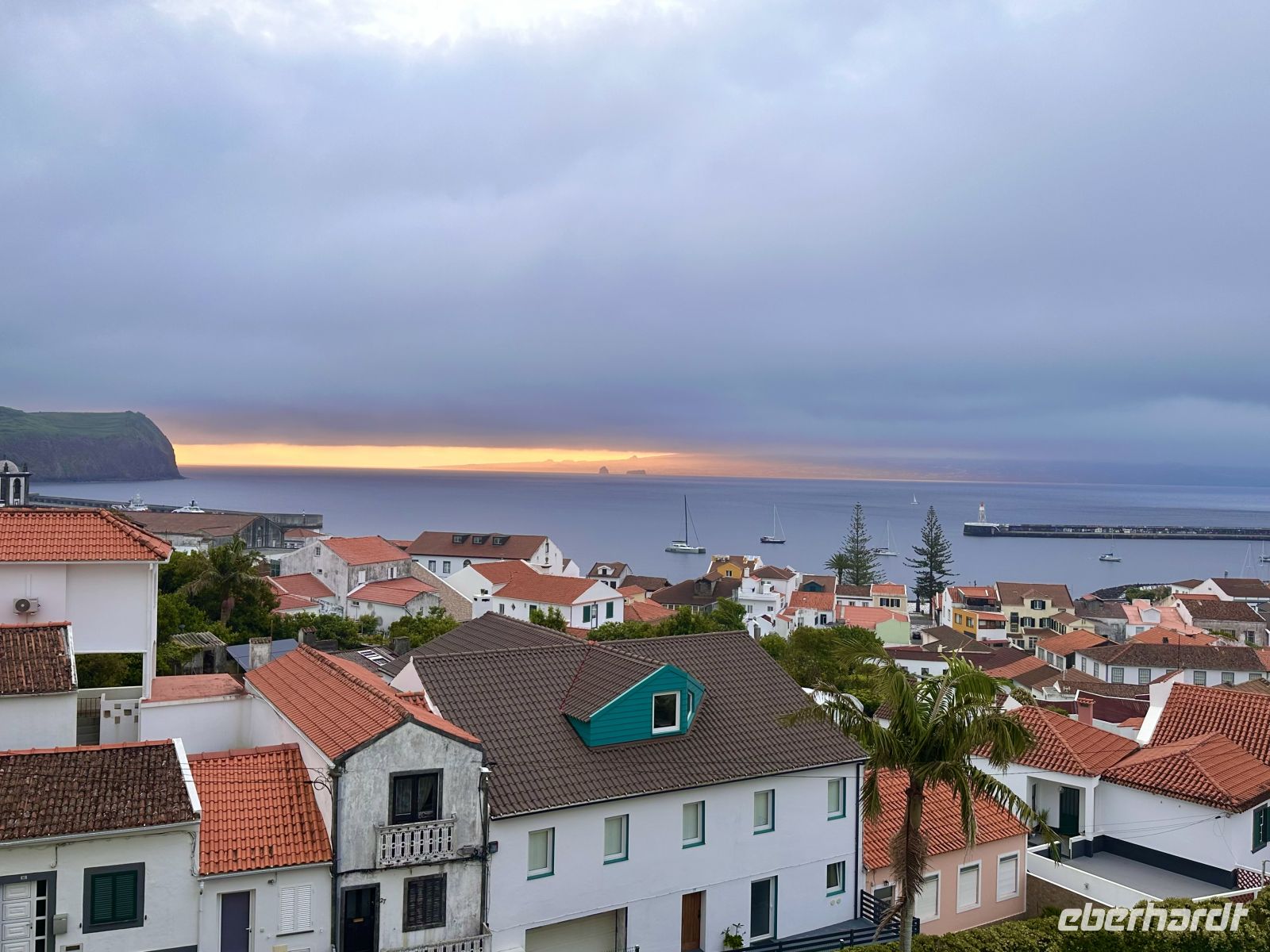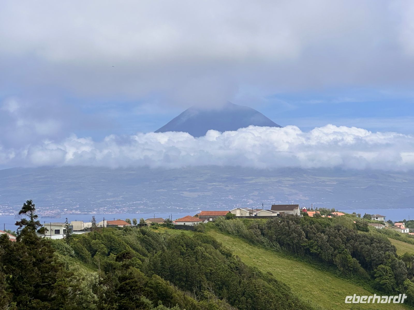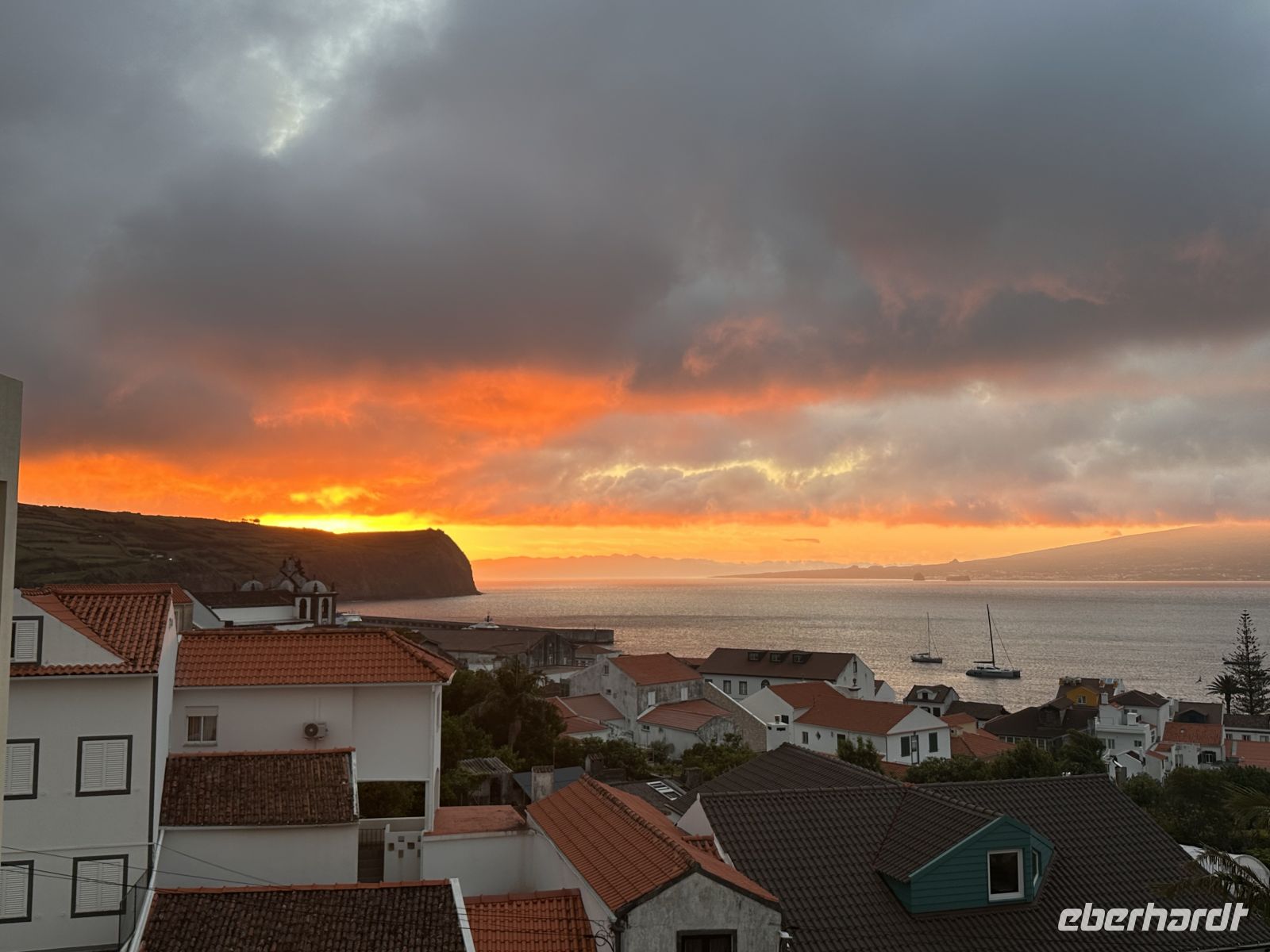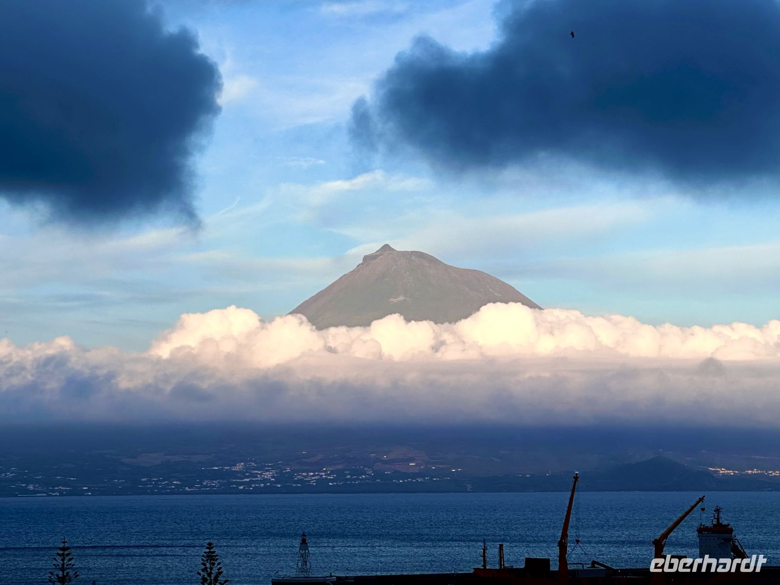 Unsere heutige Inseltour auf Faial steht ganz unter dem Thema Vulkane. Im westen der Insel besuchen wir den Vulkan Capelinho. Dieser brachte durch einen großen Ausbruch in den Jahren 1957-1958 eine Vergrößerung der Insel zustande. Wir wandern auf der Klippe die früher mal den Abschluss zum Atlantik bildete und können während unserer kleinen Wanderung den Ausblick auf den Vulkankrater und die neu gebildete Landmasse genießen. Dies ist schon sehr beeindruckend. Später fahren wir weiter zum Krater Caldeira in der Mitte der Insel. Die Landschaft hier ist ganz anders als bei unserem ersten Vulkan am Vormittag. Keine staubige Mondlandschaft, sondern sattes Grün wohin mal auch schaut. Der Ausblick in den Vulkankrater ist schon beeindruckend und die Dimension mit bloßem Auge gar nicht richtig vorstellbar. Das Wetter hat uns heute die schönsten Aus- und Anblicke beschert, die man auf der Insel nur haben kann. Somit wird unser Vulkantag auch noch passend abgerundet mit einem unverhüllten Blick auf den Pico auf der benachbarten Insel Pico Island, welche wir übrigens morgen besuchen werden. Nicht nur an den verschiedenen Aussichtspunkten auf unserem Rückweg nach Horta können wir den schönen Ausblick genießen, in unserem Hotel haben wir von allen Zimmern aus einen direkten Blick auf den Pico, der uns noch bis in den späten Abend hinein erhalten bleibt.
