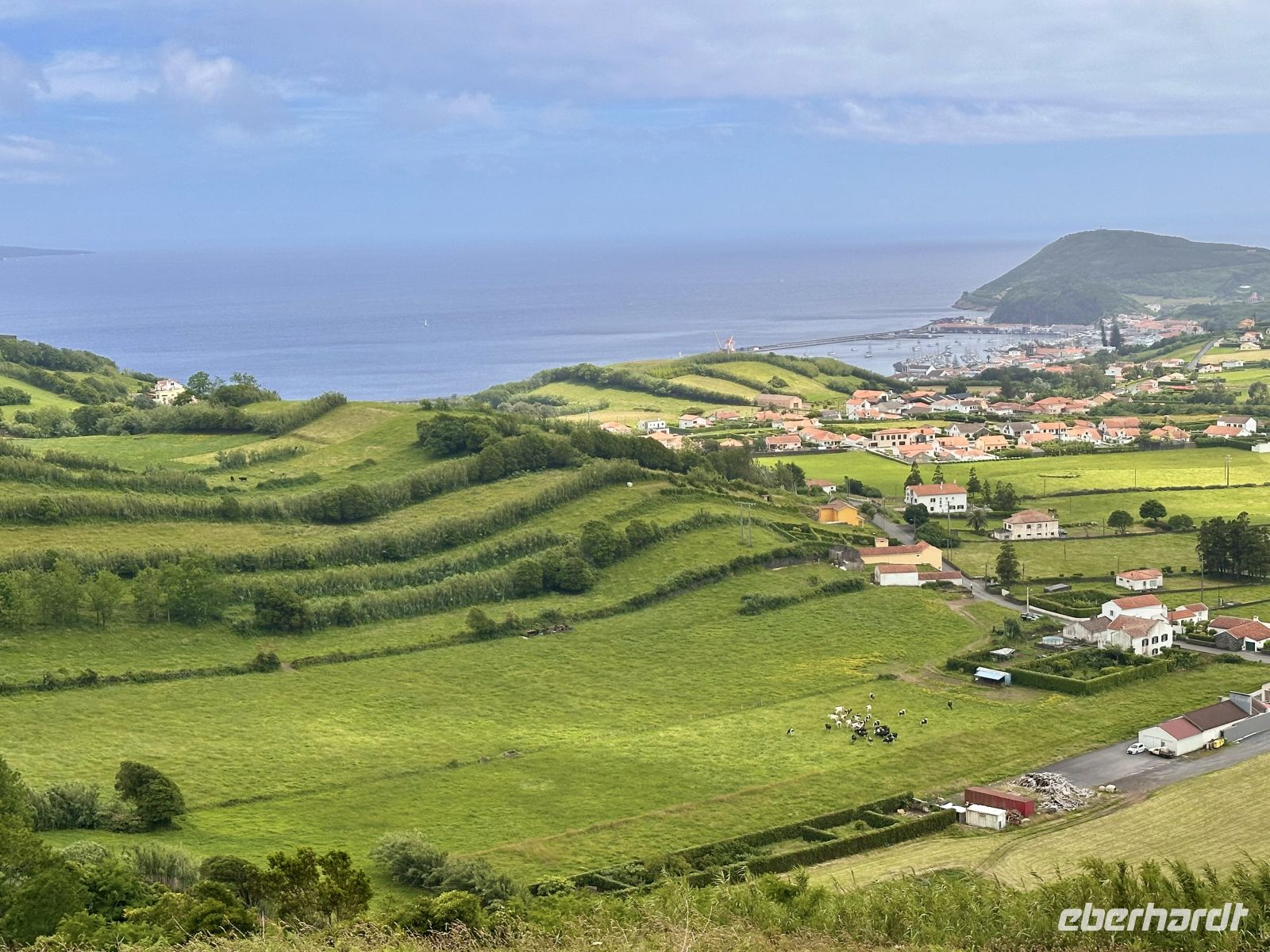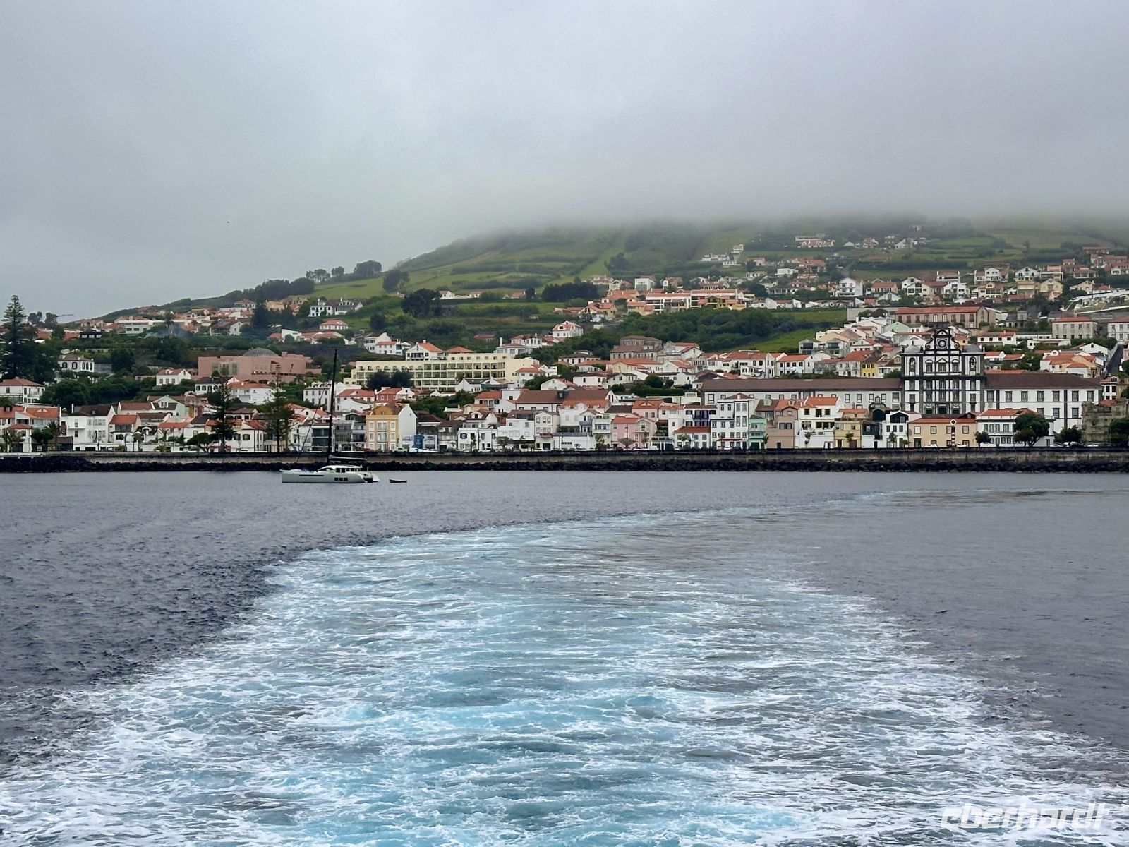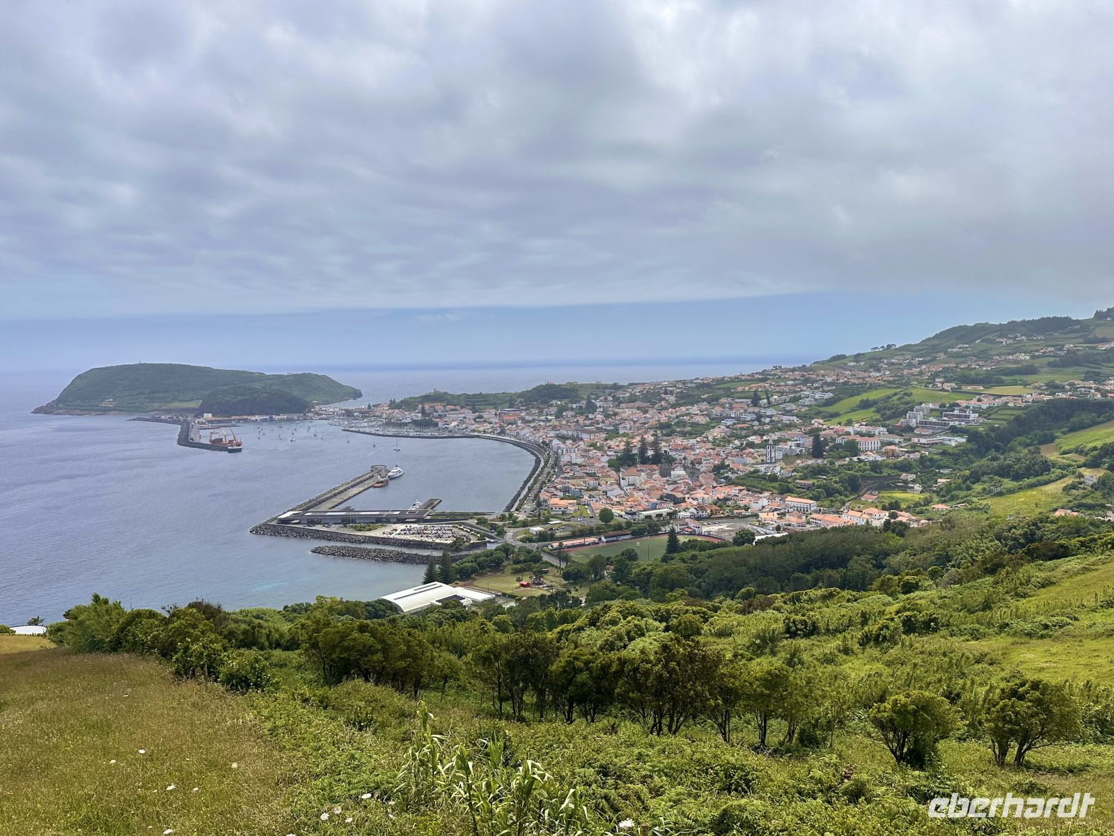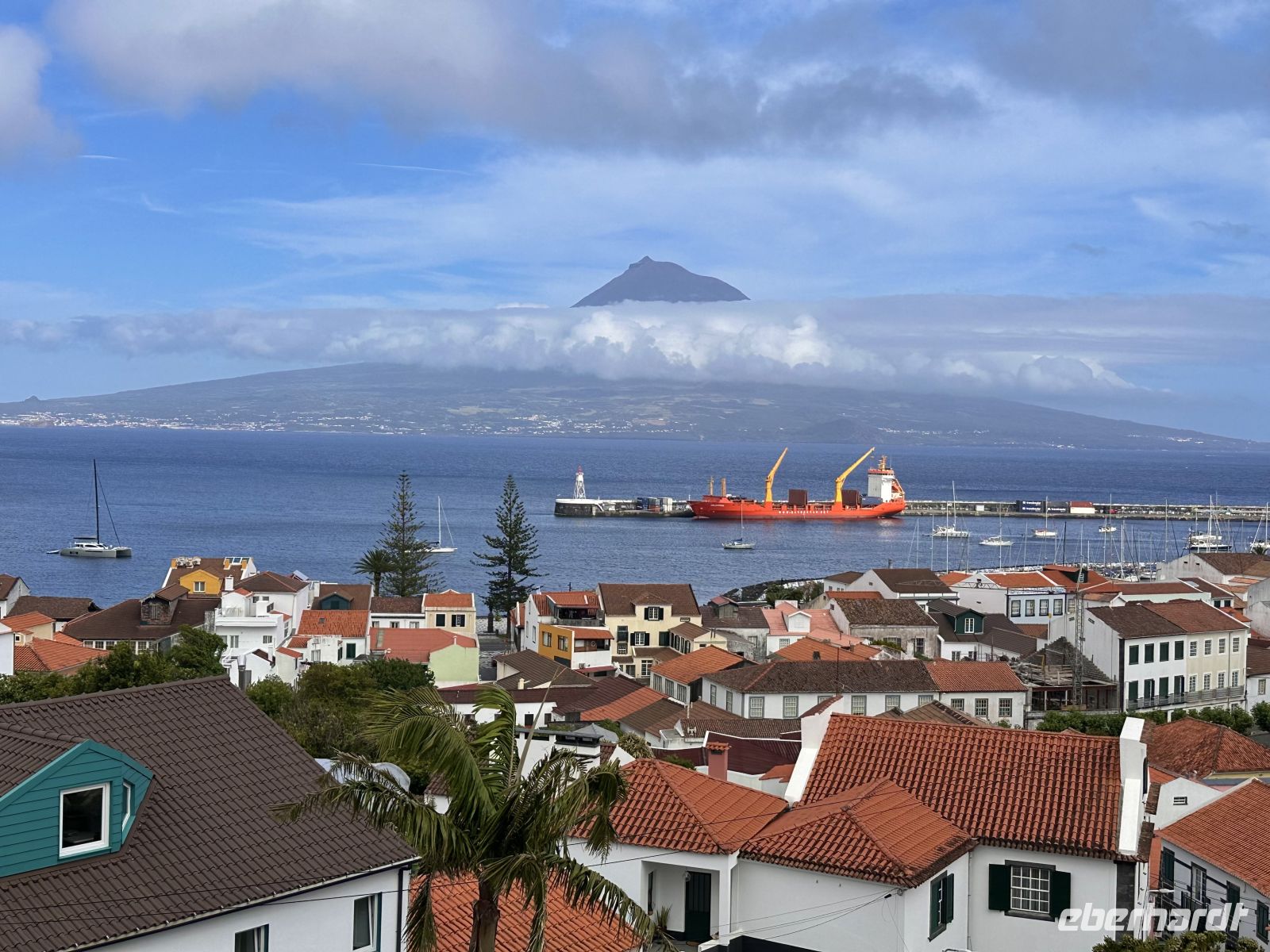 Unsere heutige Inseltour auf Faial steht ganz unter dem Thema Vulkane. Im westen der Insel besuchen wir den Vulkan Capelinho. Dieser brachte durch einen großen Ausbruch in den Jahren 1957-1958 eine Vergrößerung der Insel zustande. Wir wandern auf der Klippe die früher mal den Abschluss zum Atlantik bildete und können während unserer kleinen Wanderung den Ausblick auf den Vulkankrater und die neu gebildete Landmasse genießen. Dies ist schon sehr beeindruckend. Später fahren wir weiter zum Krater Caldeira in der Mitte der Insel. Die Landschaft hier ist ganz anders als bei unserem ersten Vulkan am Vormittag. Keine staubige Mondlandschaft, sondern sattes Grün wohin mal auch schaut. Der Ausblick in den Vulkankrater ist schon beeindruckend und die Dimension mit bloßem Auge gar nicht richtig vorstellbar. Das Wetter hat uns heute die schönsten Aus- und Anblicke beschert, die man auf der Insel nur haben kann. Somit wird unser Vulkantag auch noch passend abgerundet mit einem unverhüllten Blick auf den Pico auf der benachbarten Insel Pico Island, welche wir übrigens morgen besuchen werden. Nicht nur an den verschiedenen Aussichtspunkten auf unserem Rückweg nach Horta können wir den schönen Ausblick genießen, in unserem Hotel haben wir von allen Zimmern aus einen direkten Blick auf den Pico, der uns noch bis in den späten Abend hinein erhalten bleibt.