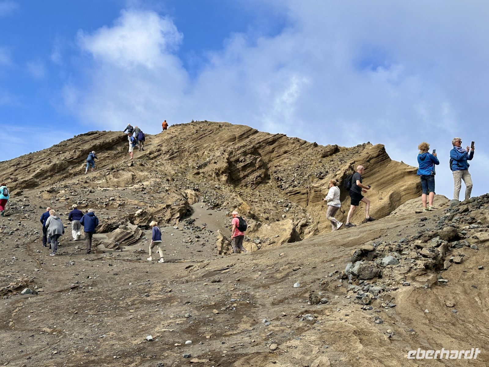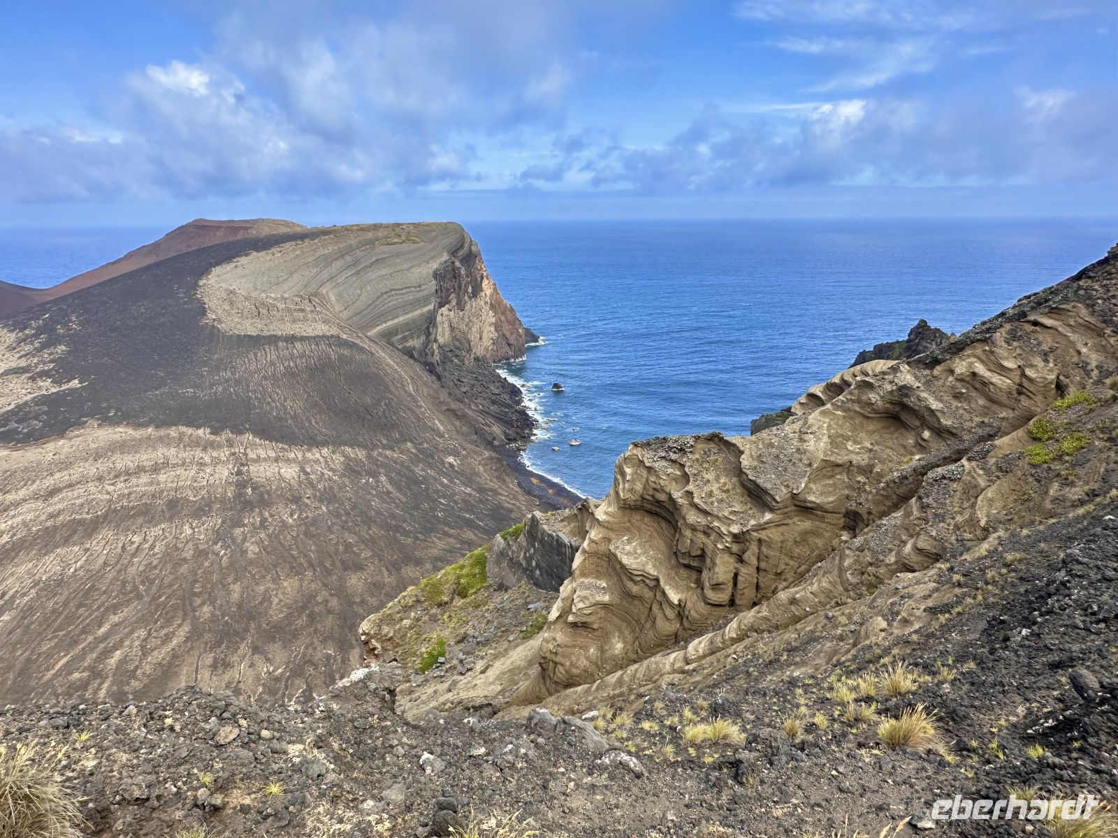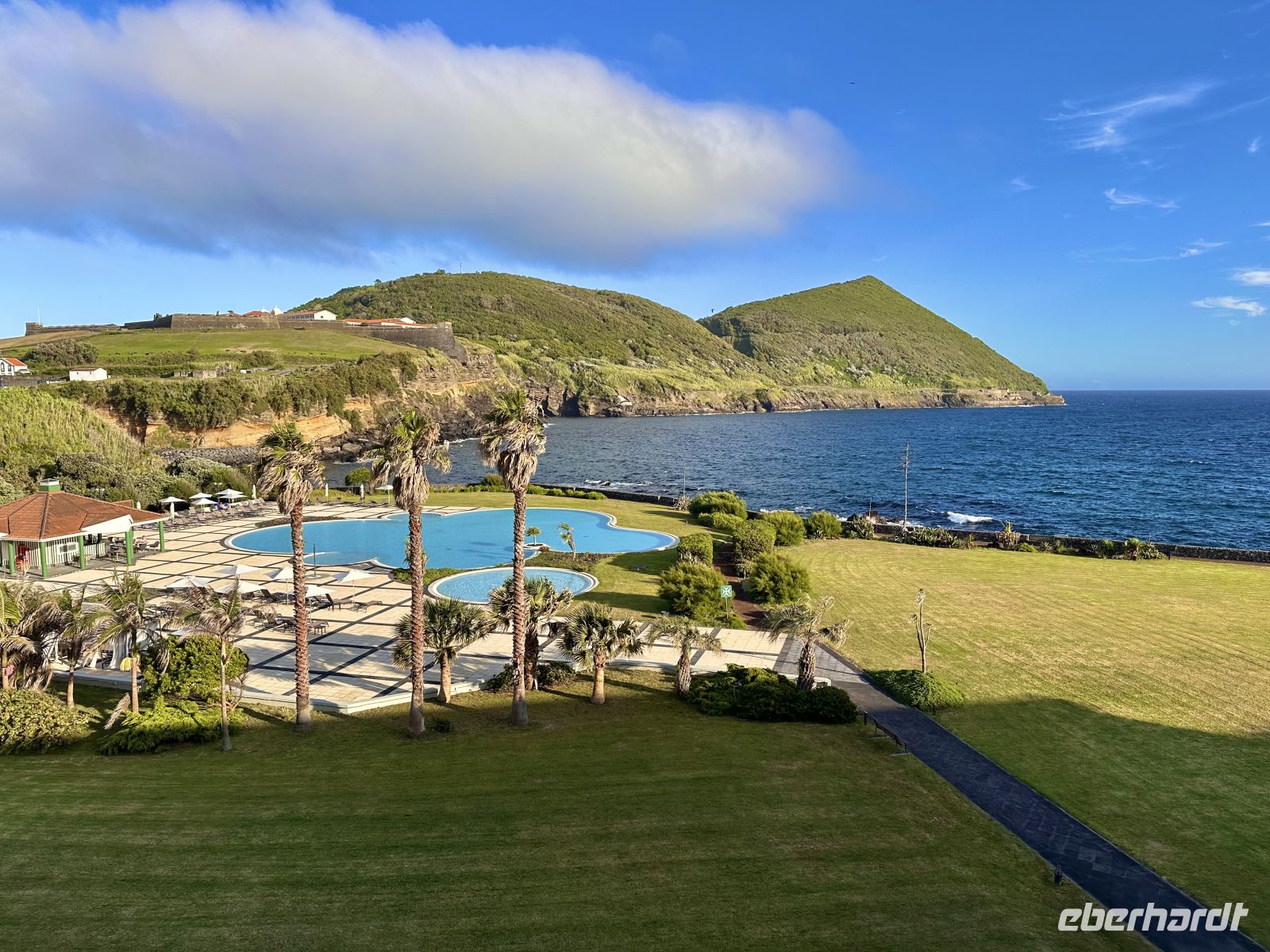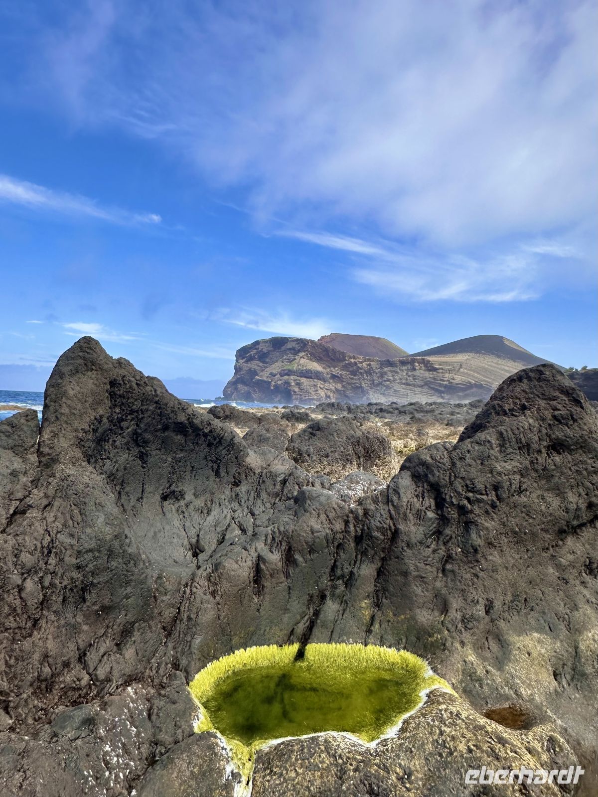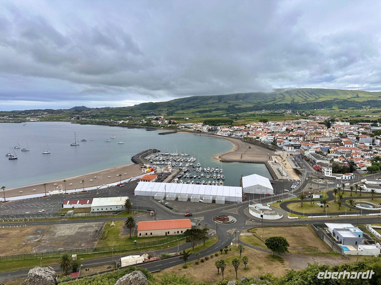 Unsere heutige Inseltour auf Faial steht ganz unter dem Thema Vulkane. Im westen der Insel besuchen wir den Vulkan Capelinho. Dieser brachte durch einen großen Ausbruch in den Jahren 1957-1958 eine Vergrößerung der Insel zustande. Wir wandern auf der Klippe die früher mal den Abschluss zum Atlantik bildete und können während unserer kleinen Wanderung den Ausblick auf den Vulkankrater und die neu gebildete Landmasse genießen. Dies ist schon sehr beeindruckend. Später fahren wir weiter zum Krater Caldeira in der Mitte der Insel. Die Landschaft hier ist ganz anders als bei unserem ersten Vulkan am Vormittag. Keine staubige Mondlandschaft, sondern sattes Grün wohin mal auch schaut. Der Ausblick in den Vulkankrater ist schon beeindruckend und die Dimension mit bloßem Auge gar nicht richtig vorstellbar. Das Wetter hat uns heute die schönsten Aus- und Anblicke beschert, die man auf der Insel nur haben kann. Somit wird unser Vulkantag auch noch passend abgerundet mit einem unverhüllten Blick auf den Pico auf der benachbarten Insel Pico Island, welche wir übrigens morgen besuchen werden. Nicht nur an den verschiedenen Aussichtspunkten auf unserem Rückweg nach Horta können wir den schönen Ausblick genießen, in unserem Hotel haben wir von allen Zimmern aus einen direkten Blick auf den Pico, der uns noch bis in den späten Abend hinein erhalten bleibt.