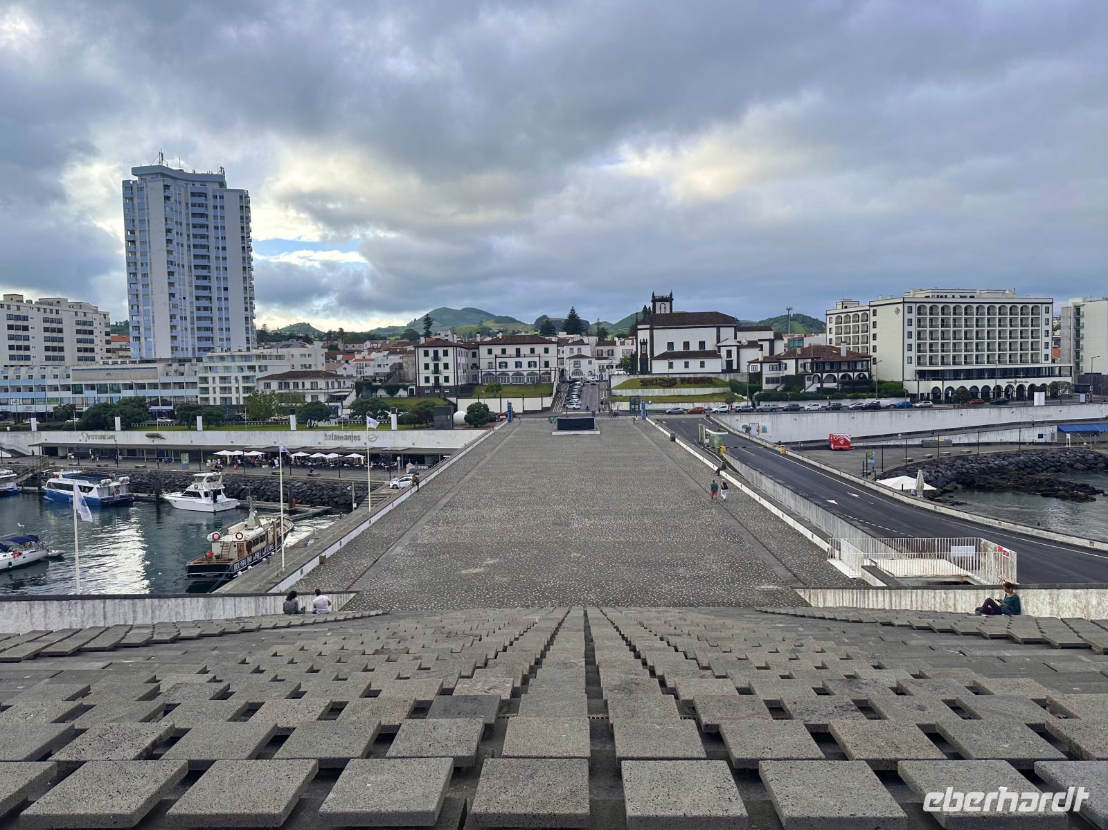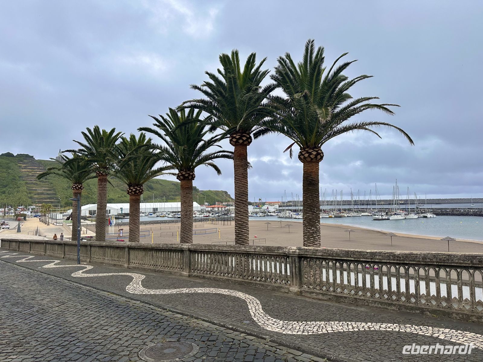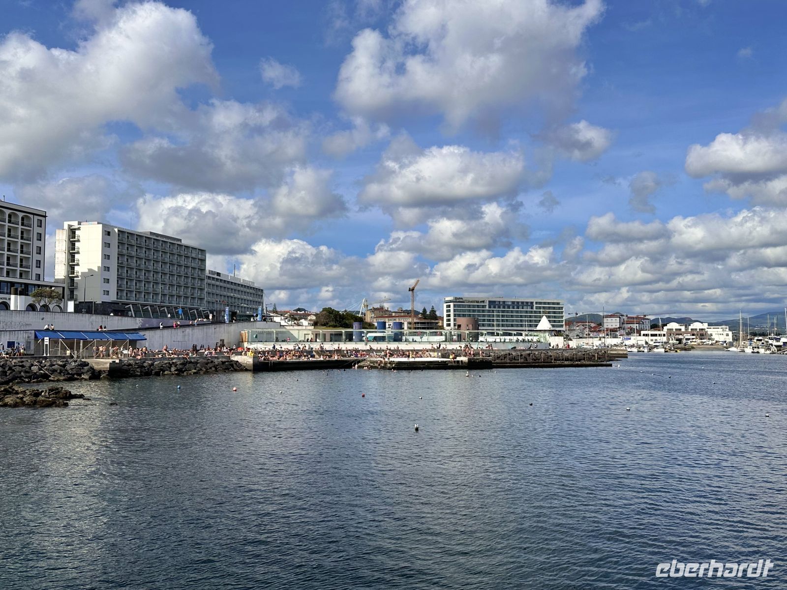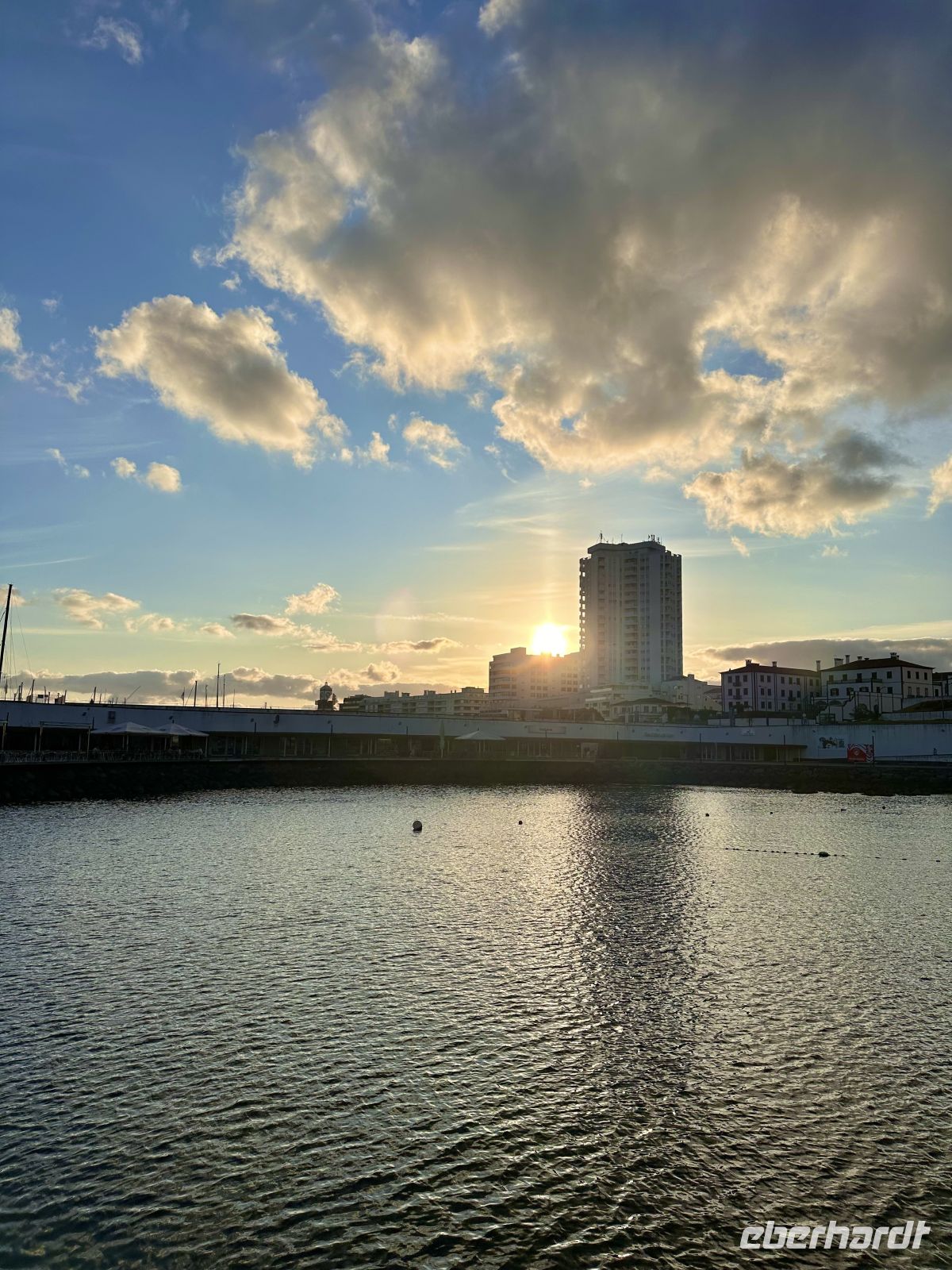 Ganz früh am Morgen beginnen wir unsere Tour. Am Flughafen herrscht noch eine verschlafene Ruhe, die uns entspannt unsere Reise beginnen lässt. Über die portugiesische Hauptstadt Lissabon erreichen wir am frühen Nachmittag die größte Insel der Azoren, Sao Miguel. Eine positive Eigenschaft einer Azorenreise wird uns über die ganze Reise hinweg begleiten und fällt immer wieder positiv auf – die kurzen Wege auf den einzelnen Inseln. Keine quälend langen Bustouren von einem Programmpunkt zum nächsten, oft sind es nur wenige Minuten von A nach B. So erreichen wir auch schon ganz schnell unser Hotel am Hafen von Ponta Delgada. Bei schönstem Wetter können wir den Abend nutzen, um uns am Yachthafen kulinarisch auf der Insel begrüßen zu lassen und die Gegend in der Abenddämmerung zu erkunden.
