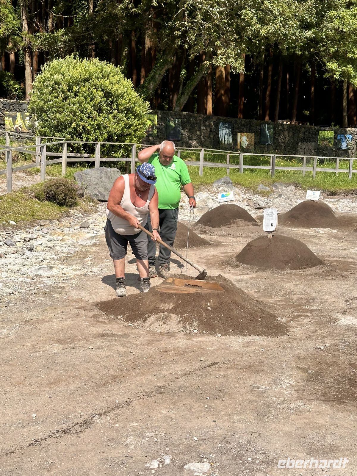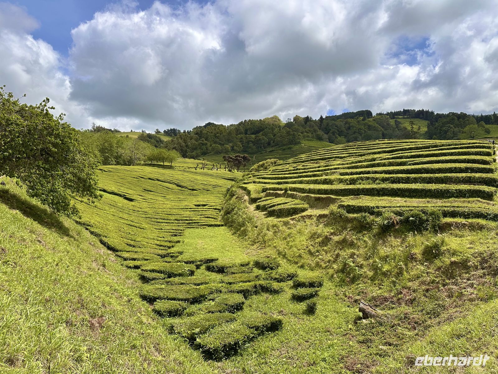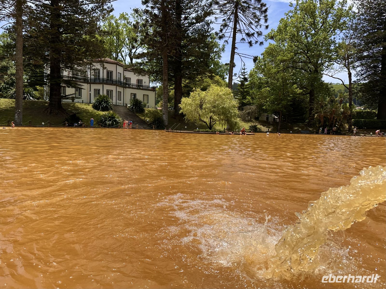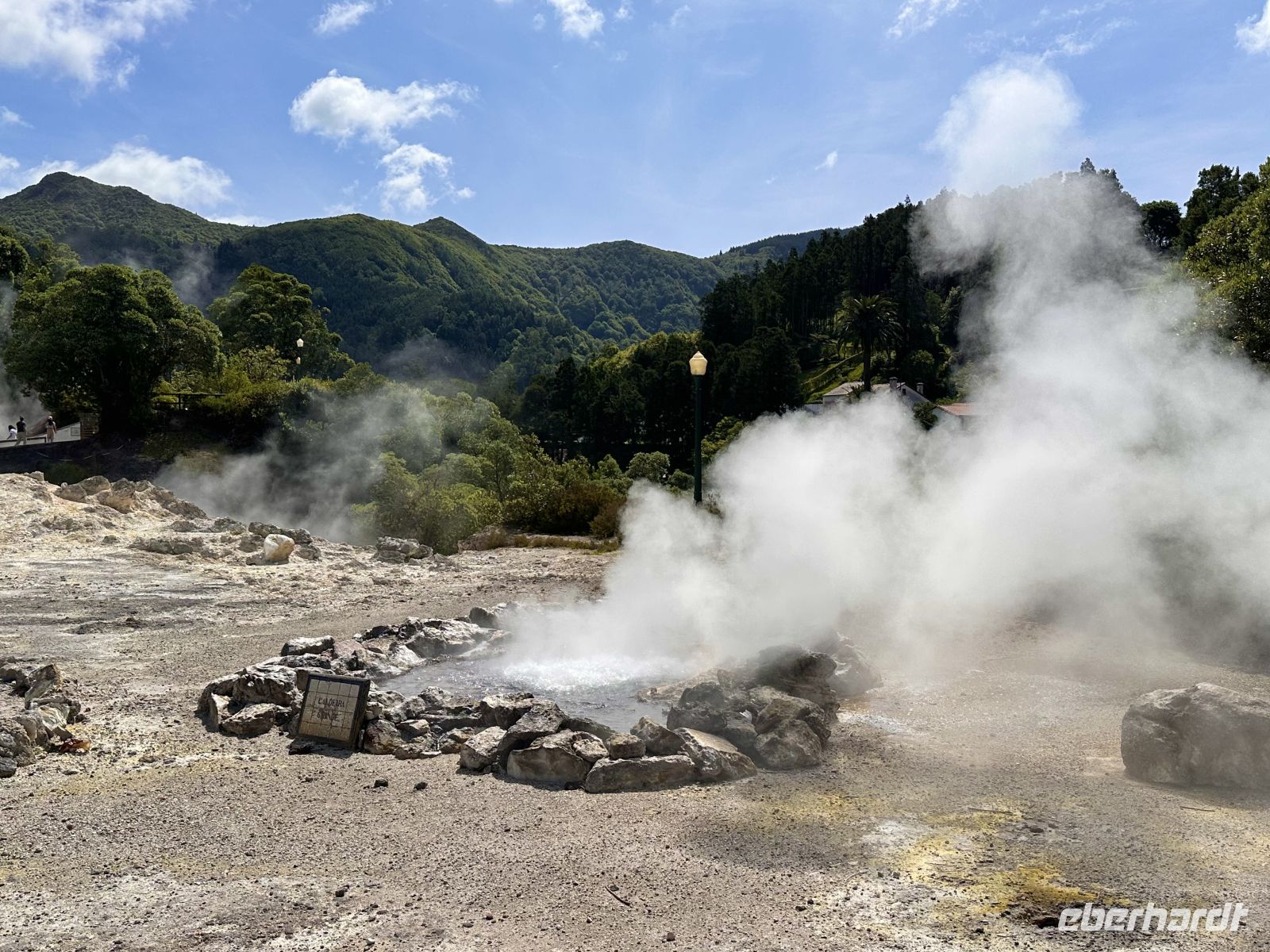 Gleich zu Beginn unserer Reise werden wir heute eines der Highlights der Azoren erleben. Wir fahren zusammen mit unserem örtlichen Reiseleiter nach Furnas zu den dampfenden heißen Quellen. Auf dem Weg dahin nutzen wir die Möglichkeit bei schönen Aussichtspunkten halt zu machen, um die ersten Urlaubsfotos zu schiessen. In Furnas angekommen können wir die dampfenden und brodelnden Quellen beobachten und ganz nebenbei auch schon unser Mittagessen sehen. Die Gastronomen der Insel machen sich die heißen Quellen zu Nutze und garen in dem heißen Dampf verschiedene Gerichte. Unter anderem auch den „Cozido das Furnas“. Die ist ein Inselgericht bei dem verschiedene Fleisch- und Wurstsorten zusammen mit verschiedenem Gemüse 6-7 Stunden im Topf in ein Erdloch gelassen wird, um im Dampf zu garen. Nach unserer Tour entlang der Quellen haben wir bei unserem Mittagessen die Gelegenheit dieses traditionelle Inselgericht zu genießen und sehr positiv überrascht. Gut gestärkt verbringen wir den Nachmittag im nahegelegenen Park Terra Nostra. Die Besonderheit der Parkanlage ist das riesige Thermalbecken mit seinem 38grad warmen eisenhaltigen Wasser. Auf unserer Erkundungstour durch die schöne Parkanlage entdecken wir viele schöne und interessante botanische Blickfänge, die wir so auch gern in unseren heimischen Gärten hätten. Auf dem Weg zurück nach Ponta Delgada runden wir unser Naturprogramm noch mit etwas besonderem ab. Wir besuchen das einzige europäische Teeanbaugebiet. Wir streifen die Teeplantagen und besichtigen eine kleine urige Fabrik, in der der Tee von den angrenzenden Plantagen und Terrassenfeldern verarbeitet wird. Eine sehr interessante Sache die man so halt nur auf den Azoren erleben kann.