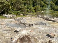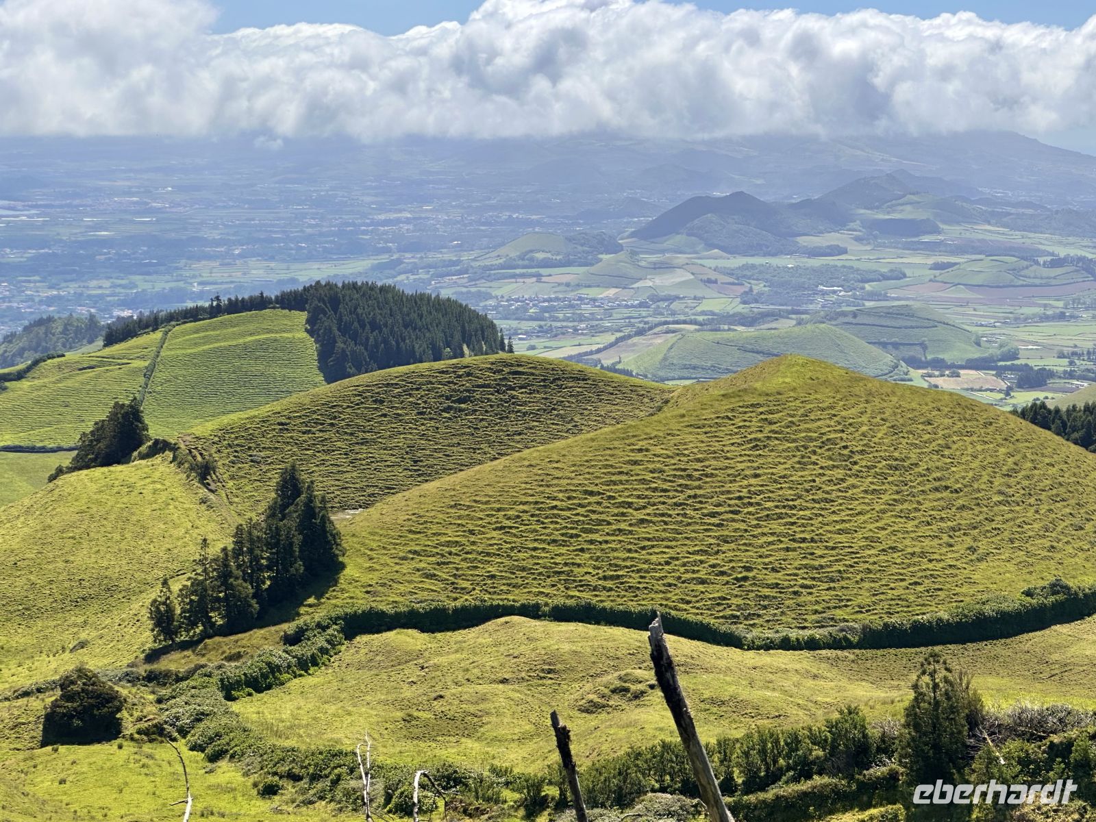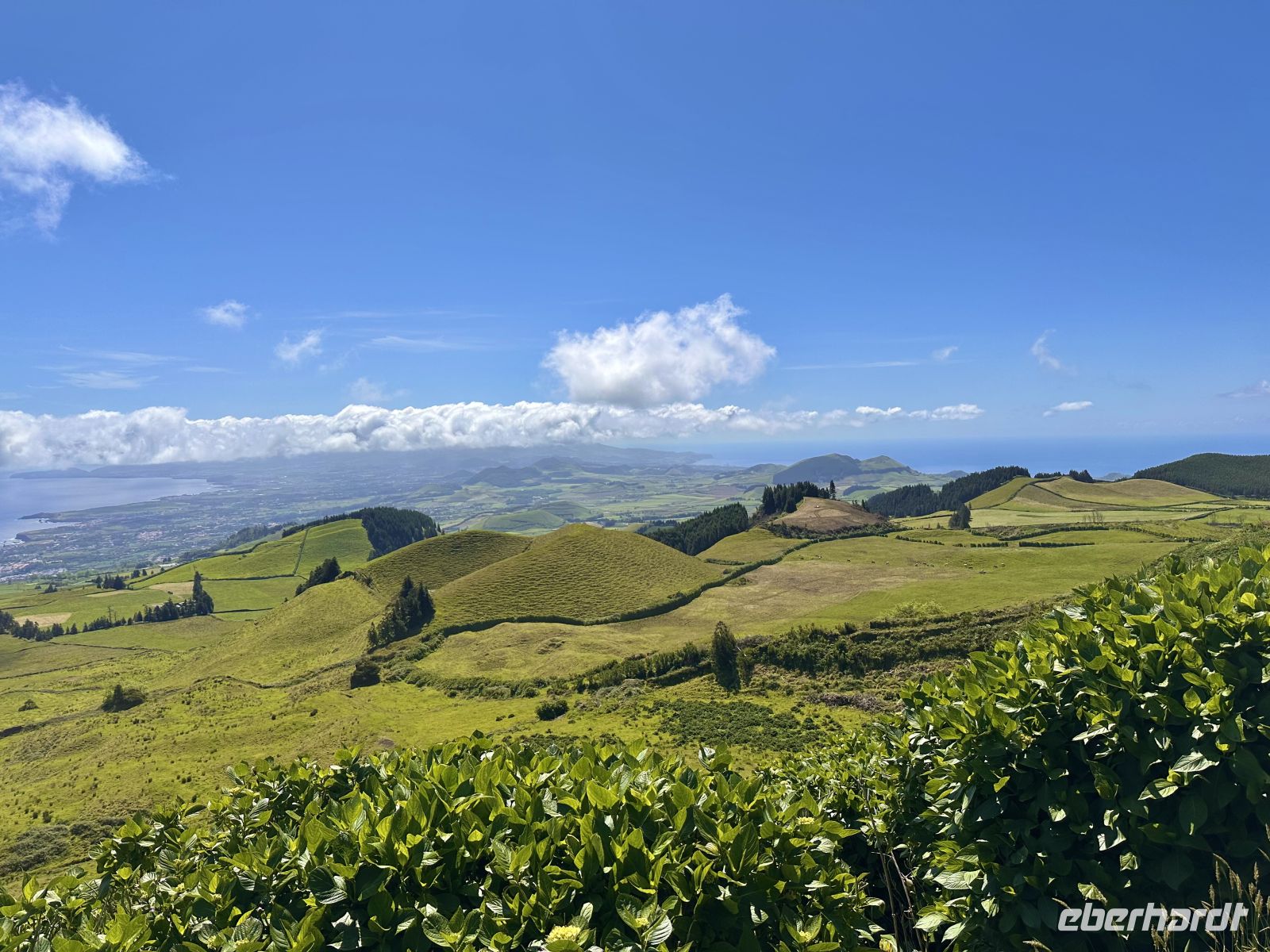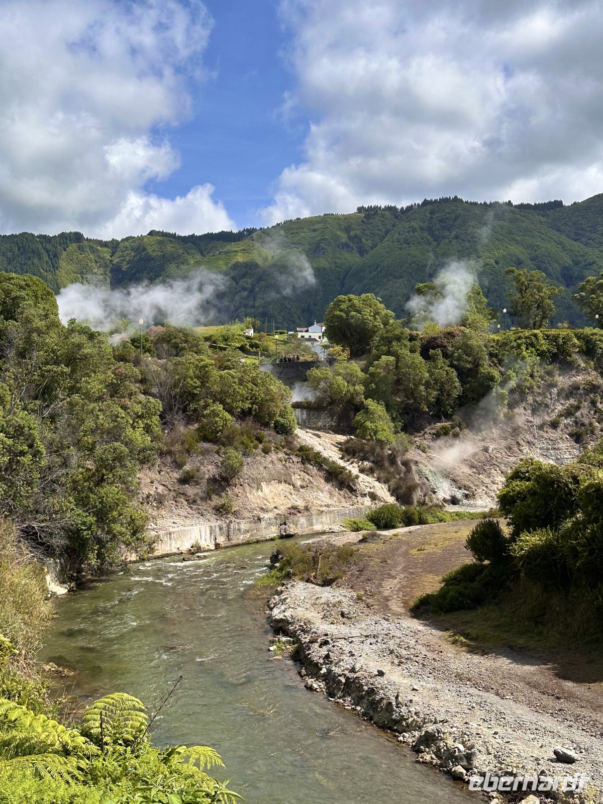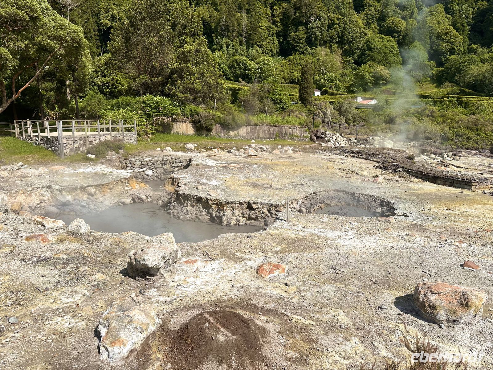 Gleich zu Beginn unserer Reise werden wir heute eines der Highlights der Azoren erleben. Wir fahren zusammen mit unserem örtlichen Reiseleiter nach Furnas zu den dampfenden heißen Quellen. Auf dem Weg dahin nutzen wir die Möglichkeit bei schönen Aussichtspunkten halt zu machen, um die ersten Urlaubsfotos zu schiessen. In Furnas angekommen können wir die dampfenden und brodelnden Quellen beobachten und ganz nebenbei auch schon unser Mittagessen sehen. Die Gastronomen der Insel machen sich die heißen Quellen zu Nutze und garen in dem heißen Dampf verschiedene Gerichte. Unter anderem auch den „Cozido das Furnas“. Die ist ein Inselgericht bei dem verschiedene Fleisch- und Wurstsorten zusammen mit verschiedenem Gemüse 6-7 Stunden im Topf in ein Erdloch gelassen wird, um im Dampf zu garen. Nach unserer Tour entlang der Quellen haben wir bei unserem Mittagessen die Gelegenheit dieses traditionelle Inselgericht zu genießen und sehr positiv überrascht. Gut gestärkt verbringen wir den Nachmittag im nahegelegenen Park Terra Nostra. Die Besonderheit der Parkanlage ist das riesige Thermalbecken mit seinem 38grad warmen eisenhaltigen Wasser. Auf unserer Erkundungstour durch die schöne Parkanlage entdecken wir viele schöne und interessante botanische Blickfänge, die wir so auch gern in unseren heimischen Gärten hätten. Auf dem Weg zurück nach Ponta Delgada runden wir unser Naturprogramm noch mit etwas besonderem ab. Wir besuchen das einzige europäische Teeanbaugebiet. Wir streifen die Teeplantagen und besichtigen eine kleine urige Fabrik, in der der Tee von den angrenzenden Plantagen und Terrassenfeldern verarbeitet wird. Eine sehr interessante Sache die man so halt nur auf den Azoren erleben kann.