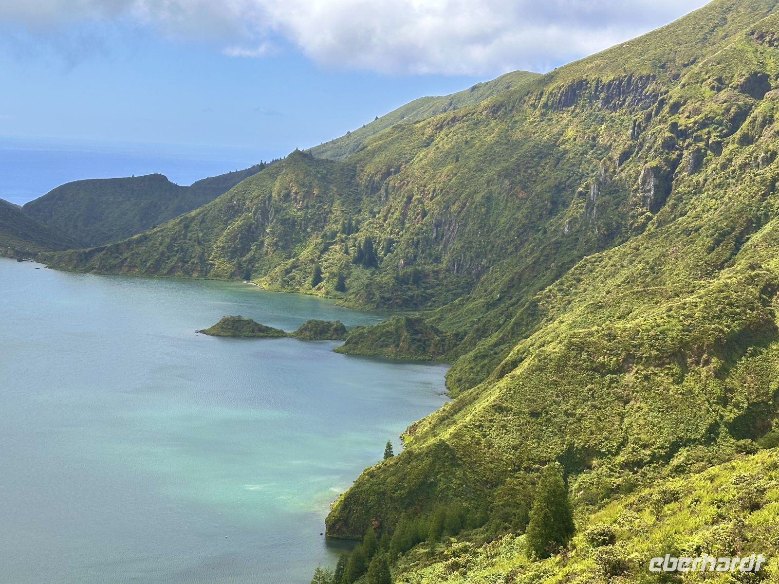 Am schönsten Strand der Insel Sao Miguel beginnt unsere heutige Tour in die Mitte der Insel. Auf dem Weg dahin haben wir die Gelegenheit in einem kleinen Fischerdorf die Fischer bei ihrer Vorbereitung zur nächsten Tour aufs offene Meer zu beobachten und lassen uns aus erster Hand erklären, wie der Fischfang ganz ohne Netze funktioniert. In diesem Ort wird Handwerk ganz großgeschrieben. Neben dem Fischfang gibt es in Lagoa auch noch eine traditionelle Keramikfabrik in der in liebevoller Handarbeit die verschiedensten Dinge geformt, gebrannt und anschließend ganz individuell bemalt und verziert werden. Nach den vielen interessanten Eindrücken machen wir uns auf zum Kratersee Lagoa do Fogo. Ein wunderschöner See, eingebettet in die bergige Umgebung und unberührte Natur pur. Ganz im Norden der Inselmitte erreichen wir später den Ort Ribeira Grande, den wir ganz in Ruhe erkunden können und die Atmosphäre auf dem Marktplatz bei einem Mittagessen genießen können. Nachdem wir uns heute bereits einen Eindruck zum Handwerk auf der Insel verschaffen konnten, machen wir auf unserem Weg zurück nach Ponta Delgada einen Halt bei einer kleinen Likörfabrik in der wir den Arbeitsprozess gezeigt bekommen und anschließend natürlich auch die verschiedenen Liköre probieren können. Ein gelungener Abschluss unserer heutigen sehr interessanten Inseltour auf Sao Miguel.