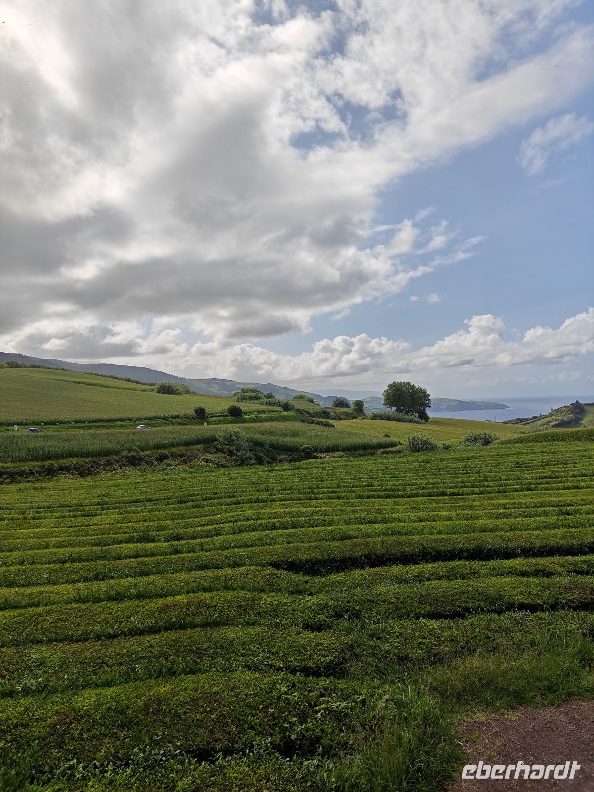 Wieder sauber abgeduscht setzen wir unsere Fahrt fort zur Teeplantage von Cha Gorreana. Europa hat nur 2 Plantagen, diese arbeitet noch und ist Europas älteste und größte. Wir probieren den grünen Tee – was für ein kulinarischer Ausflug heute!