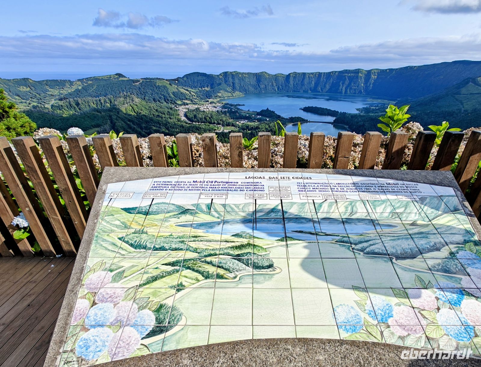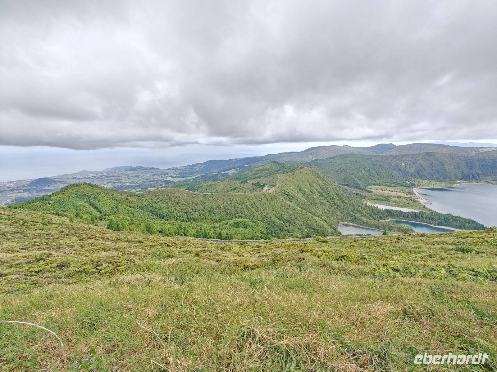 Weiter zum Vista de Rei – dem Königsblick. Grün-blaue Seeschalen funkeln uns entgegen, zwei Seen unterschiedlicher Farbe. Entweder aufgrund von Algen oder Lichteinfall oder, was mir am besten gefällt, wegen der Prinzessinnen-Legende die Frederick uns im Bus erzählt.