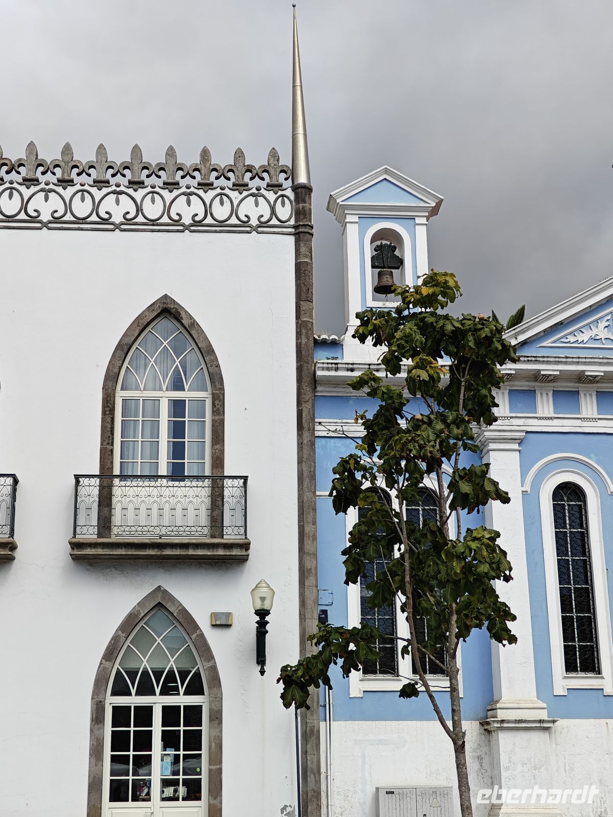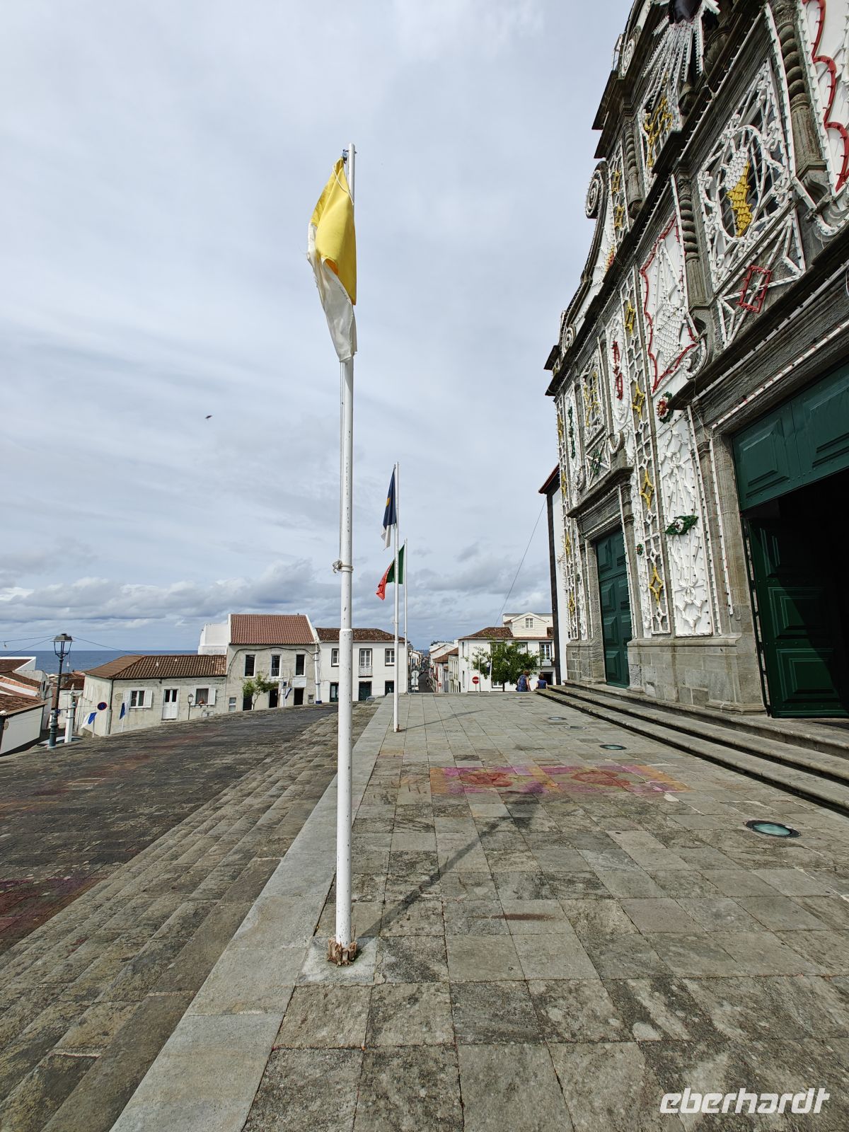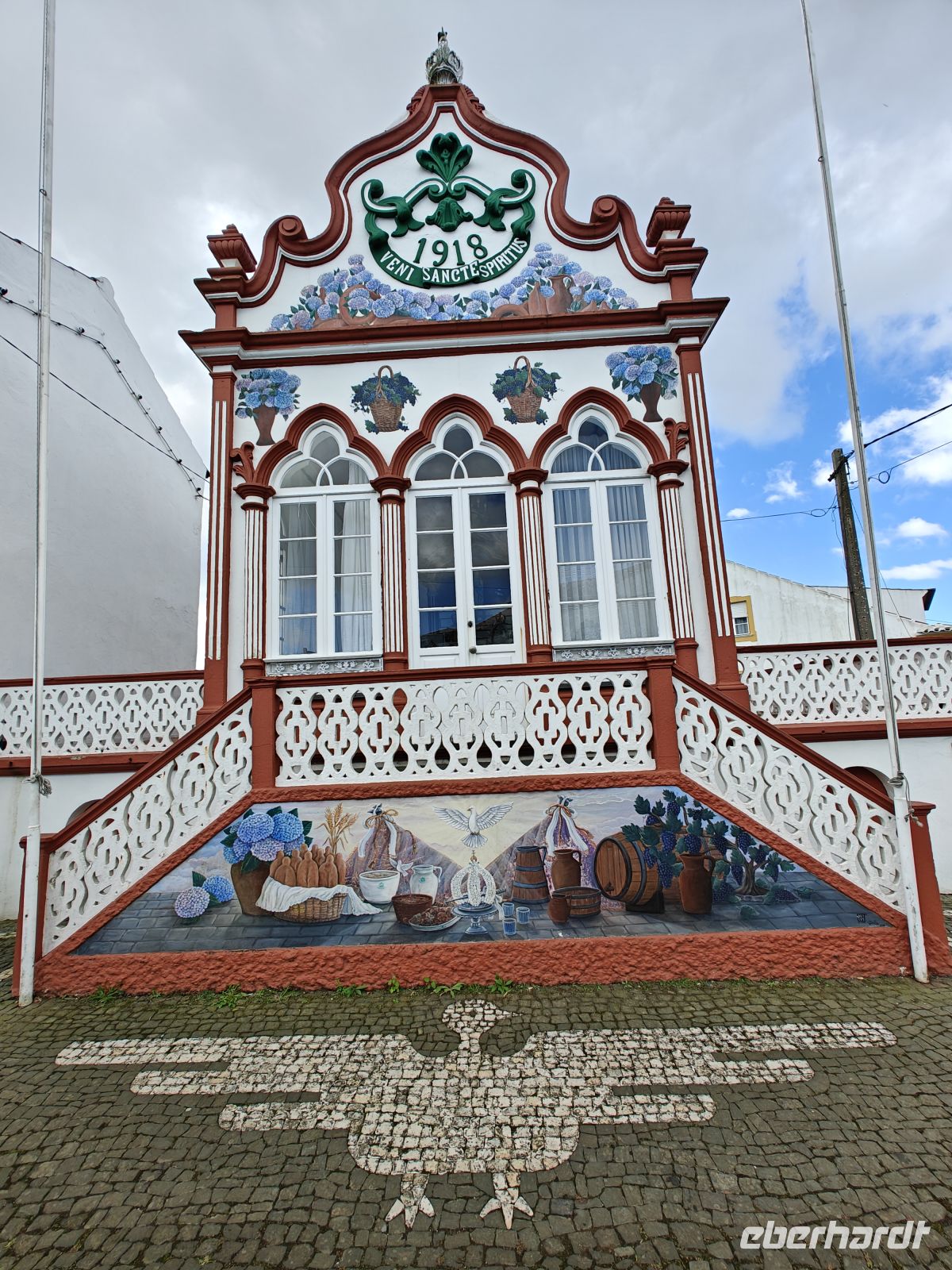 Die Insel hat ungefähr 30 Dörfer. In einem dieser kleinen Dörfer, in São Sebastião, machen wir Kaffeepause und bestaunen eines der über 70 Häuser des heiligen Geistes: Impérios Espírito Santo. Hier wurden Zepter, Krone, und Fahne fuer jährliche Prozessionen aufbewahrt.