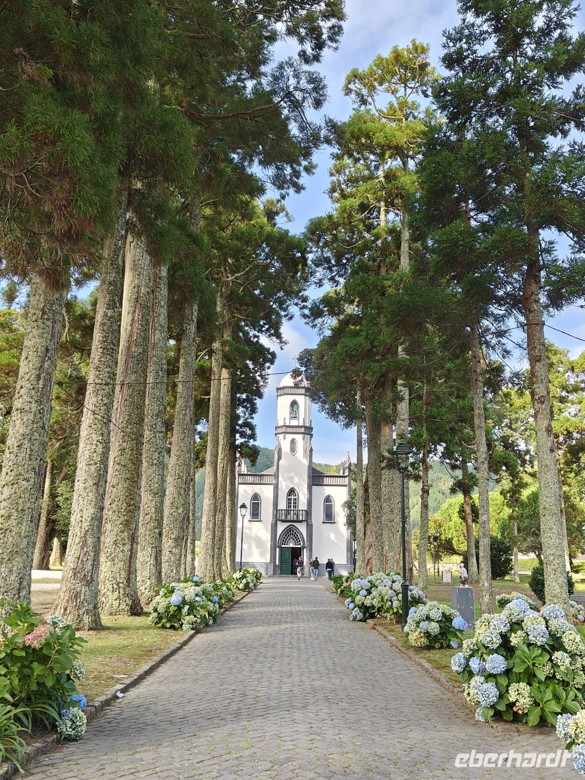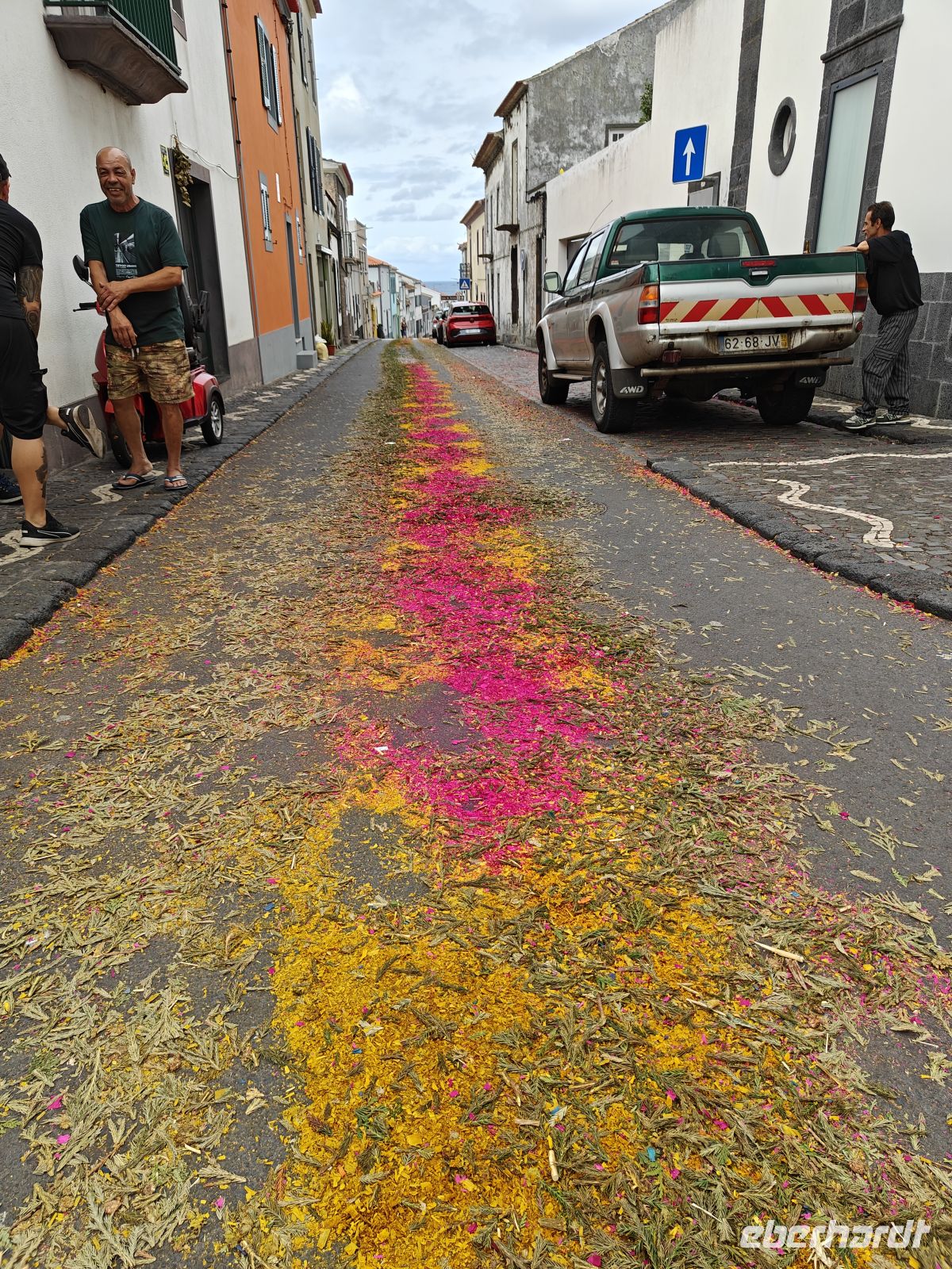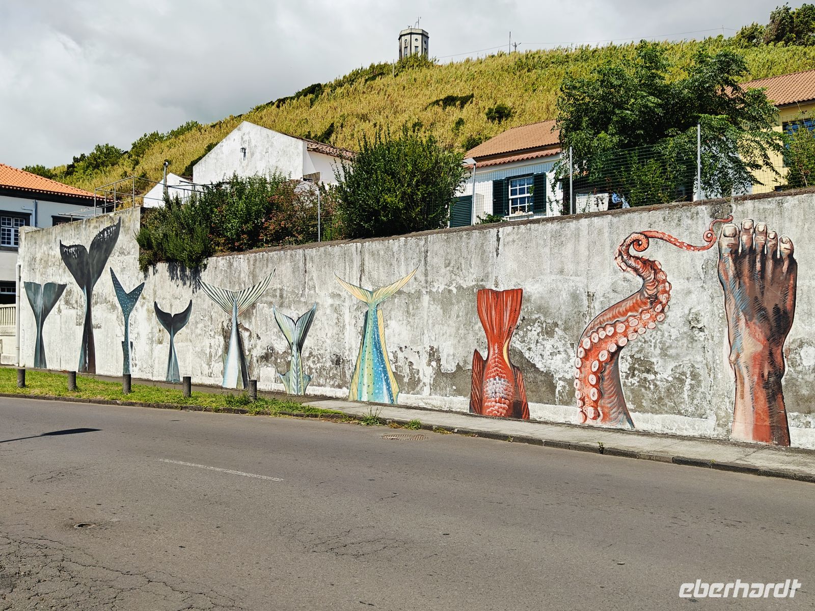 Die Insel hat ungefähr 30 Dörfer. In einem dieser kleinen Dörfer, in São Sebastião, machen wir Kaffeepause und bestaunen eines der über 70 Häuser des heiligen Geistes: Impérios Espírito Santo. Hier wurden Zepter, Krone, und Fahne fuer jährliche Prozessionen aufbewahrt.