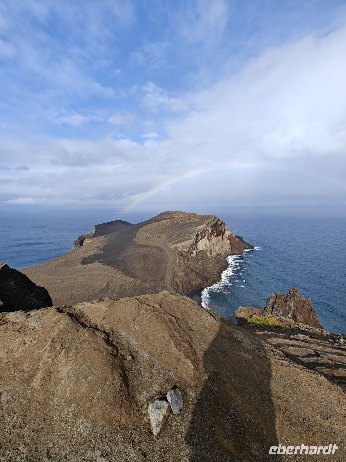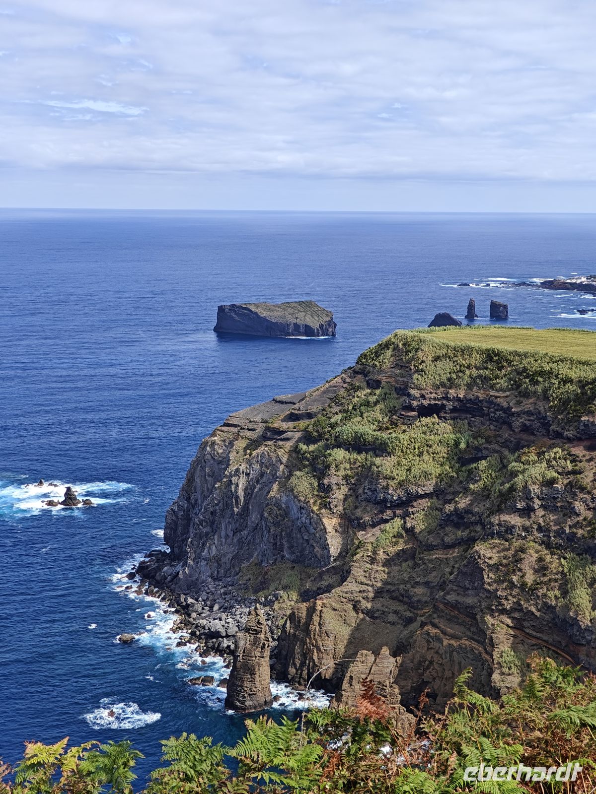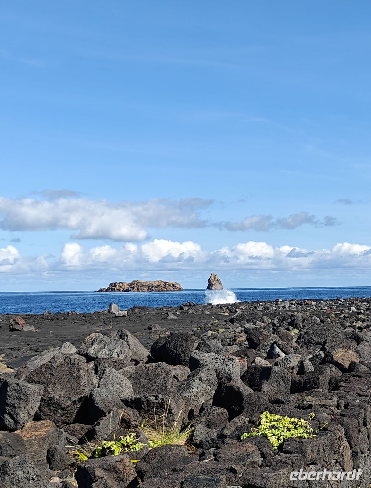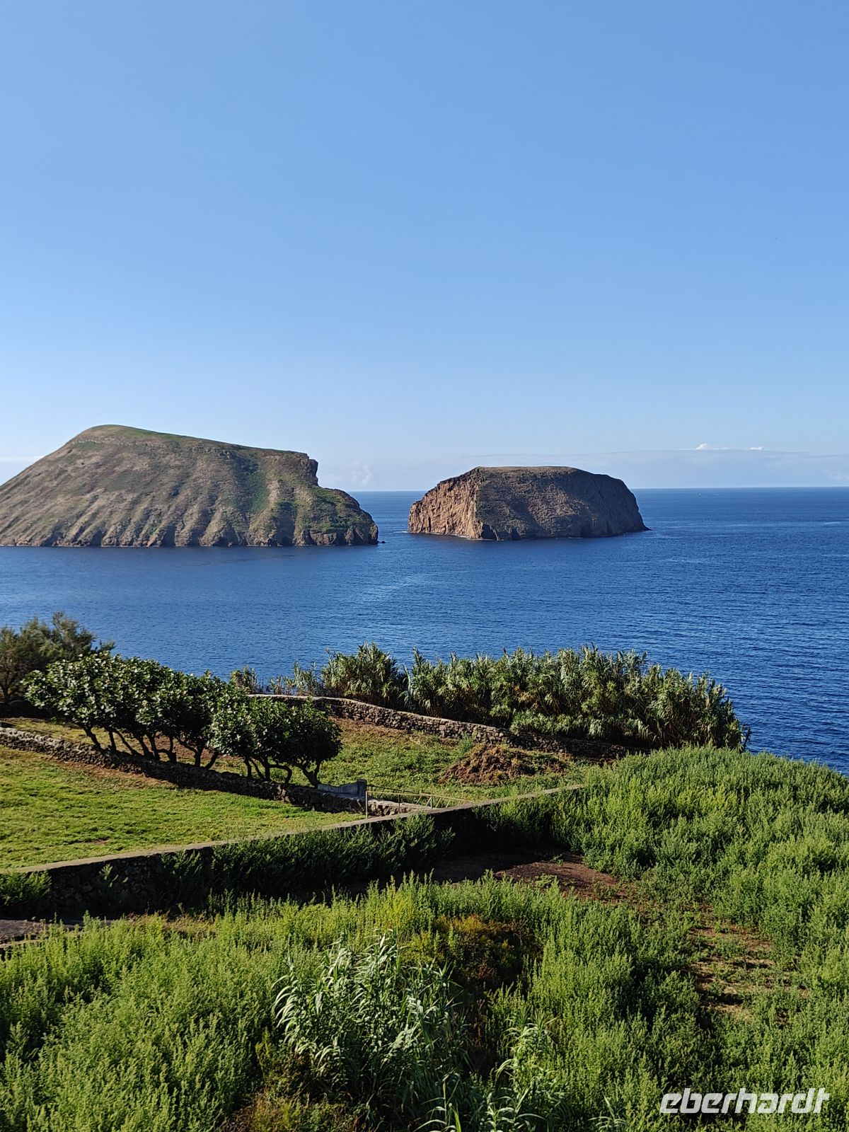 Vorgelagert sehen wir die kleinen Inselchen, die Ilhas das Cabras. Hier wurden in alten Zeiten Ziegen ausgesetzt um die Seefahrer auf der Rückkehr mit Nahrung zu versorgen. Der Gelbschnabelsturmtaucher ist überall zu sehen – und zu hören!!! Siehe Link unten.