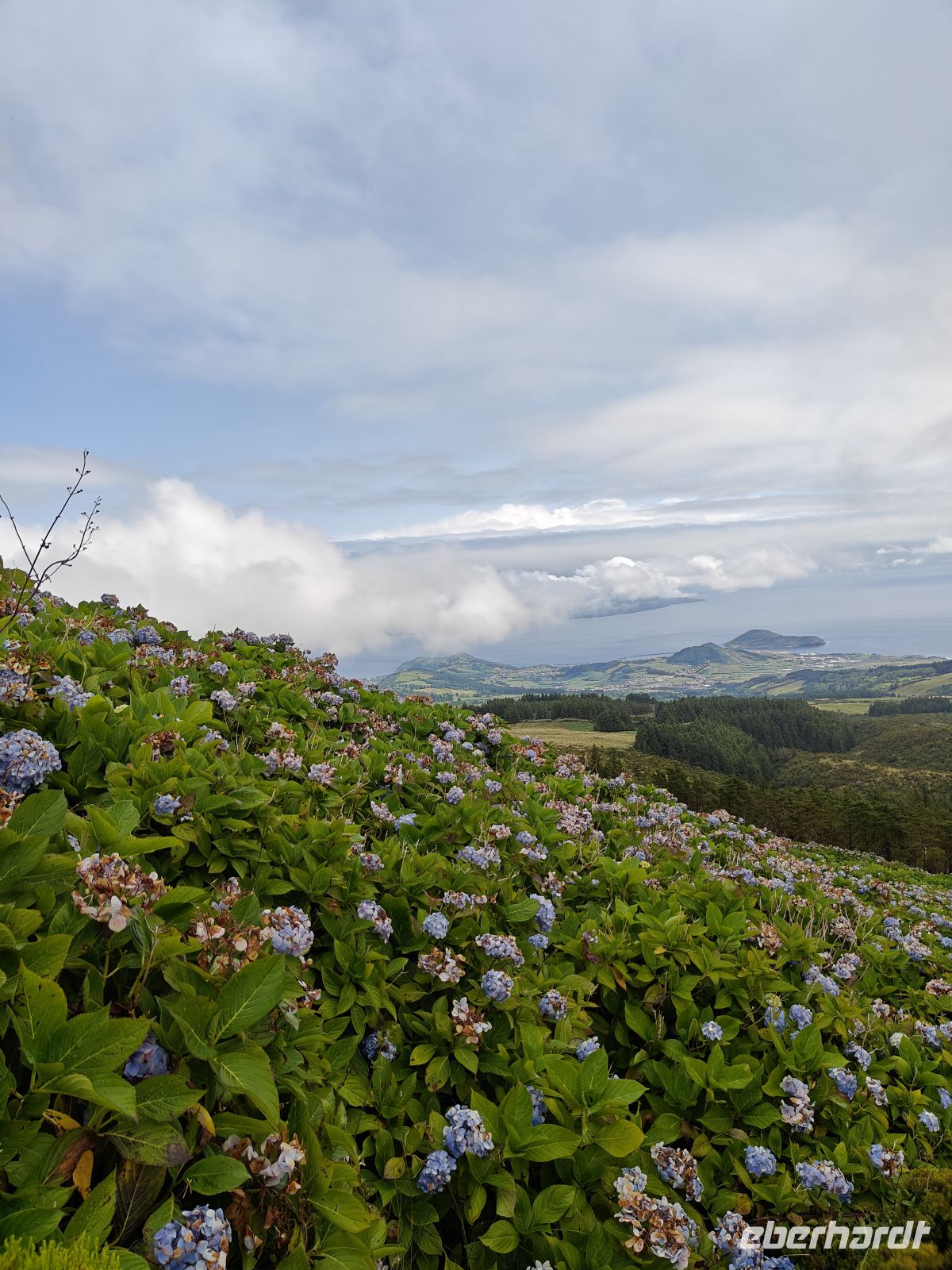 Faial wird die blaue Insel genannt wegen der Hortensien. Zwar leider schon fast verblüht aber wir bekommen eine Vorstellung wie es im Juni hier wohl aussieht!