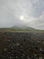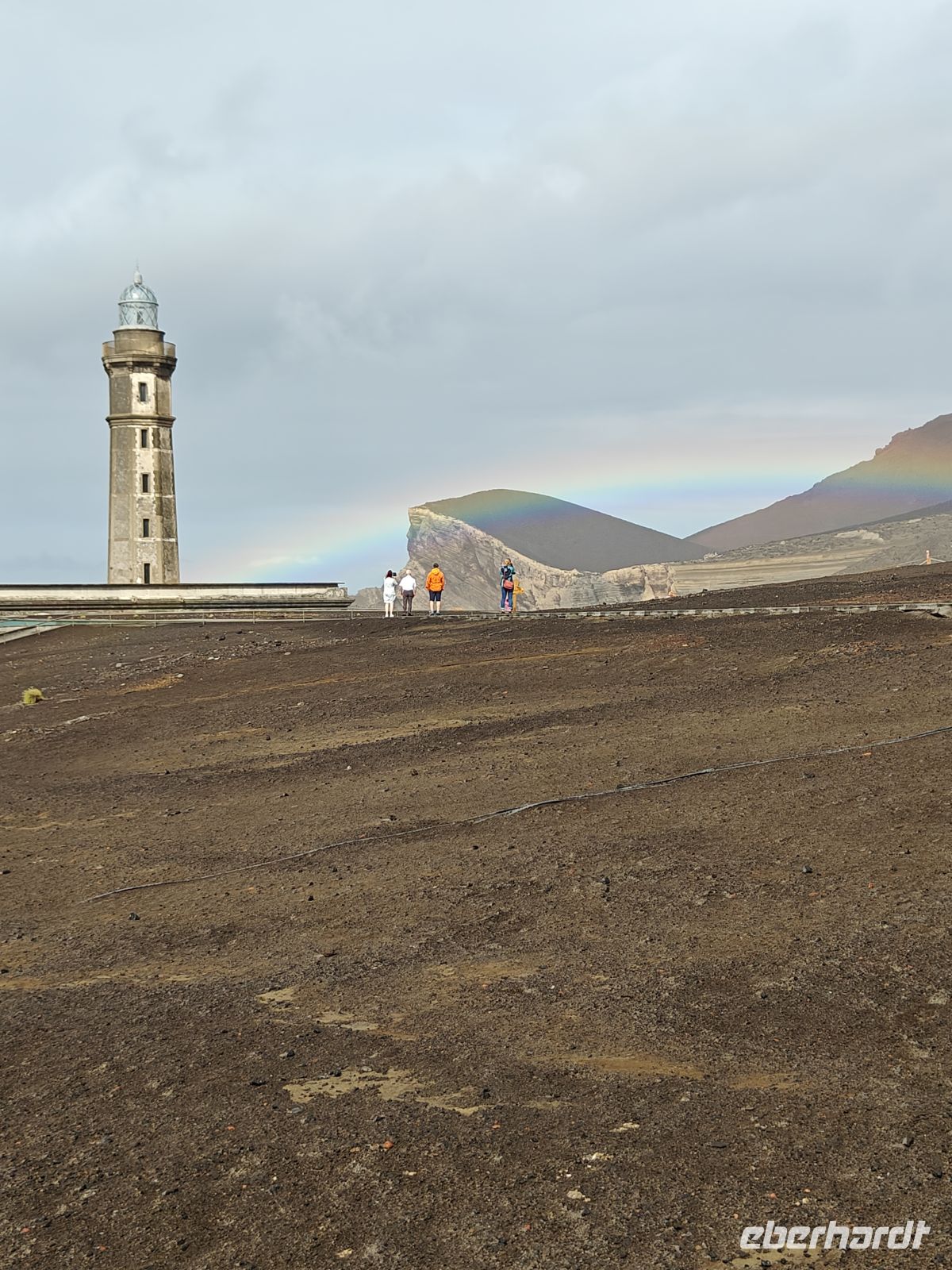 Auch heute Morgen ein klein wenig Nieselregen…aber es bricht auf. Zur Belohnung erwartet uns ein Regenbogen auf dem Vulkan von Capelinhos. Wir wandern durch die Lavalandschaft und freuen uns an dem Naturschauspiel samt Regenbogen!