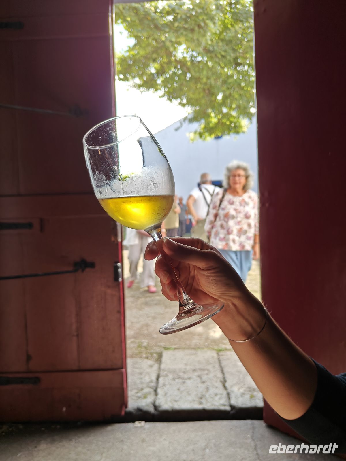 Anschließend zur Weinprobe um diesen besonderen Wein zu kosten – etwas schwefelhaltig im Geschmack!