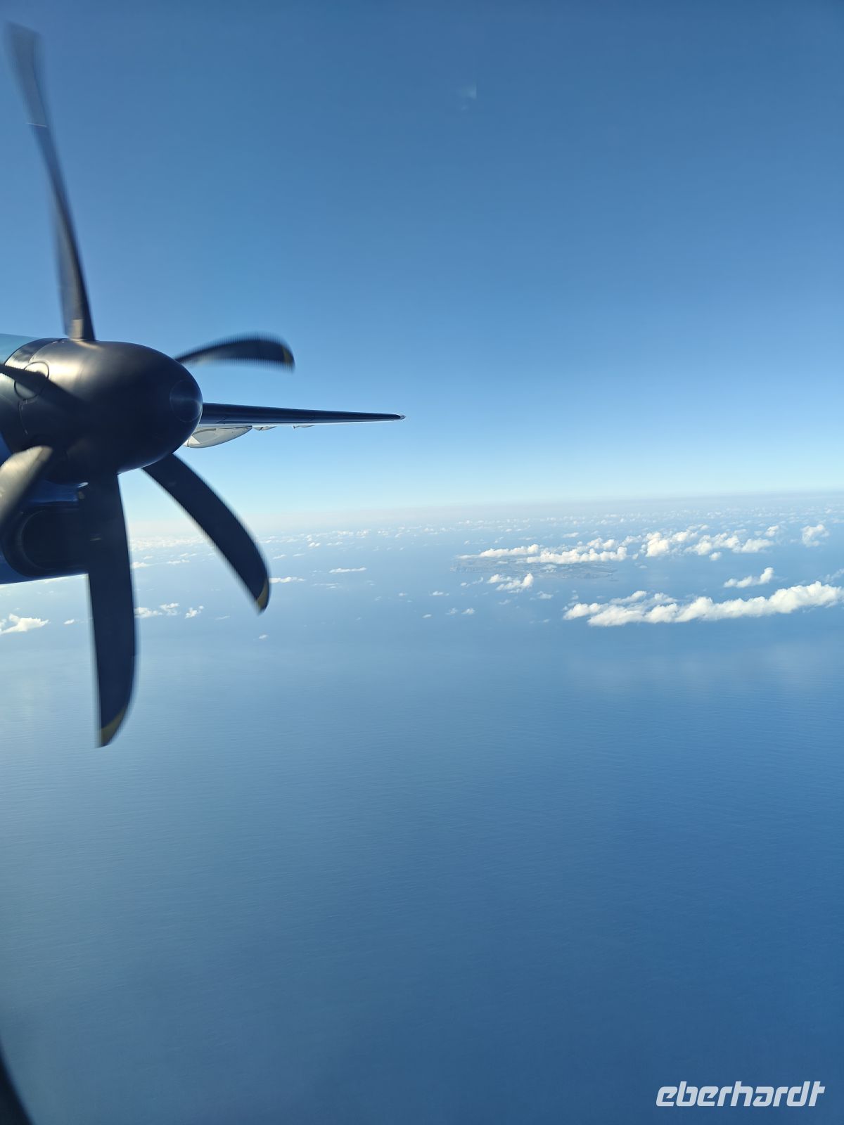 Mit einer kleinen Propeller-Maschine und einem klitzekleinen Flughafen macht das Reisen einen sehr entspannten Eindruck.