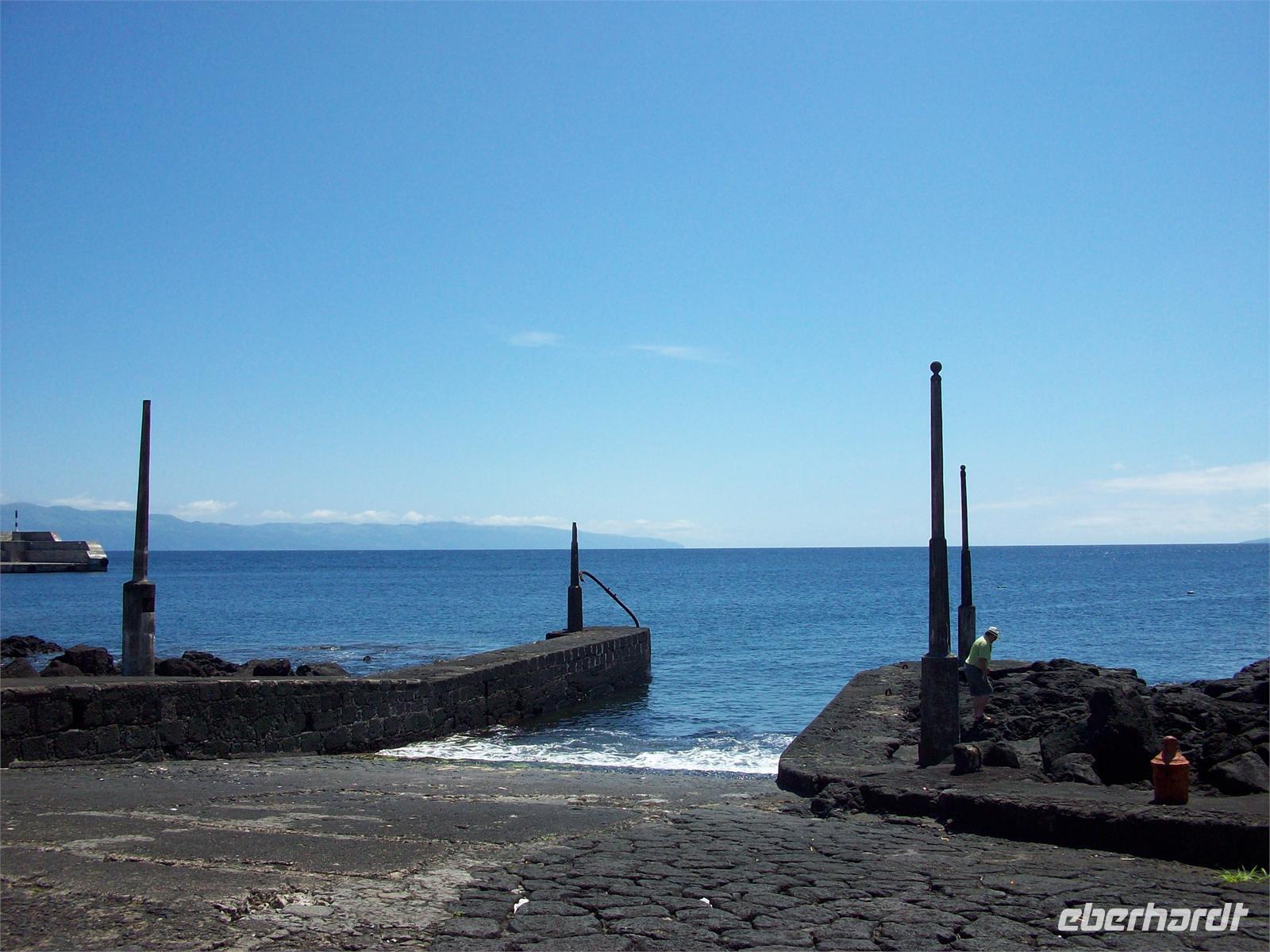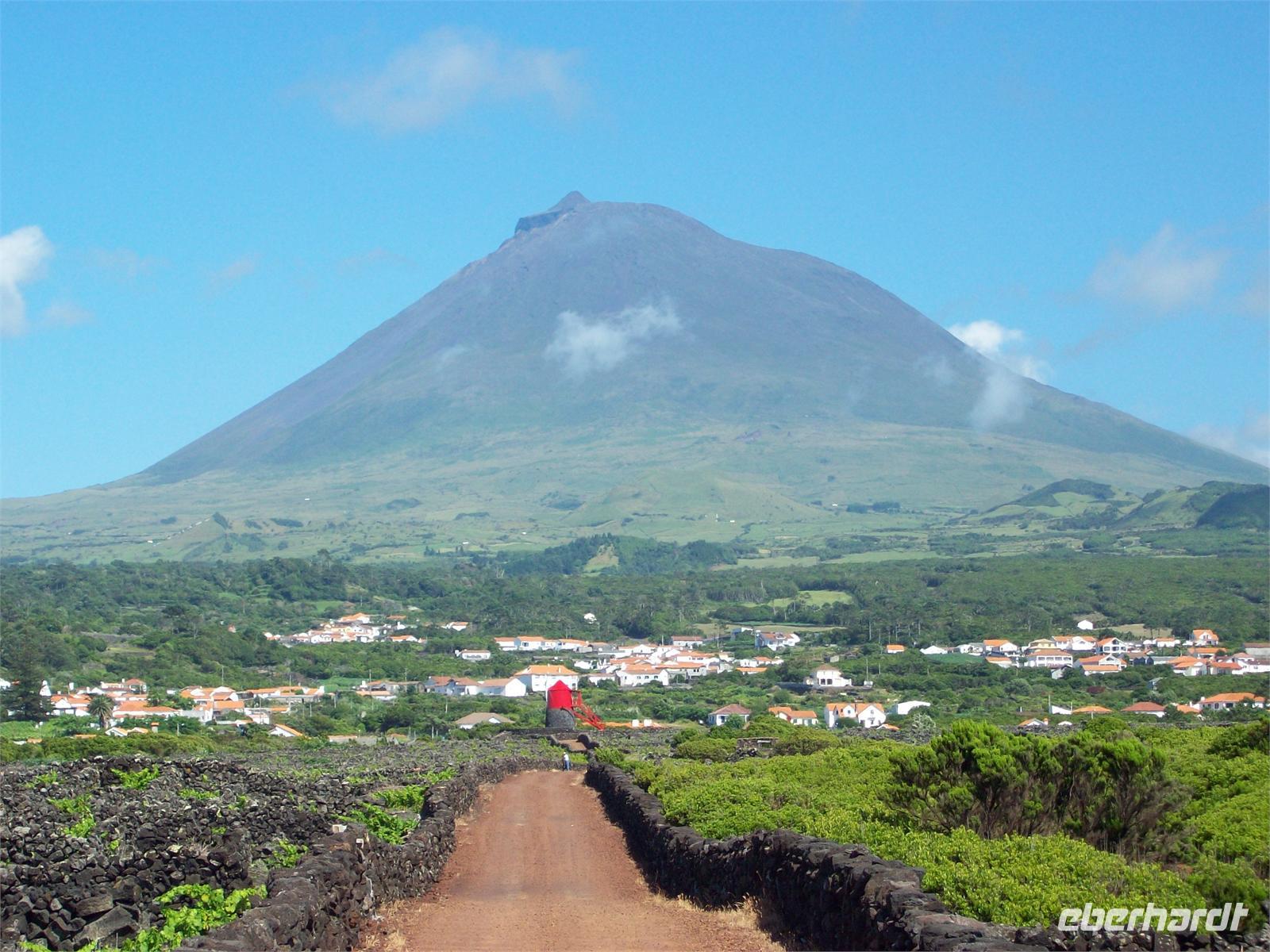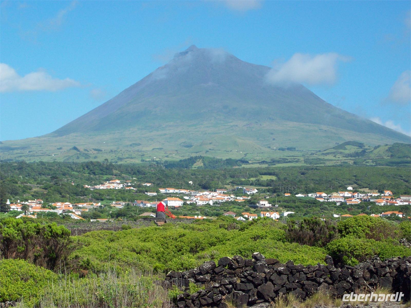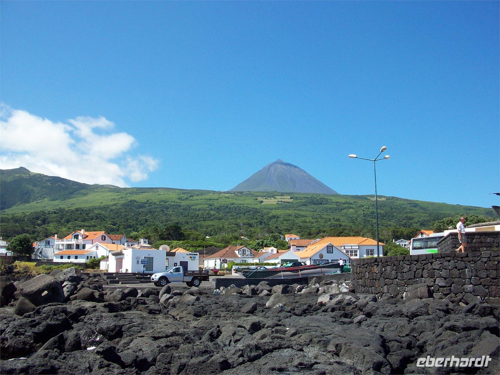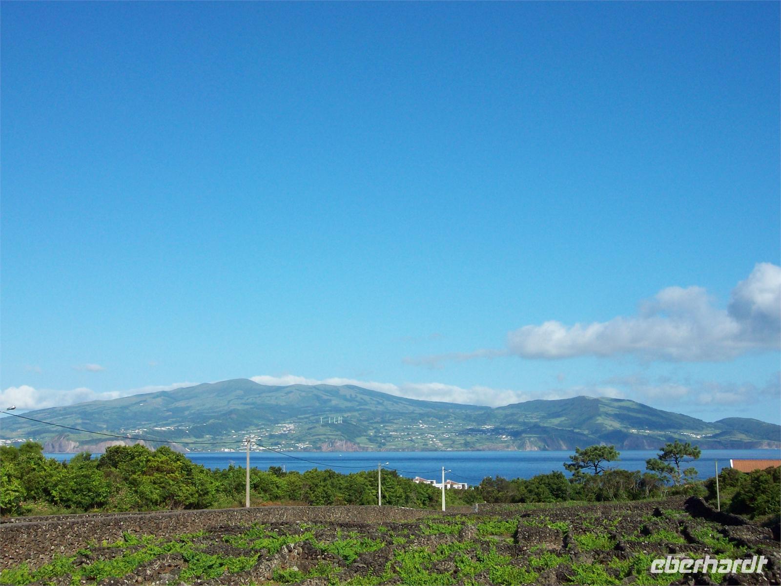 befindet sich die Anlegestelle der Fähre nach Pico. Diese besteigen wir kurz vor 09.00 Uhr. Auf einer wunderschönen Überfahrt haben wir schon wieder einen wunderbaren Blick auf den Pico und wir werden sehen, es bleibt den ganzen Tag so. Ich entschuldige mich schon jetzt bei allen Gruppen die nach uns kommen, denn laut Statistik sieht jeder Besucher den Pico nur einmal und wir haben ihn glücklicherweise bedeutend öfter gesehen! Wir Glückspilze! Am Hafen in Madalena auf Pico angekommen begrüßt uns gleich unsere Reiseleiterin, Manuela. Leider werden wir es nicht schaffen die komplette Insel zu erkunden, aber die eine Hälfte hat auch schon mehr als genug zu bieten. Die Insel Pico ist vor allem bekannt für seinen Wein und aus diesem Grund besuchen wir zu beginn unserer Tour das "Museu do Vinho" in Madalena. Nicht nur unendlich viele Weinfelder können wir entdecken sondern auch den 2. ältesten Drachenbaum der Welt. Wow! Unsere Route führt uns zu erst an der Nordküste entlang.