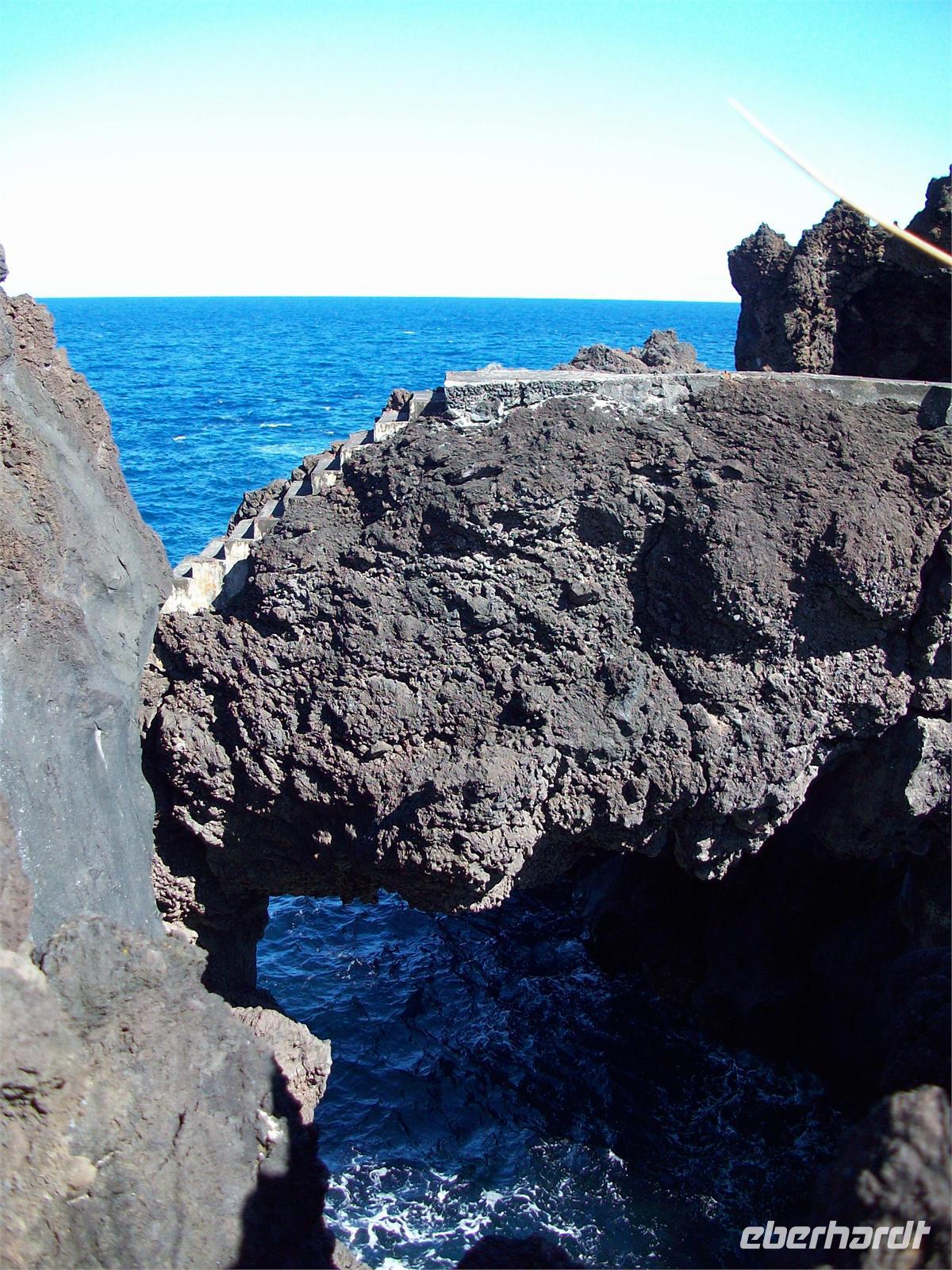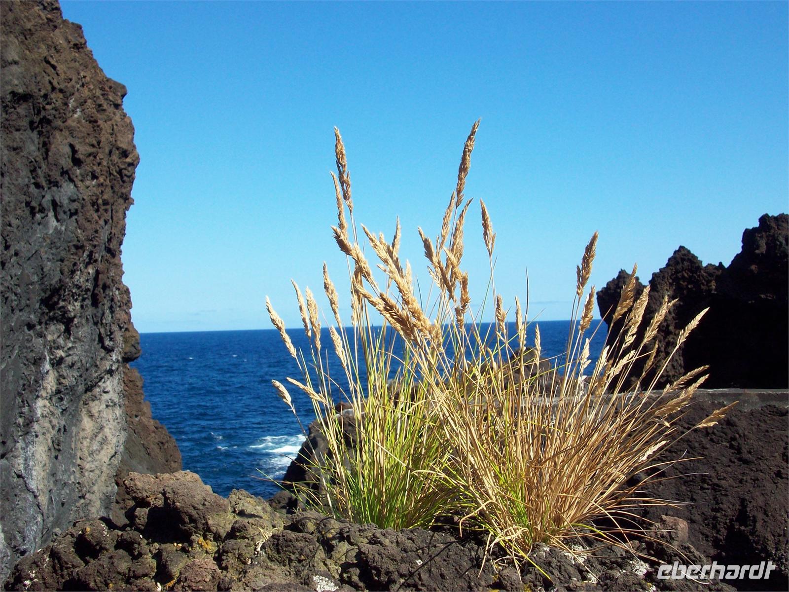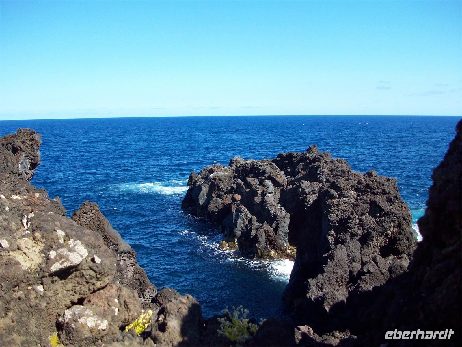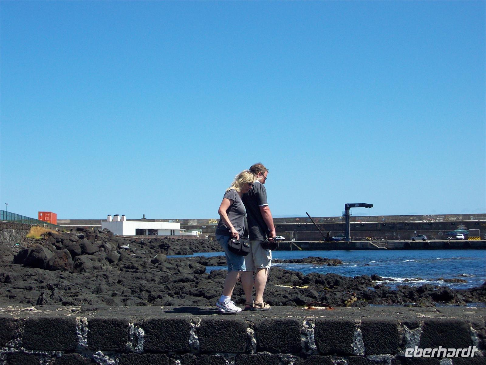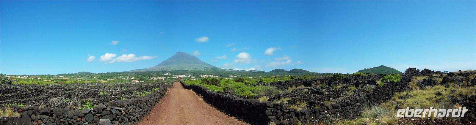 befindet sich die Anlegestelle der Fähre nach Pico. Diese besteigen wir kurz vor 09.00 Uhr. Auf einer wunderschönen Überfahrt haben wir schon wieder einen wunderbaren Blick auf den Pico und wir werden sehen, es bleibt den ganzen Tag so. Ich entschuldige mich schon jetzt bei allen Gruppen die nach uns kommen, denn laut Statistik sieht jeder Besucher den Pico nur einmal und wir haben ihn glücklicherweise bedeutend öfter gesehen! Wir Glückspilze! Am Hafen in Madalena auf Pico angekommen begrüßt uns gleich unsere Reiseleiterin, Manuela. Leider werden wir es nicht schaffen die komplette Insel zu erkunden, aber die eine Hälfte hat auch schon mehr als genug zu bieten. Die Insel Pico ist vor allem bekannt für seinen Wein und aus diesem Grund besuchen wir zu beginn unserer Tour das "Museu do Vinho" in Madalena. Nicht nur unendlich viele Weinfelder können wir entdecken sondern auch den 2. ältesten Drachenbaum der Welt. Wow! Unsere Route führt uns zu erst an der Nordküste entlang.