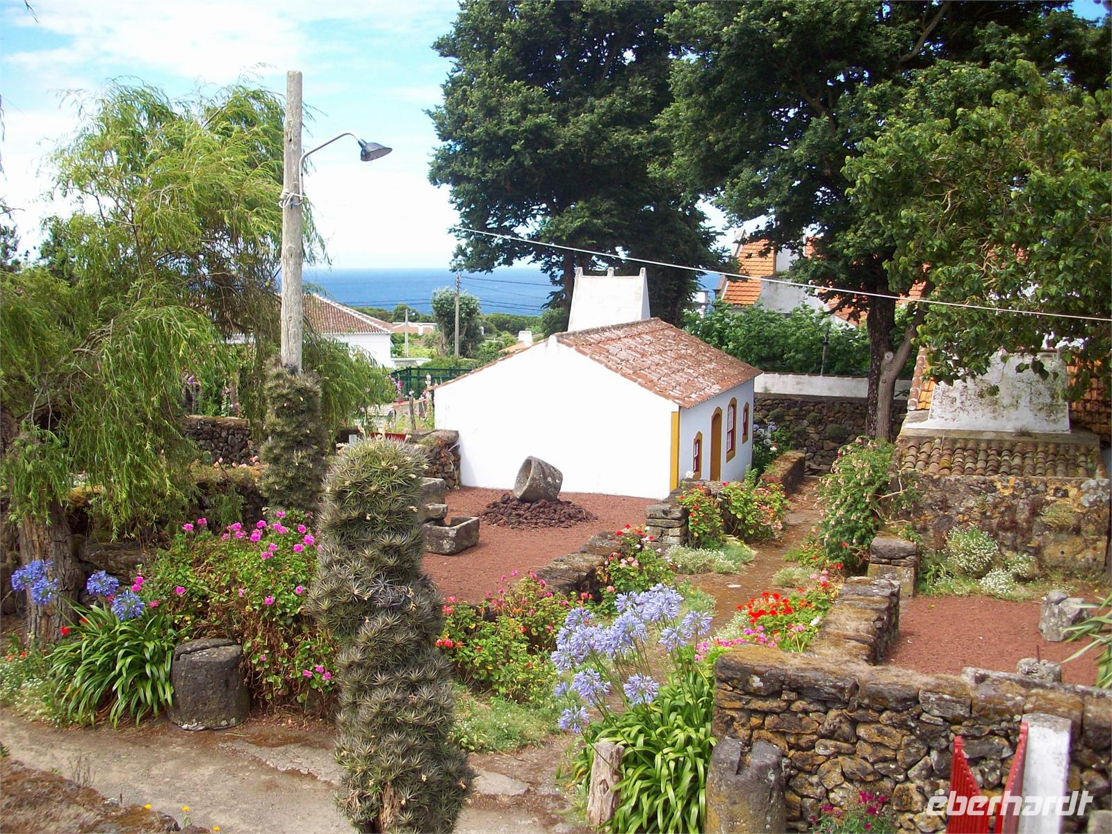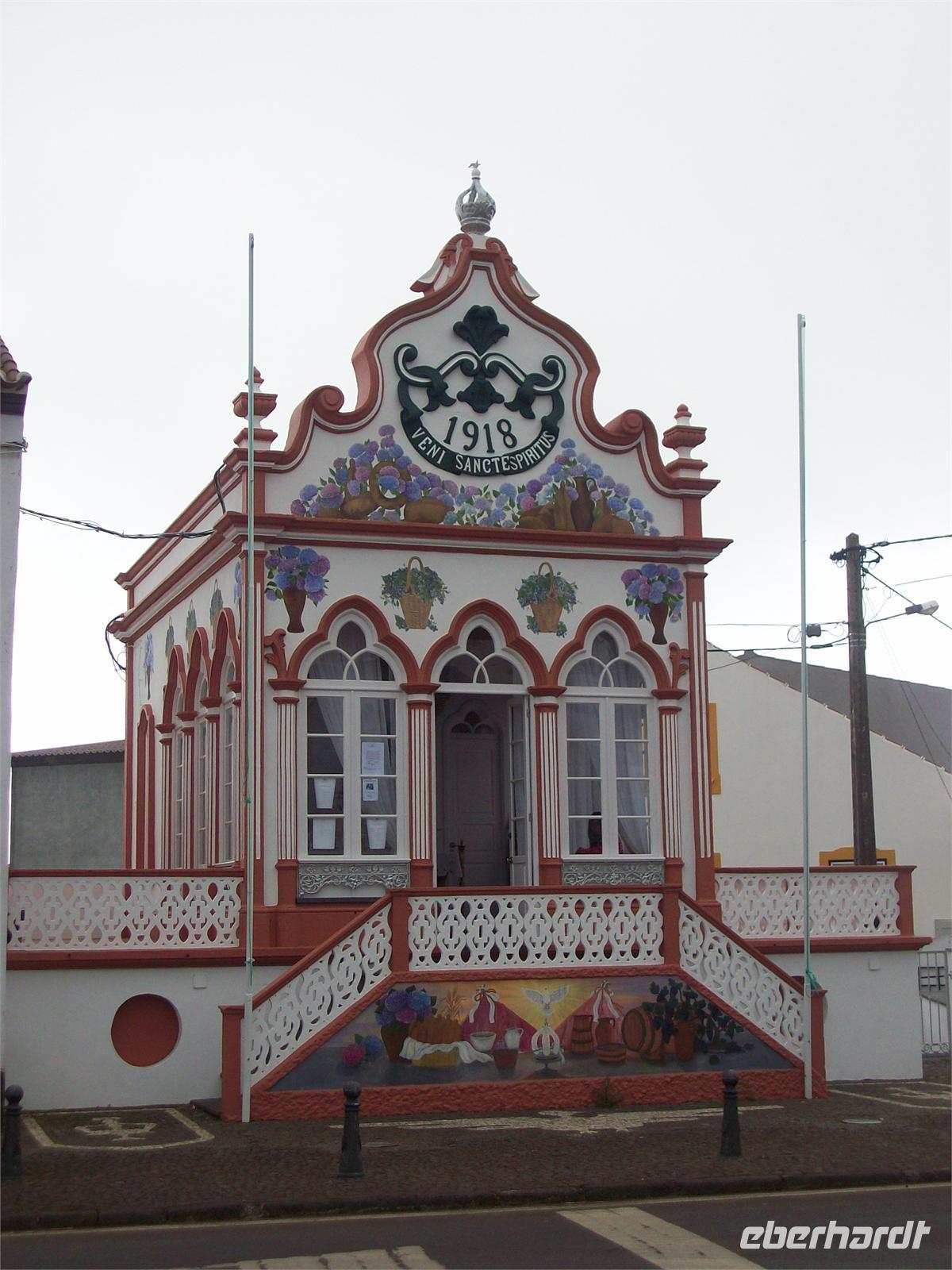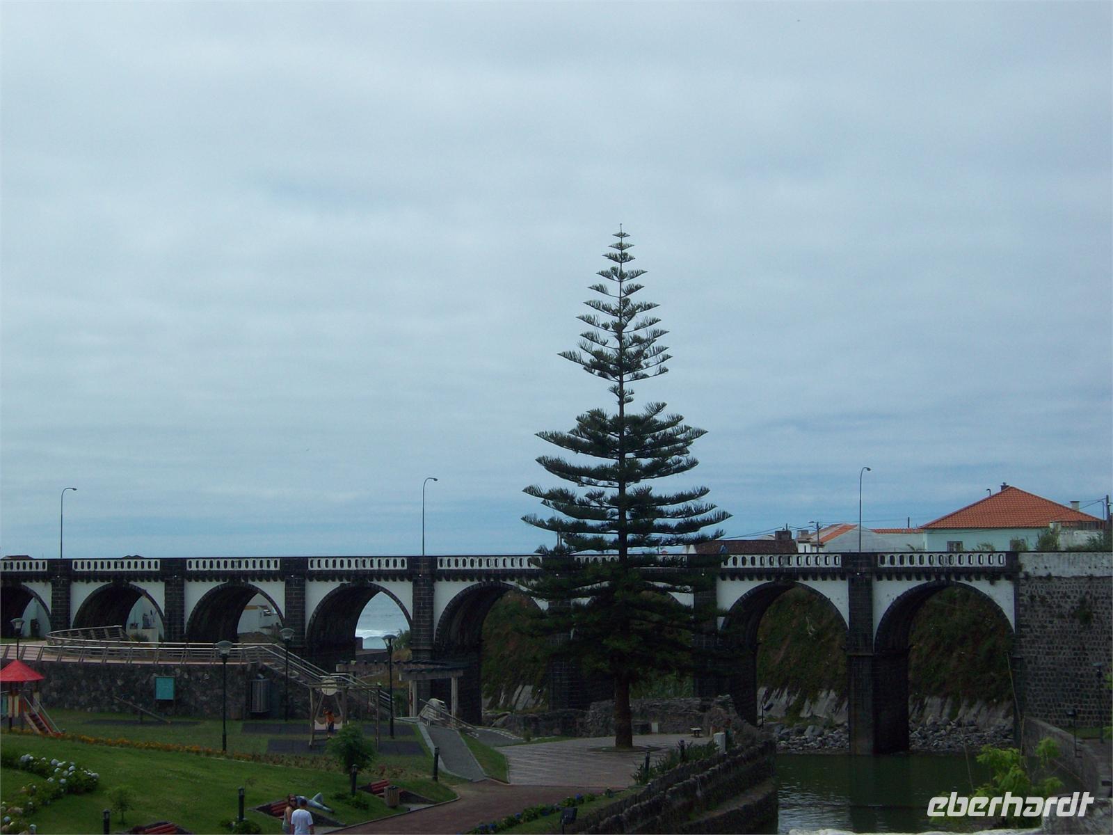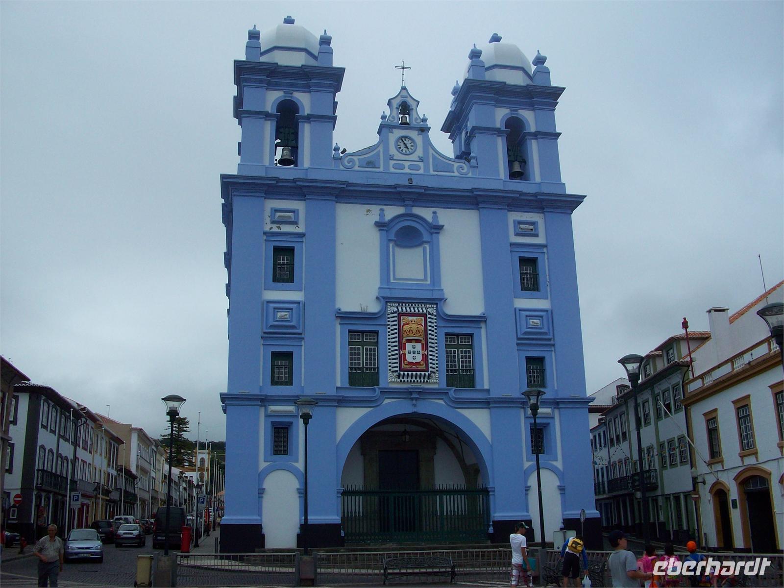 Sao Sebastiao, natürlich nicht ohne so einige Aussichtpunkt mitzunehmen, wie zum Beispiel der Blick auf die "Ziegeninsel" - eine Insel wo einmal die Ziegen grasten. Dies ist aber nicht das besondere. Das einzigartige ist, dass hier ein Tektonischer Riss in der Insel ist und es heute dadurch zwei anstatt einen Felsen gibt. Da haben sich die Kontinente glatt etwas verschoben! In der Stadt Sao Sebastiao angekommen haben wir uns erst einmal die Kirche angeschaut die für ihre Fresken bekannt ist. Danach haben wir etwas über das traditionelle Heiligengeistfest erfahren und uns die wundervoll verzierte Heiligengeistkapelle angeschaut. Nach einer kleinen Pause für eigene Erkundungen ging unsere Fahrt weiter nach Praia da Vitoria. Erstmal haben wir uns die noch recht junge Stadt von oben angeschaut und dann bei eigenen Erkundungen die Schönheiten der kleinen Stadt kennen gelernt. Weiter ging unsere Fahrt über einen Bergkamm zur Höhle Algar do Carvao. Diese Höhle ist etwas ganz besonderes denn sie geht nicht Vertikal im Berg entlang sondern Horizontal. Treppab, Treppauf erkunden wir die wunderschöne Höhle. Beeindruckend sind die Abdrücke, welche durch die Lavaströme entstanden sind und auch das Loch ganz oben in der Höhle, so braucht man nicht