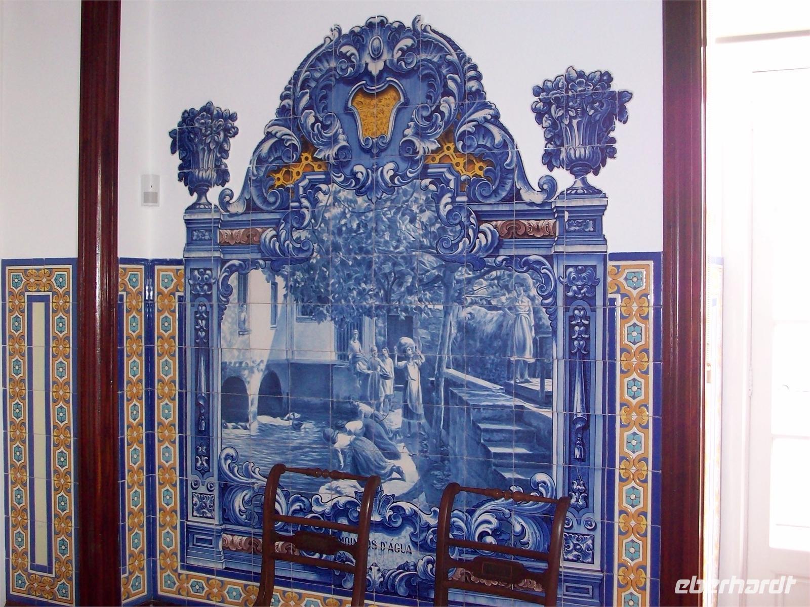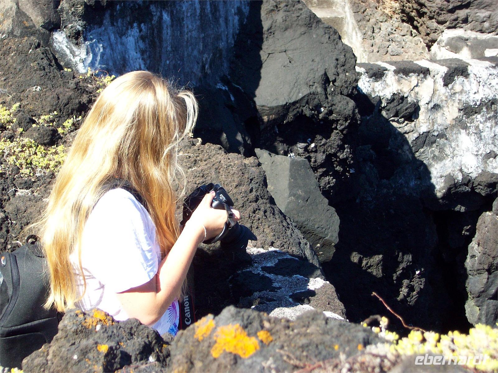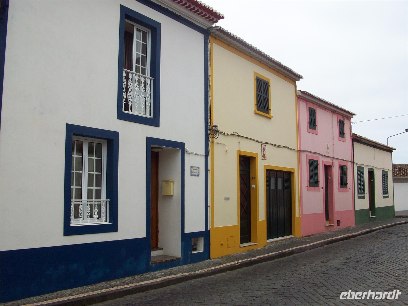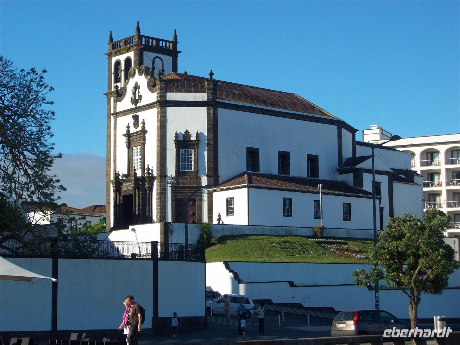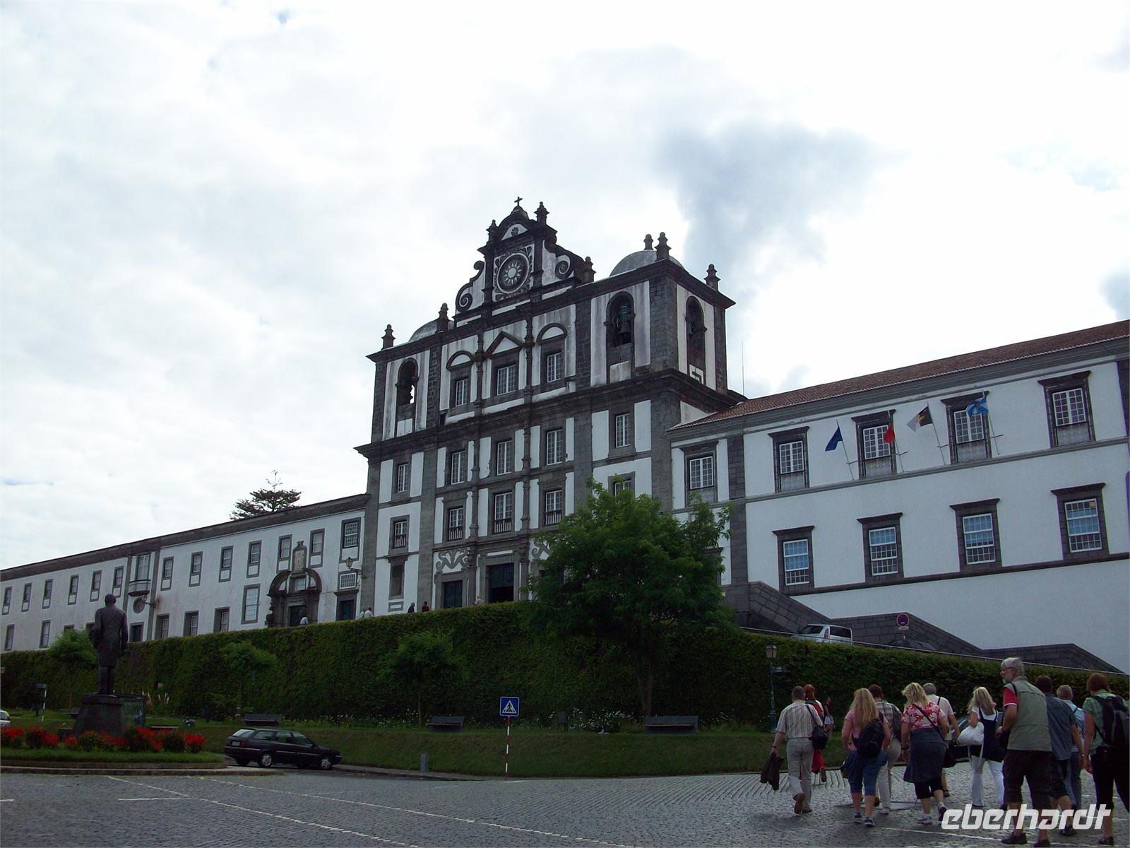 Sao Sebastiao, natürlich nicht ohne so einige Aussichtpunkt mitzunehmen, wie zum Beispiel der Blick auf die "Ziegeninsel" - eine Insel wo einmal die Ziegen grasten. Dies ist aber nicht das besondere. Das einzigartige ist, dass hier ein Tektonischer Riss in der Insel ist und es heute dadurch zwei anstatt einen Felsen gibt. Da haben sich die Kontinente glatt etwas verschoben! In der Stadt Sao Sebastiao angekommen haben wir uns erst einmal die Kirche angeschaut die für ihre Fresken bekannt ist. Danach haben wir etwas über das traditionelle Heiligengeistfest erfahren und uns die wundervoll verzierte Heiligengeistkapelle angeschaut. Nach einer kleinen Pause für eigene Erkundungen ging unsere Fahrt weiter nach Praia da Vitoria. Erstmal haben wir uns die noch recht junge Stadt von oben angeschaut und dann bei eigenen Erkundungen die Schönheiten der kleinen Stadt kennen gelernt. Weiter ging unsere Fahrt über einen Bergkamm zur Höhle Algar do Carvao. Diese Höhle ist etwas ganz besonderes denn sie geht nicht Vertikal im Berg entlang sondern Horizontal. Treppab, Treppauf erkunden wir die wunderschöne Höhle. Beeindruckend sind die Abdrücke, welche durch die Lavaströme entstanden sind und auch das Loch ganz oben in der Höhle, so braucht man nicht