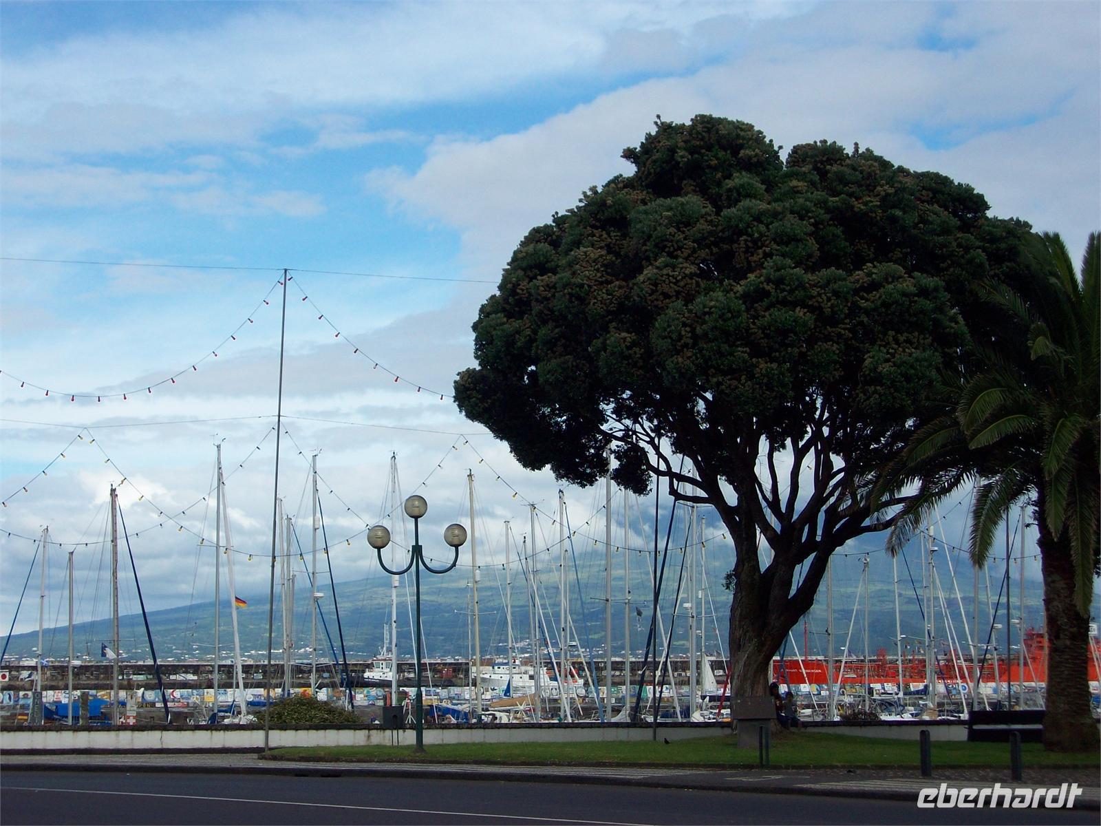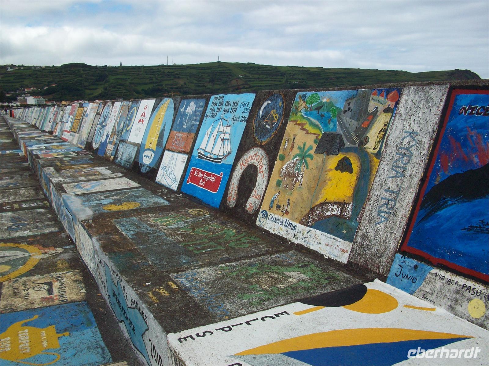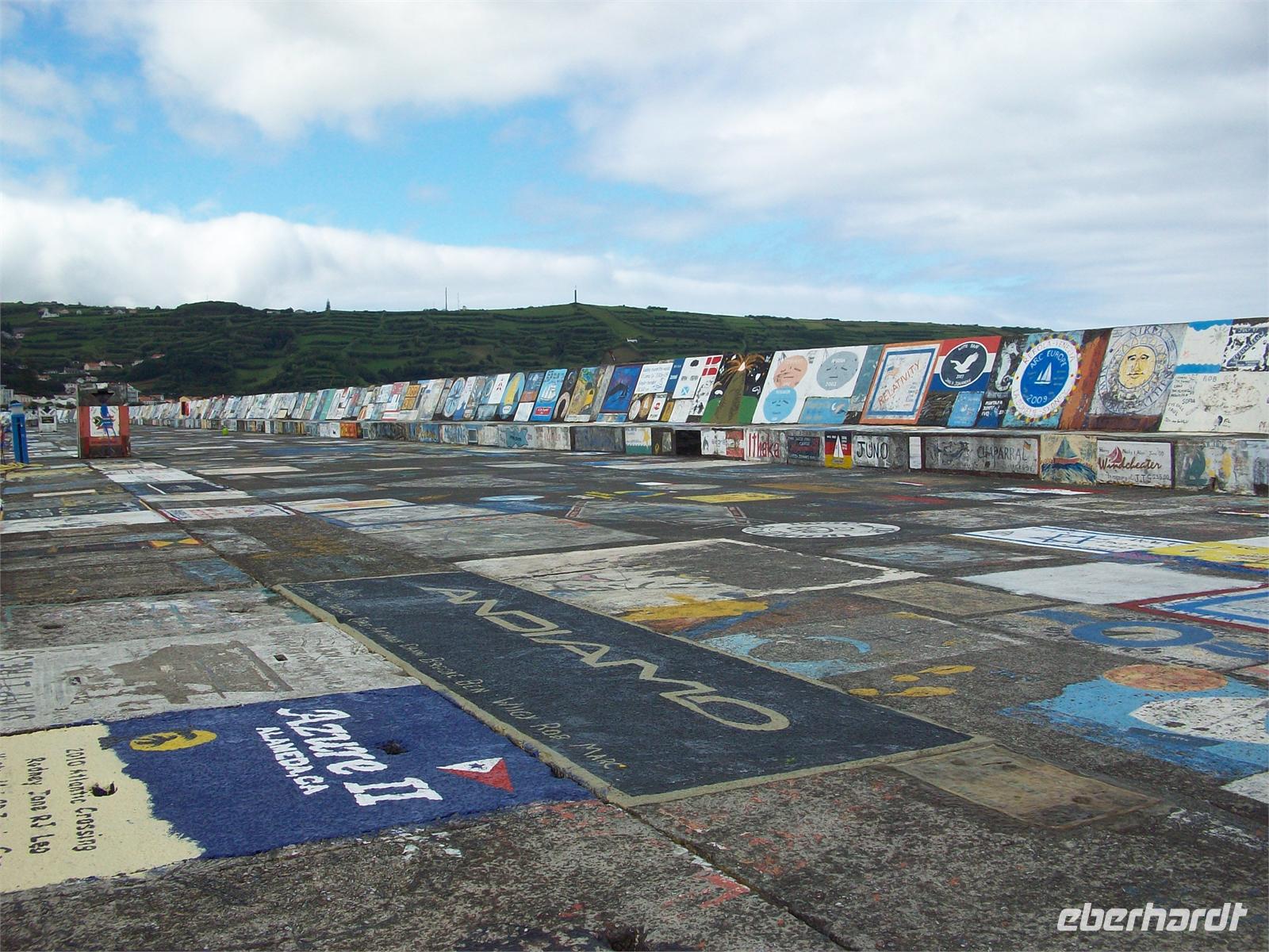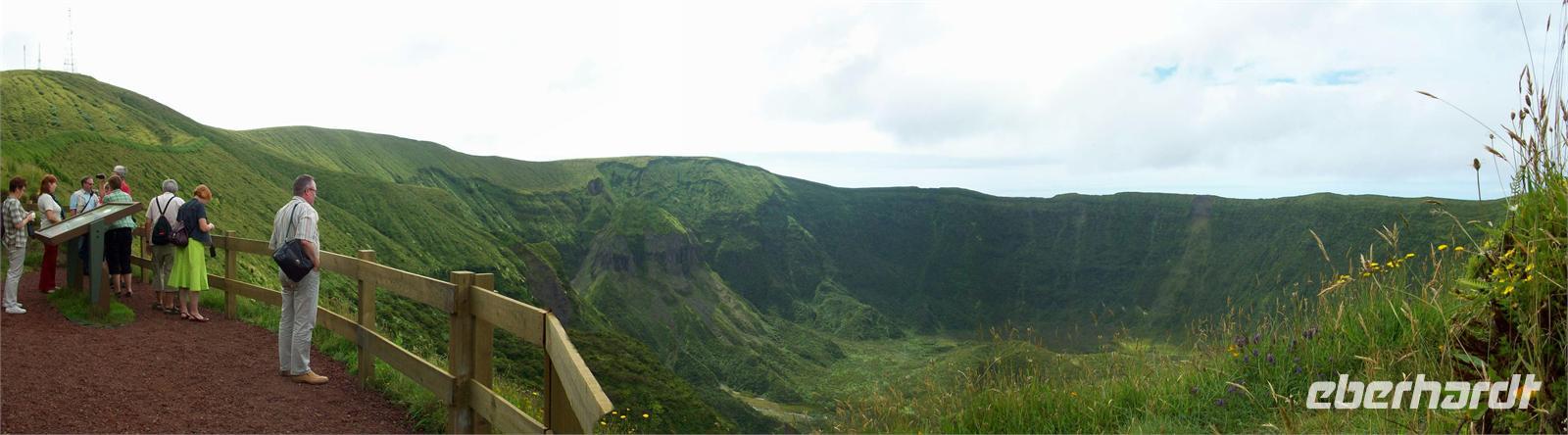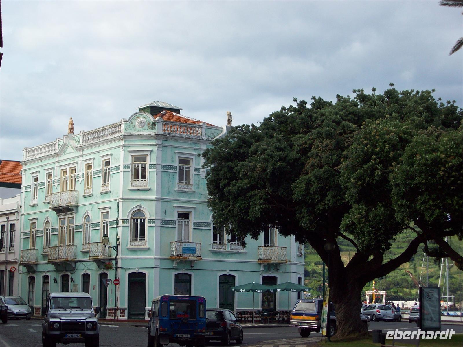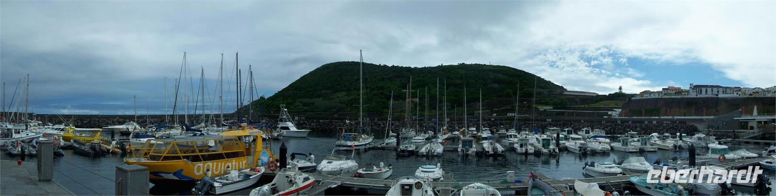 Und nach zahlreichen Fotostopps geht es ins Landesinnere, denn hier erwartet uns ein weiteres Highlight: die Caldeira. Die Caldeira von Faial ist eine der imposantesten Einsturzkrater der Azoren. Wir haben wie an allen anderen Tag mal wieder super tolles, fantastisches Wetter und haben so das Glück die Caldeira in ihrer ganzen Schönheit betrachte zu können. Wie toll! Unser letztes großes Ziel des heutigen Tages ist die Stadt Horta, wo sich unser Hotel befindet. Wir fahren also zur Ostküste und am Stadteingang müssen wir den Bus verlassen, denn nun heißt es ab auf die Füße: Stadtrundgang. Wir erhalten bei einem einstündigen Rundgang Einblicke in die Architektur der Stadt und lernen die Sehenswürdigkeiten kennen. Natürlich auch die In-Kneipe "Café Sport". Geschafft von so einem langen Tag gehen alle gemütlich Essen und fallen schließlich zufrieden ins Bett.