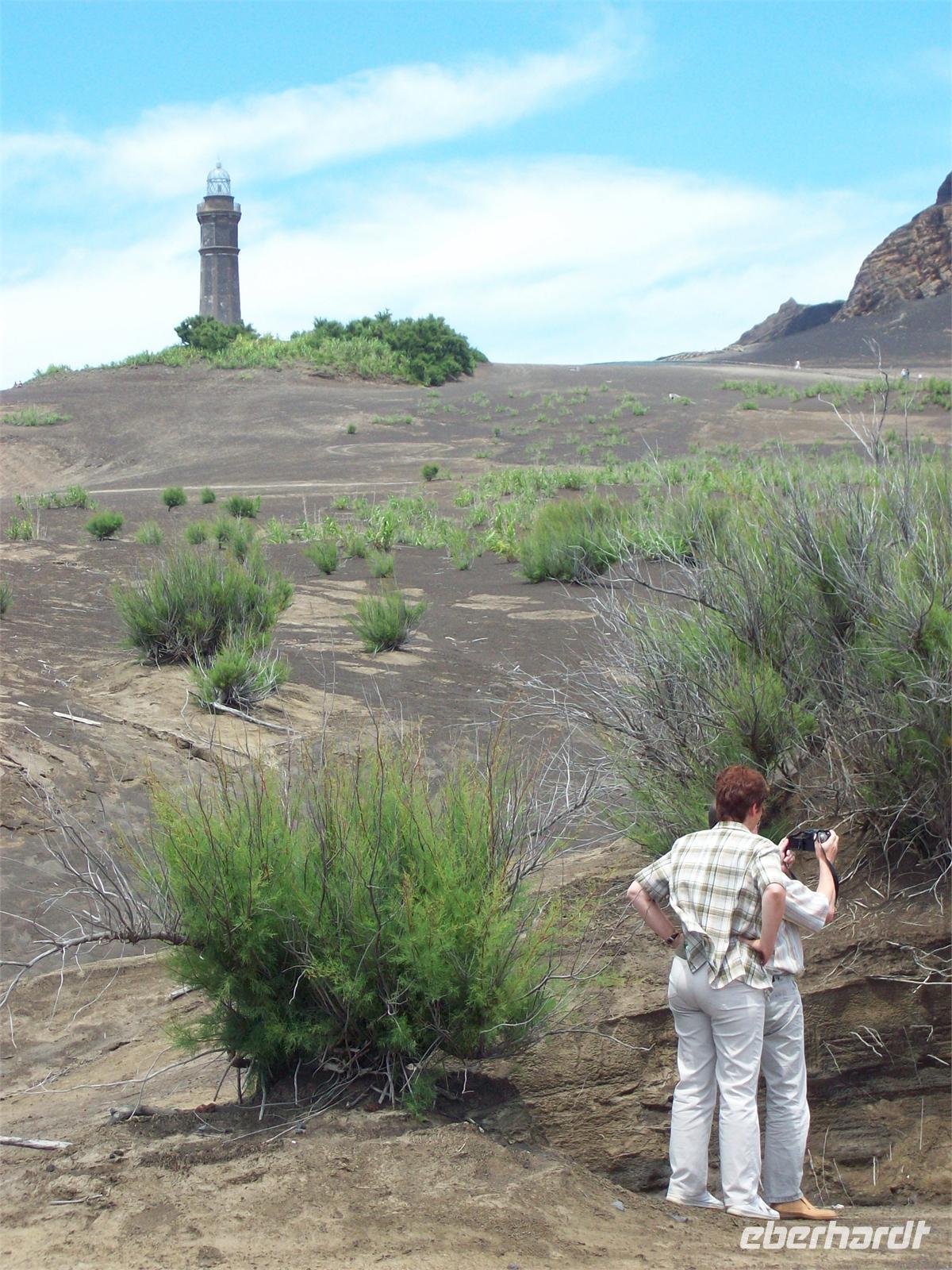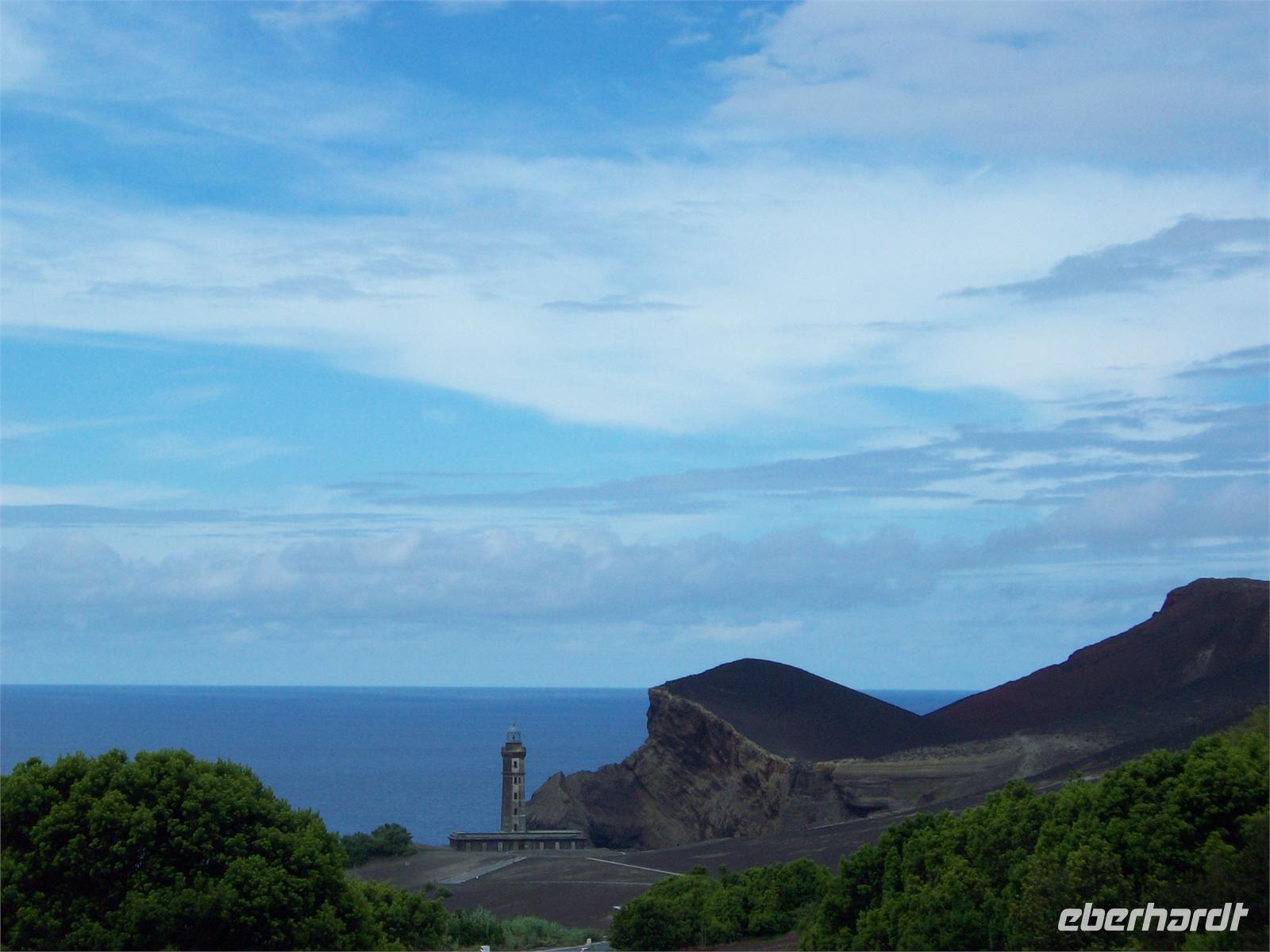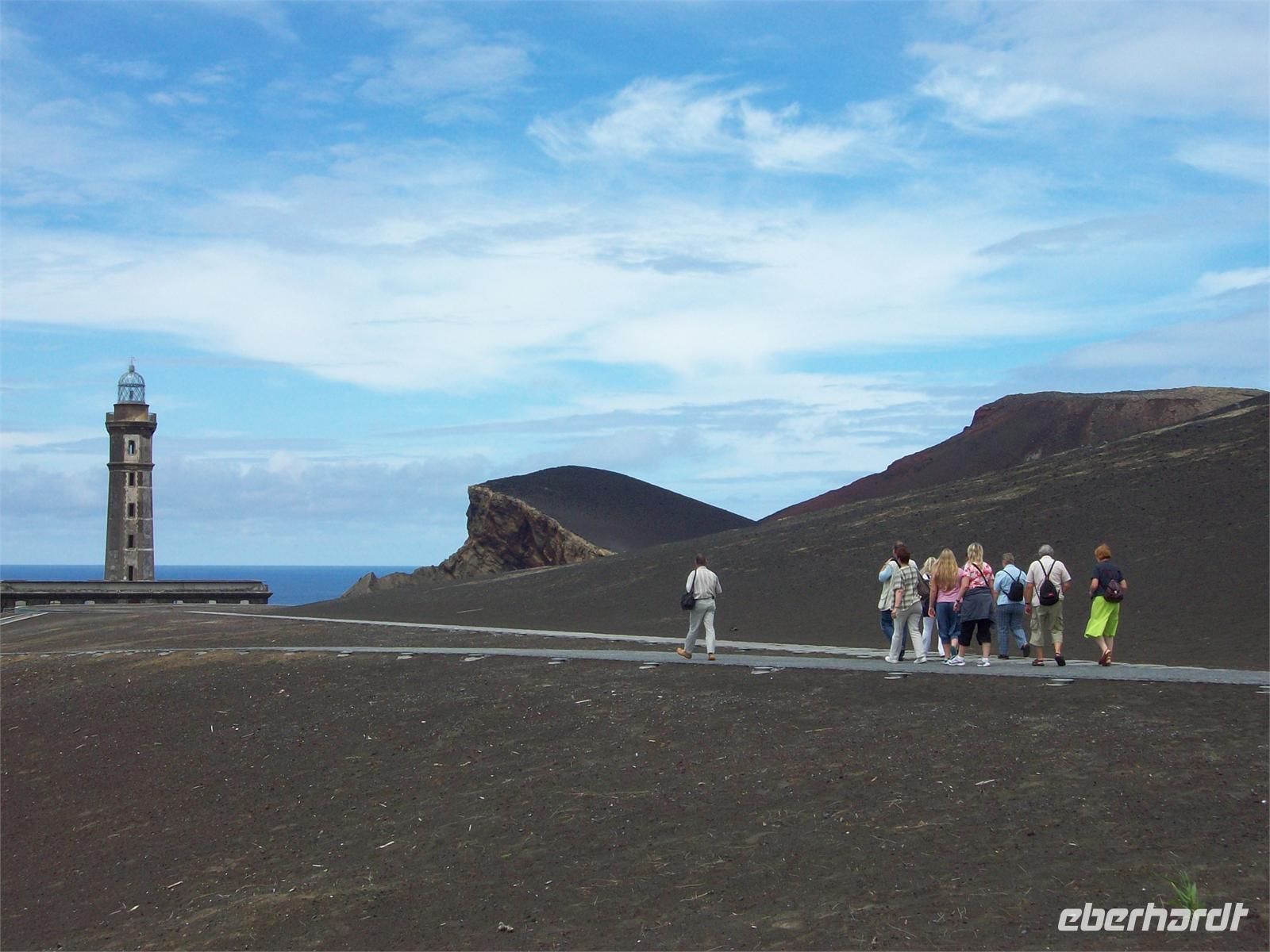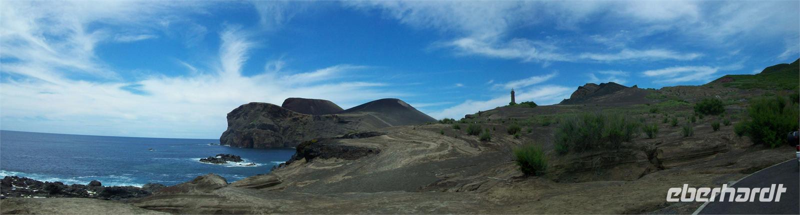 kurzen aber kräftigen Frühstück von unserem Transferfahrzeug vom Hotel abgeholt und zum Flughafen transferiert. Pünktlich um 10.00 Uhr hebt die kleine Maschine ab und wir fliegen bei hervorragendem Wetter und wunderbarer Sicht vorbei am Berg Pico und landen auf der kleinen, aber feinen Insel Faial. Gleich nach dem auschecken empfängt uns unsere örtliche Reiseleiterin Manuela. Unser erstes Ziel ist natürlich das Hotel. Hier entlasten wir uns von allen unnötigen Dingen und um 12.00 Uhr startet unsere Inselrundfahrt auf Faial. Das erste Ziel unserer Inselumrundung ist die Ponta dos Capelinhos. Eine Mondlandschaft am Rande der grünen "Blauen Insel". Wir besichtigen die Ausstellung und den ehemaligen Leuchtturm. Dieser funktioniert als solcher heute nicht mehr, da er mittlerweile nicht mehr an der Küste steht sondern mitten im Land. Grund hierfür ist der im Jahr 1957 ausgebrochene Vulkan vor der Westküste Faial's und der damit verbunden Landneugewinnung. Nach den Erkundungen dieser einmaligen Landschaft führt uns unsere Reise entlang der Küste in Richtung Norden.