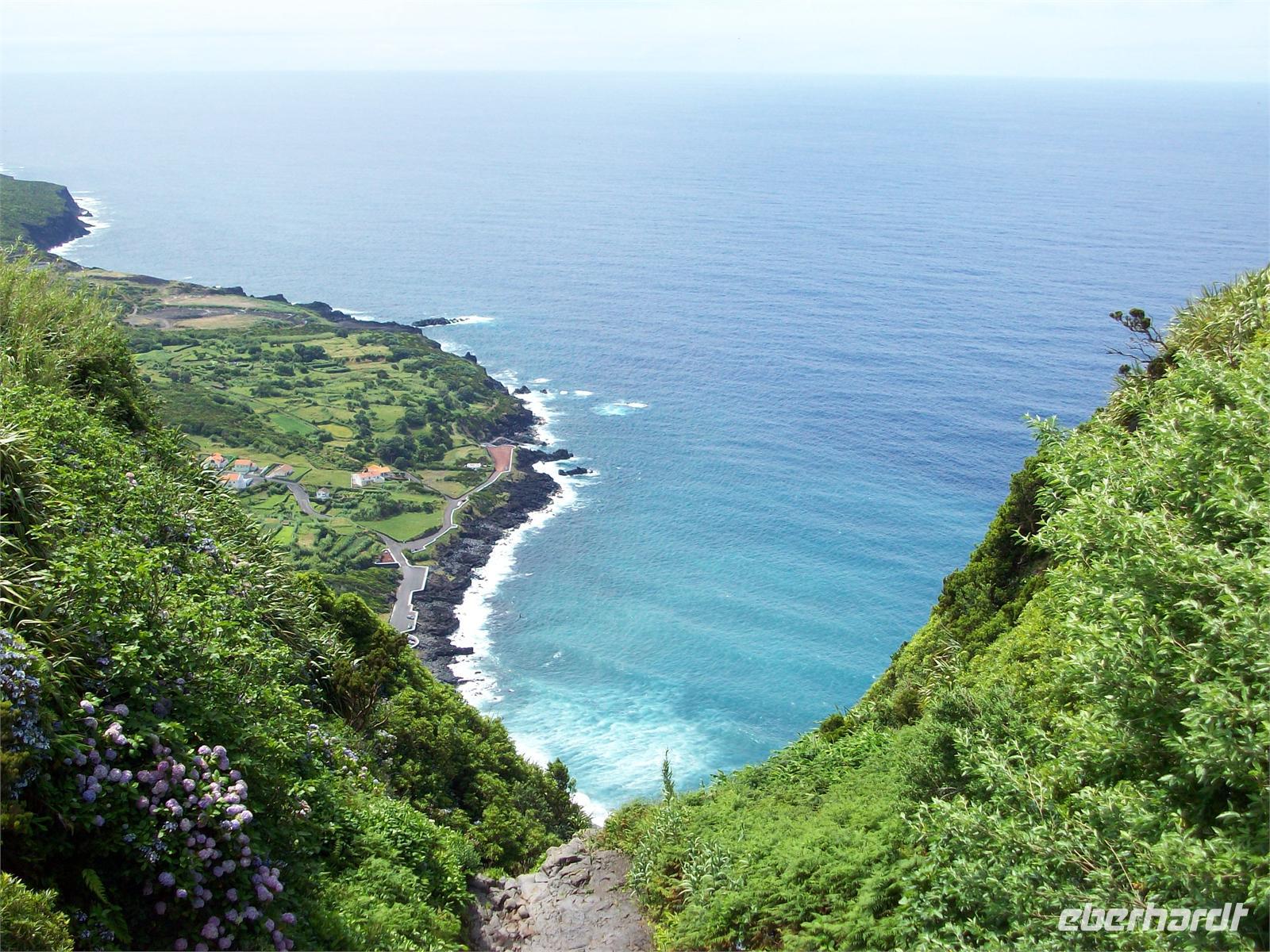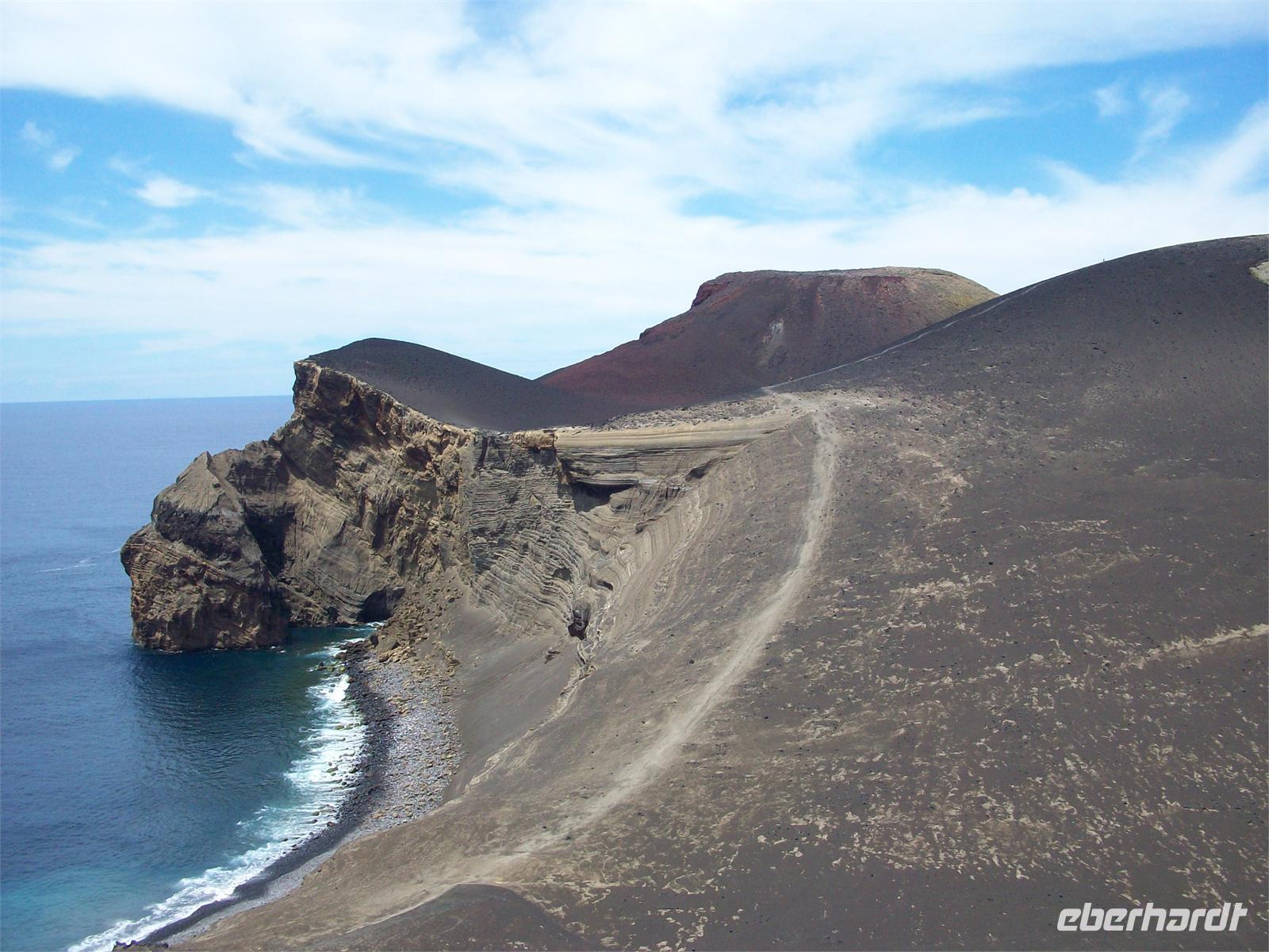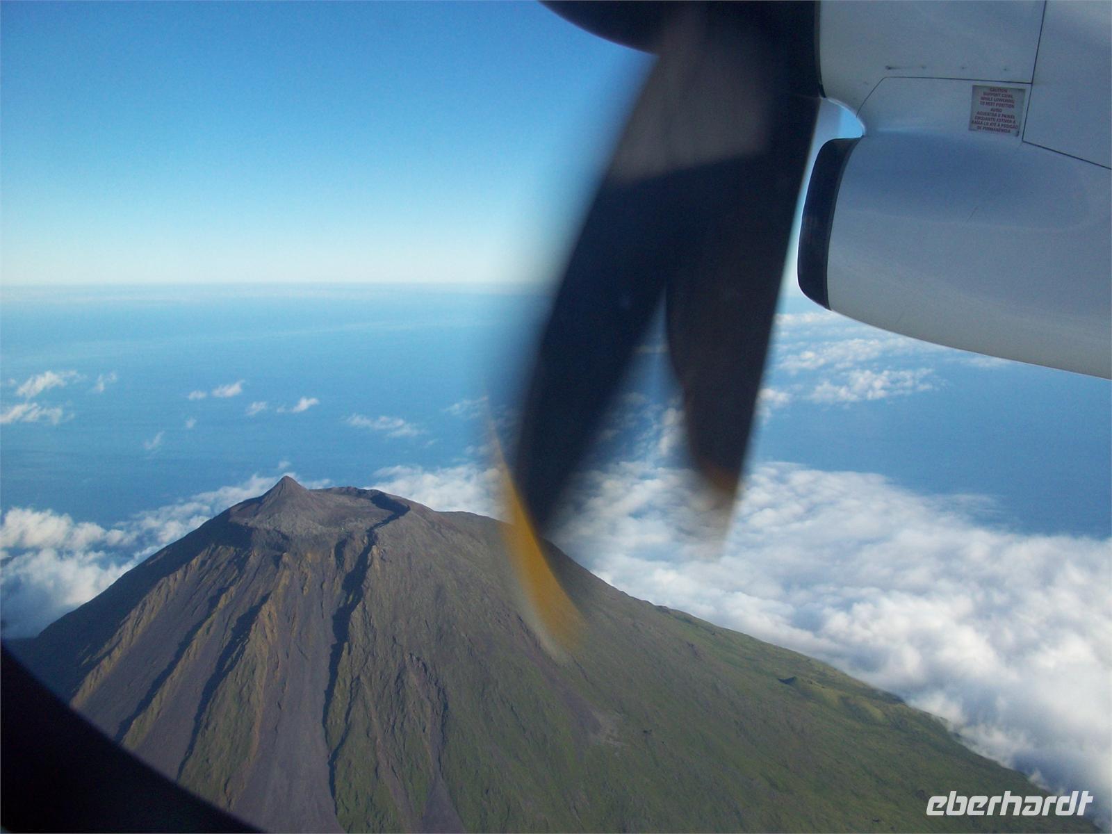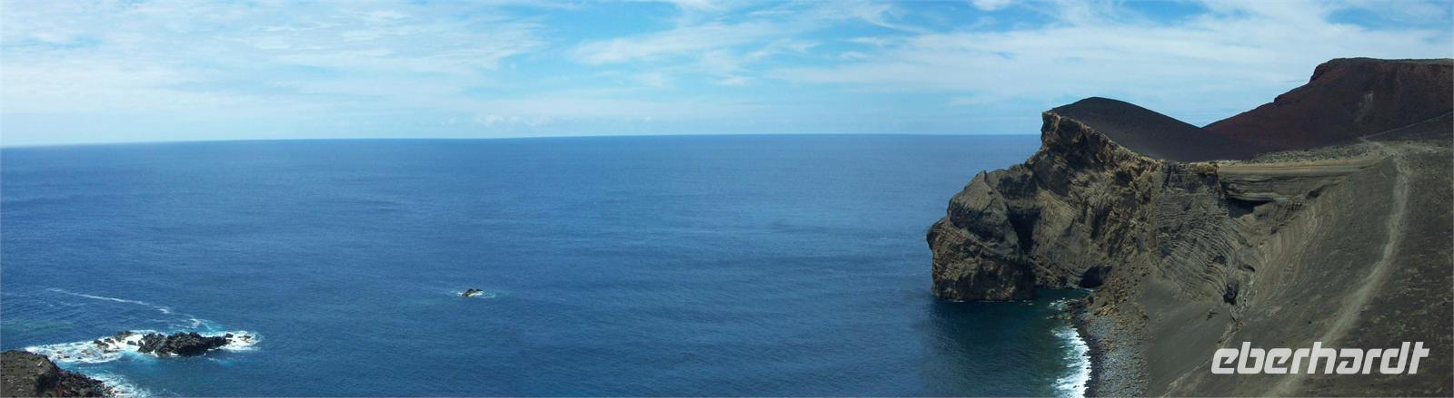 kurzen aber kräftigen Frühstück von unserem Transferfahrzeug vom Hotel abgeholt und zum Flughafen transferiert. Pünktlich um 10.00 Uhr hebt die kleine Maschine ab und wir fliegen bei hervorragendem Wetter und wunderbarer Sicht vorbei am Berg Pico und landen auf der kleinen, aber feinen Insel Faial. Gleich nach dem auschecken empfängt uns unsere örtliche Reiseleiterin Manuela. Unser erstes Ziel ist natürlich das Hotel. Hier entlasten wir uns von allen unnötigen Dingen und um 12.00 Uhr startet unsere Inselrundfahrt auf Faial. Das erste Ziel unserer Inselumrundung ist die Ponta dos Capelinhos. Eine Mondlandschaft am Rande der grünen "Blauen Insel". Wir besichtigen die Ausstellung und den ehemaligen Leuchtturm. Dieser funktioniert als solcher heute nicht mehr, da er mittlerweile nicht mehr an der Küste steht sondern mitten im Land. Grund hierfür ist der im Jahr 1957 ausgebrochene Vulkan vor der Westküste Faial's und der damit verbunden Landneugewinnung. Nach den Erkundungen dieser einmaligen Landschaft führt uns unsere Reise entlang der Küste in Richtung Norden.