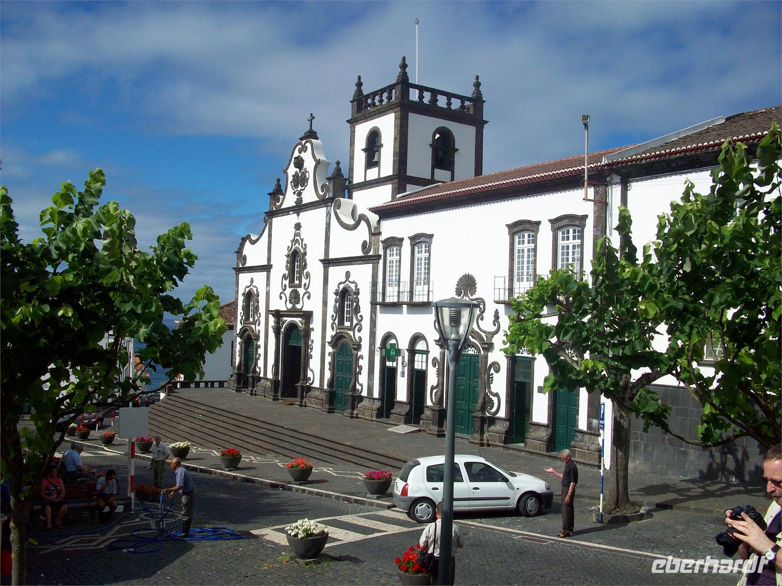 gefahren. Hier gab es mitten im Wald eine Schwefelfördernde Quelle und etwas weiter einen Wasserfall bei dem man baden kann. Also ab, hinein ins kühle Nass! Erfrischt ging es auf zu den nächsten Erkundungen. Kaum angekommen in der Stadt Riberia Grand, passierte es. Uns überkam der Hunger, also legten wir einen Stopp in einem Lokal am Meer ein und stärkten uns für die nächsten Überraschungen. Mit neuem Elan ging es kreuz und quer durch die Innenstadt. Wir besuchten Kirchen, das Rathaus, verschiedene Museen und lernten so das Leben der Azoreaner von Früher und Heute kennen. Zum Abschluss der Stadtbesichtigung gab es eine kleine Kostprobe eines leckeren Likörs! Mhh, so könnte das immer sein!!! Auf dem Weg zurück ins Hotel machten wir noch einen kleinen Abstecher zum Strand im Süden der Insel, denn wir nutzen alle Bademöglichkeiten! Geschafft und glücklich kommen wir im Hotel an und machen uns noch einen gemütlichen Abend.