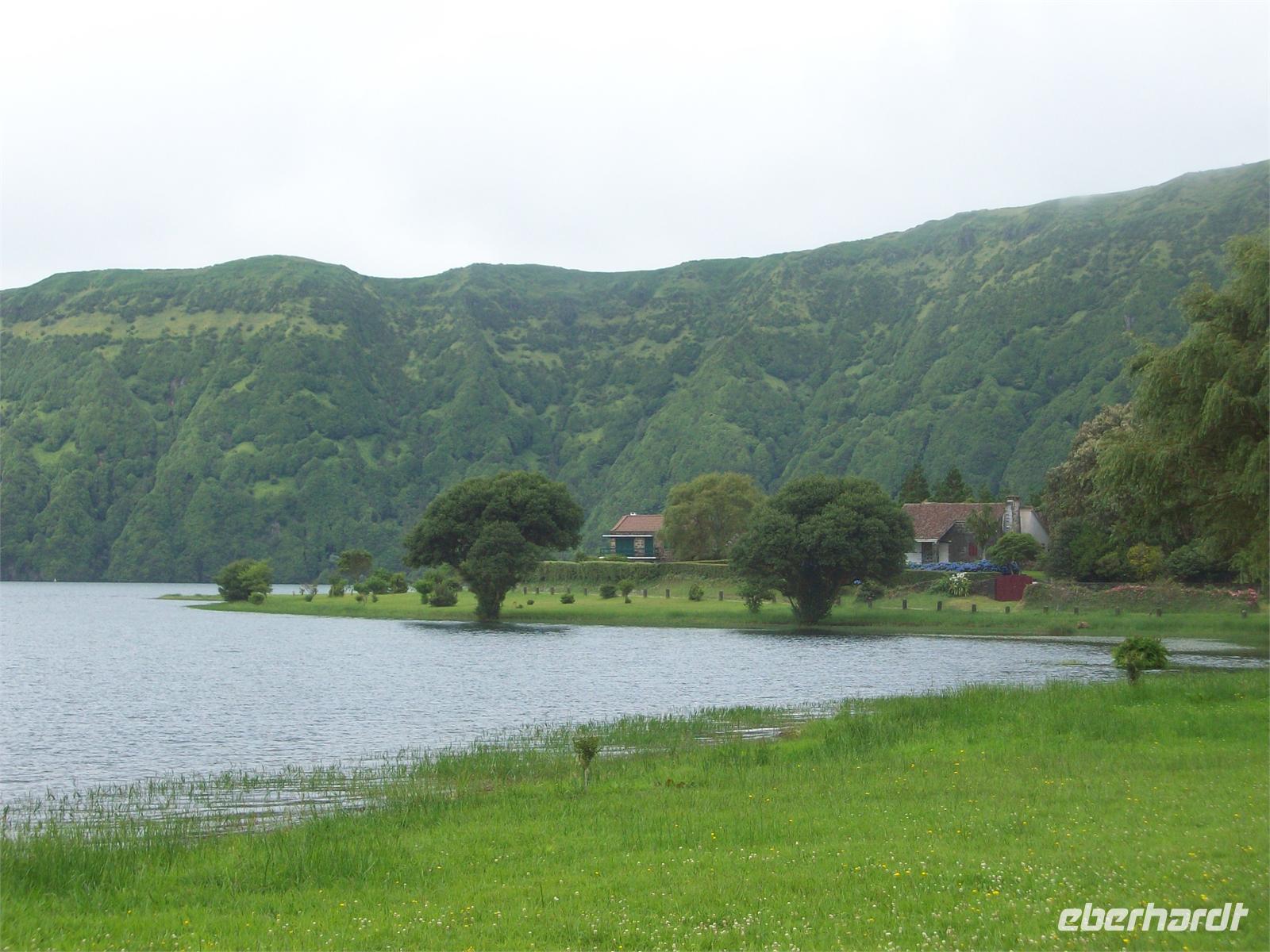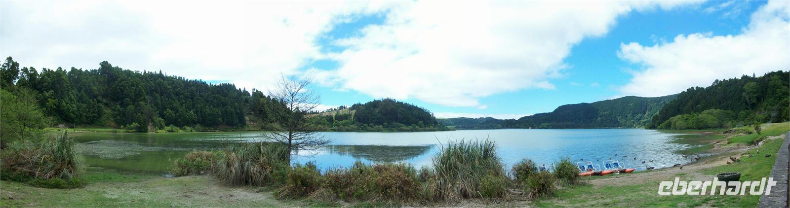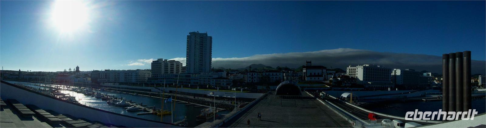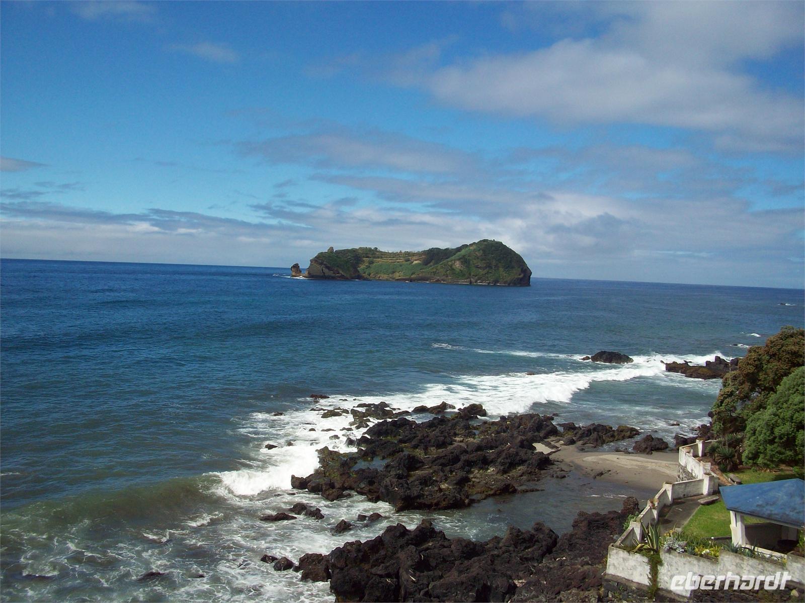 Gestärkt nach einem leckeren, gemütlichen Frühstück treten wir unsere erste Erkundungstour im Osten der Azoren Insel Sao Miguel an. Wir lernen die Schönheit der Natur, die Einmaligkeit der Architektur sowie Kultur kennen und natürlich auch die Zickigkeit des Wetters. ;) Mal sonnig, mal wolkig - warum kann es sich nur nicht entscheiden! Wussten Sie, dass das Azoren-Hoch gar nicht von den Azoren kommt? Nein, na dann. Also, das Azoren-Hoch entsteht irgendwo mitten im Atlantik, da es aber irgendeinen Namen brauchte und zufällig die Azoren in nächster Nähe waren, hat es seinen Namen bekommen. Tja, Zufälle gibt's! Aber wir hatten Glück und so hat uns nur zum Ende des Tages die Sonne verlassen. Ein wichtiger Programmpunkt des heutigen Tages war der Ort Villa Franca do Campo. Bei einem Stadtrundgang konnten wir die Kirche, den Hafen und die vorgelagerte Insel kennen lernen. Im Anschluss ging unsere Reise weiter nach Furnas. Hier hatten wir die Möglichkeit in einem 38°C warmen Schwimmbecken zu planschen. Aber Vorsicht: Schwitzgefahr! Gleich danach ging es zum Lagoa das Furnas. Hier bei den Caldeiras - Dampfquellen - haben wir zugesehen, wie unser Mittagessen aus der Erde gegraben wurde. Denn heute gab es eine Azoren-Spezialität: Cozido das Caldeiras, ein