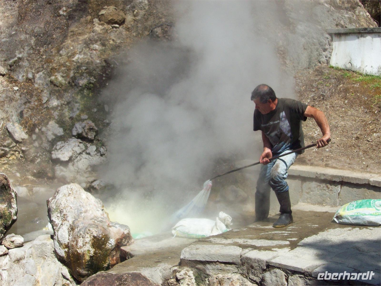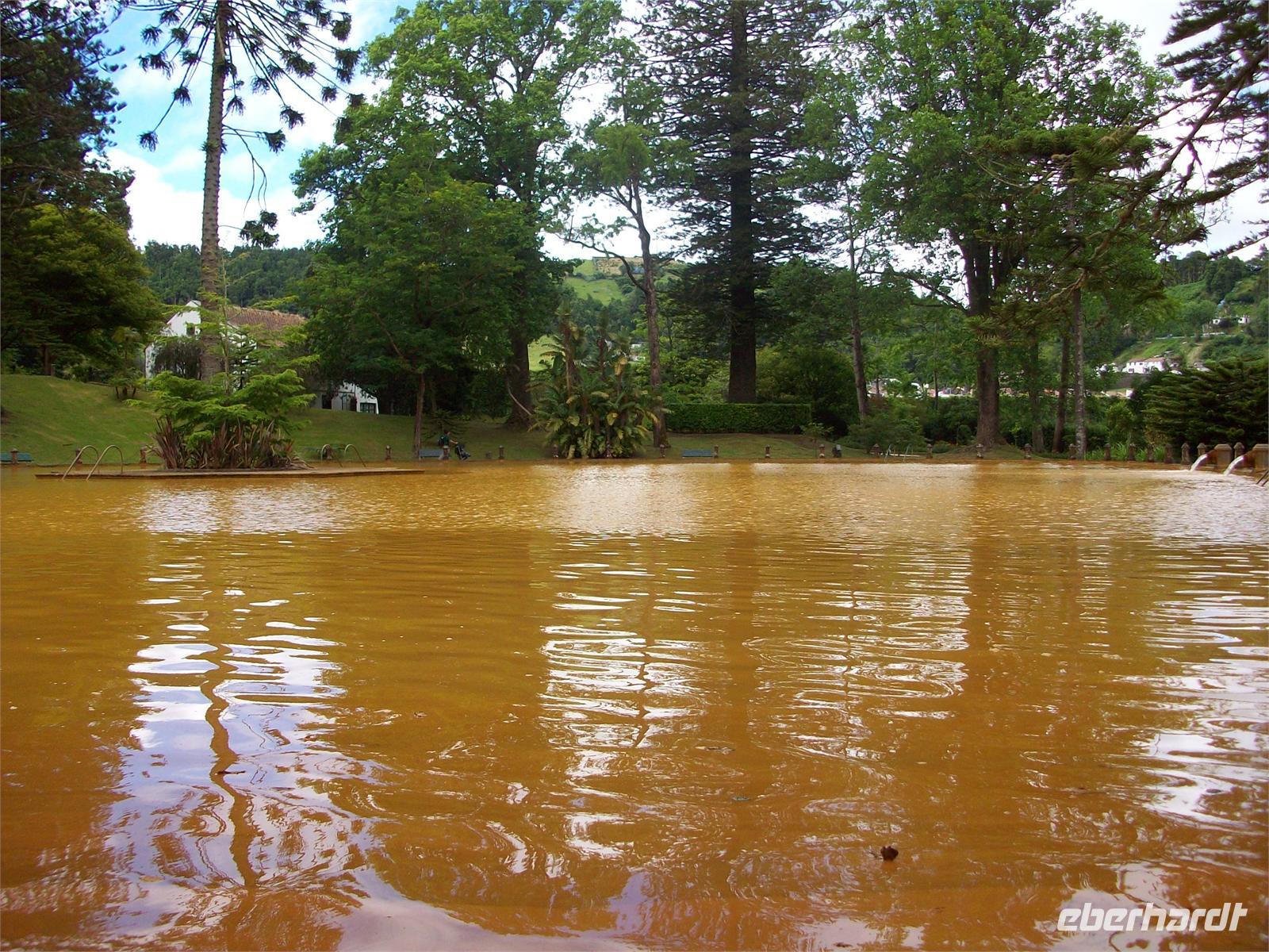 Gericht bestehend aus verschiedenen Sorten Fleisch und Gemüse welches 6 Stunden in den heißen vulkanischen Quellen gart. Also sind wir dann gleich zum Hotel Terra Nostra Garden geeilt und haben unser leckeres (Geschmackssache ) Essen verspeist. Nach einem so reichhaltigen Essen haben wir uns einen Verdauungs-Spaziergang durch den Park Terra Nostra gegönnt. Der Wahnsinn, so etwas Schönes habe ich schon lange nicht mehr gesehen! Mal kam man sich vor wie in einem Englischen Garten, dann wie in einem Urwald und dann wie in heimischen Gefilden. Diese Abwechslung und die