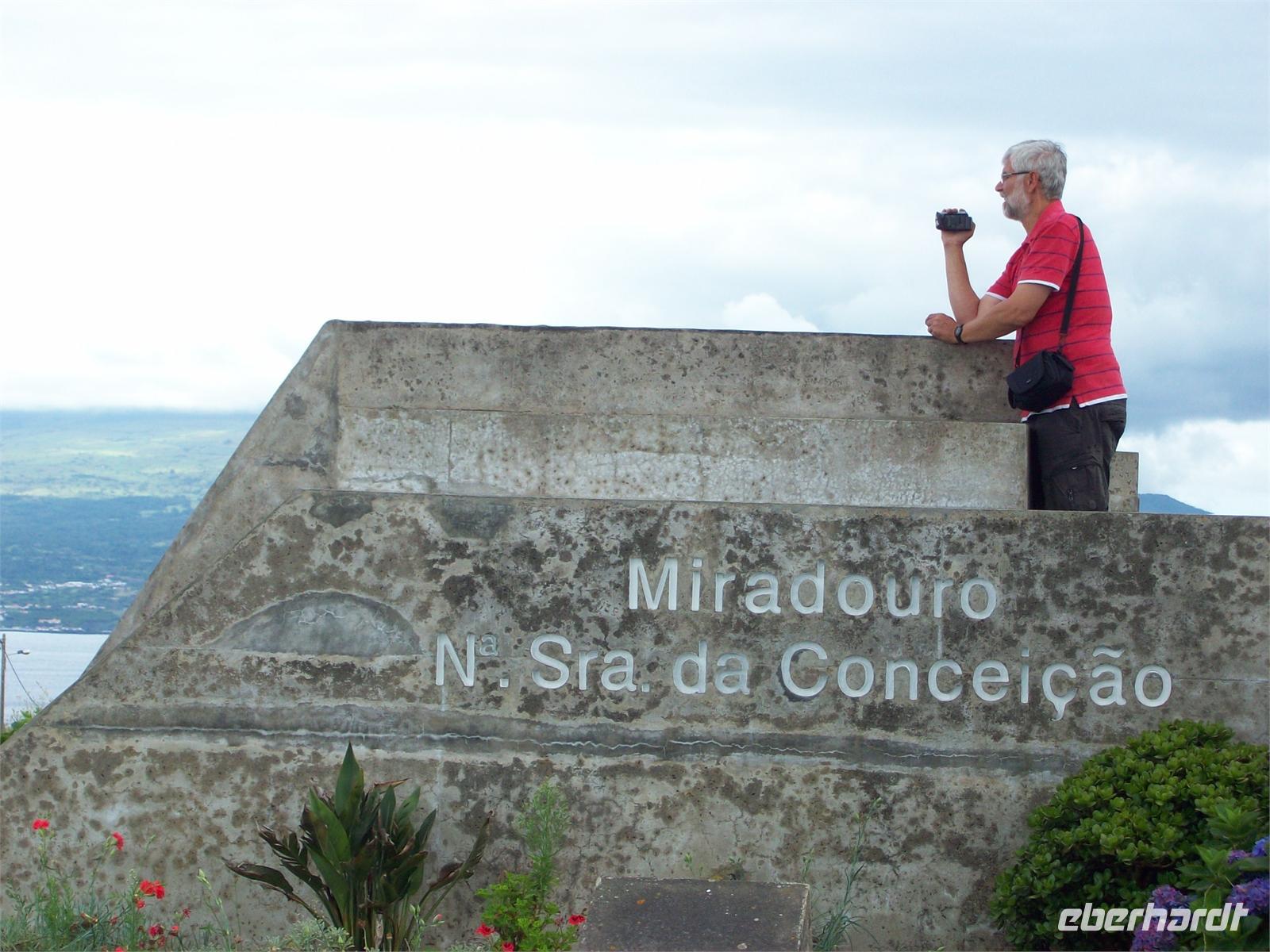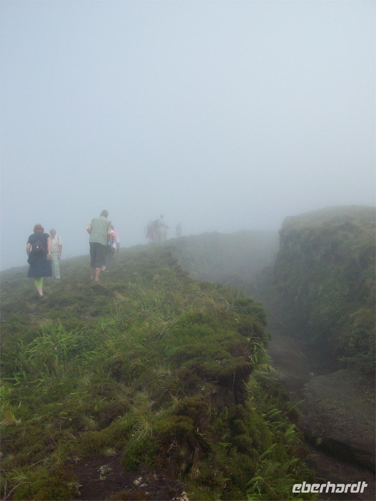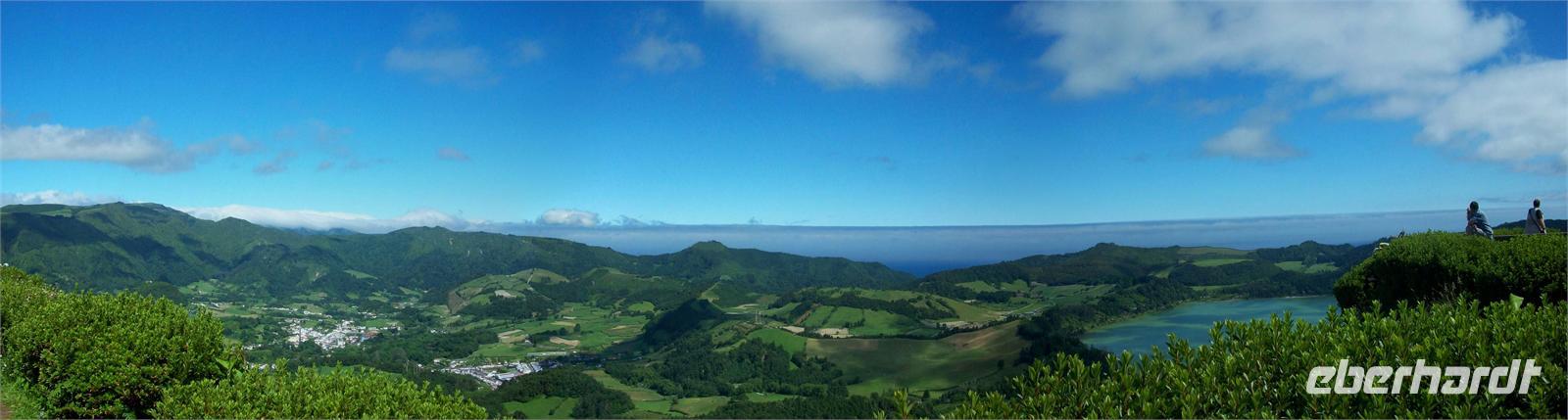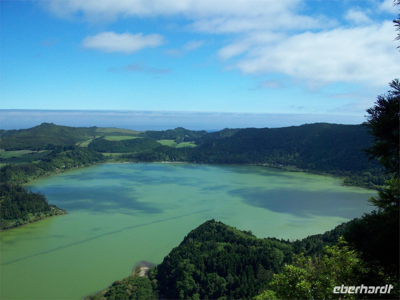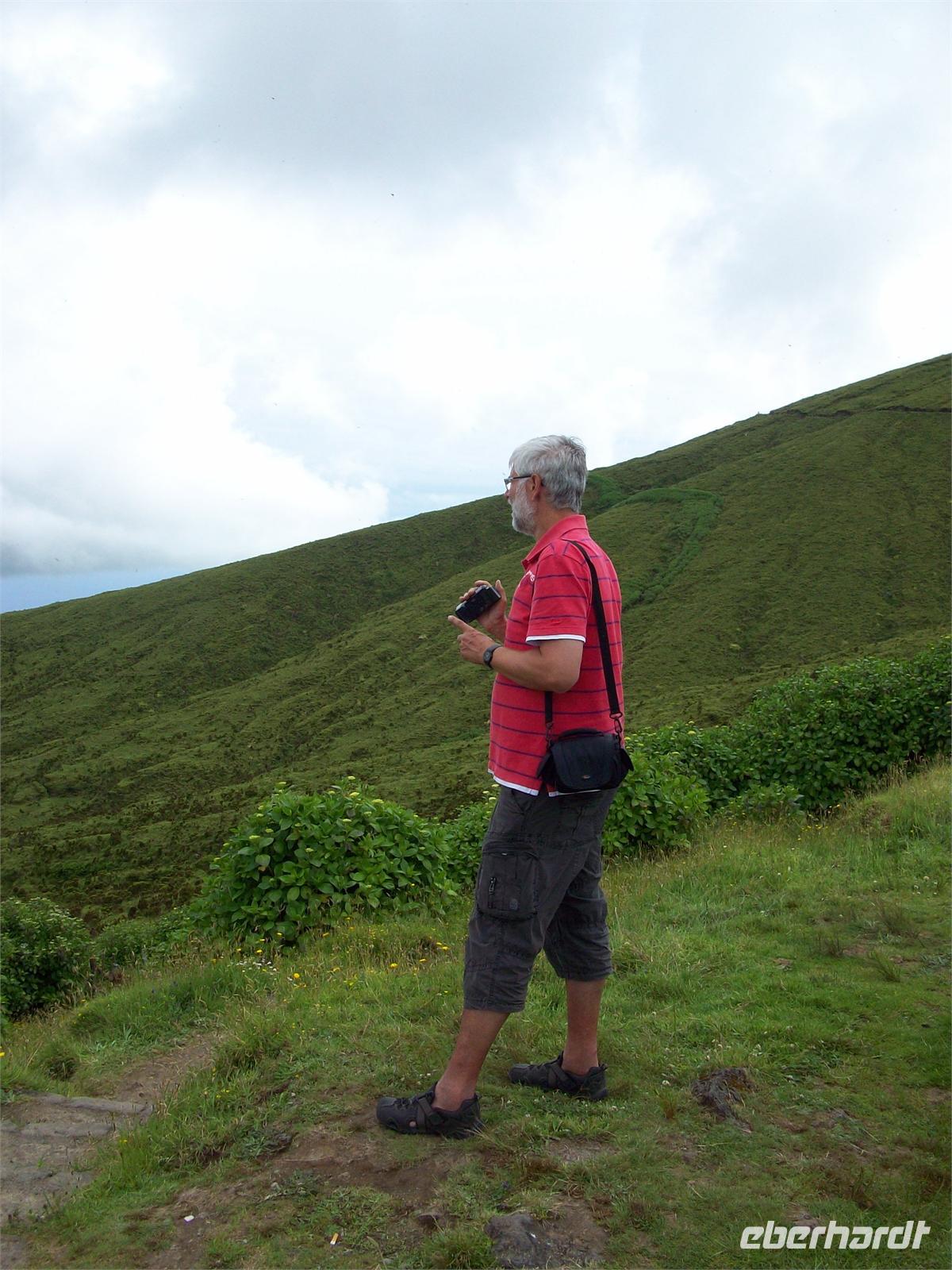 anderes, sehr bedeutendes Handwerk der Azoreaner kennen lernen. Hier zu Stand ein Besuch der Keramikfabrik "Ceramica Vieira" in Lagoa auf dem Plan. Birgit, unsere örtliche Reiseleiterin, brachte uns diese Handwerkskunst mit all ihren Arbeitsschritt ein wenig Näher. Im Anschluss daran ging es hinauf in die Berge oder besser gesagt mal wieder auf einen Kraterrand. Die Fahrt hinauf war schon absolut atemberaubend, denn nach jeder Kurve (es gab sehr viele) hatte man eine neue wunderschöne Aussicht und noch etwas ganz besonderes gab es heute: die Wolken waren unterhalb von uns. Wir hatten einen grandiosen Blick auf den Lagoa do Fogo und konnten sogar die Bergspitze des höchsten Berges von Sao Miguel bewundern, aber alles was weiter unten gelegen war, war nicht zu erkennen, da die Wolken uns die Sicht versperrten. Einfach umwerfend schön! Nach diesem Erlebnis sind wir weiter zur Caldera Velha