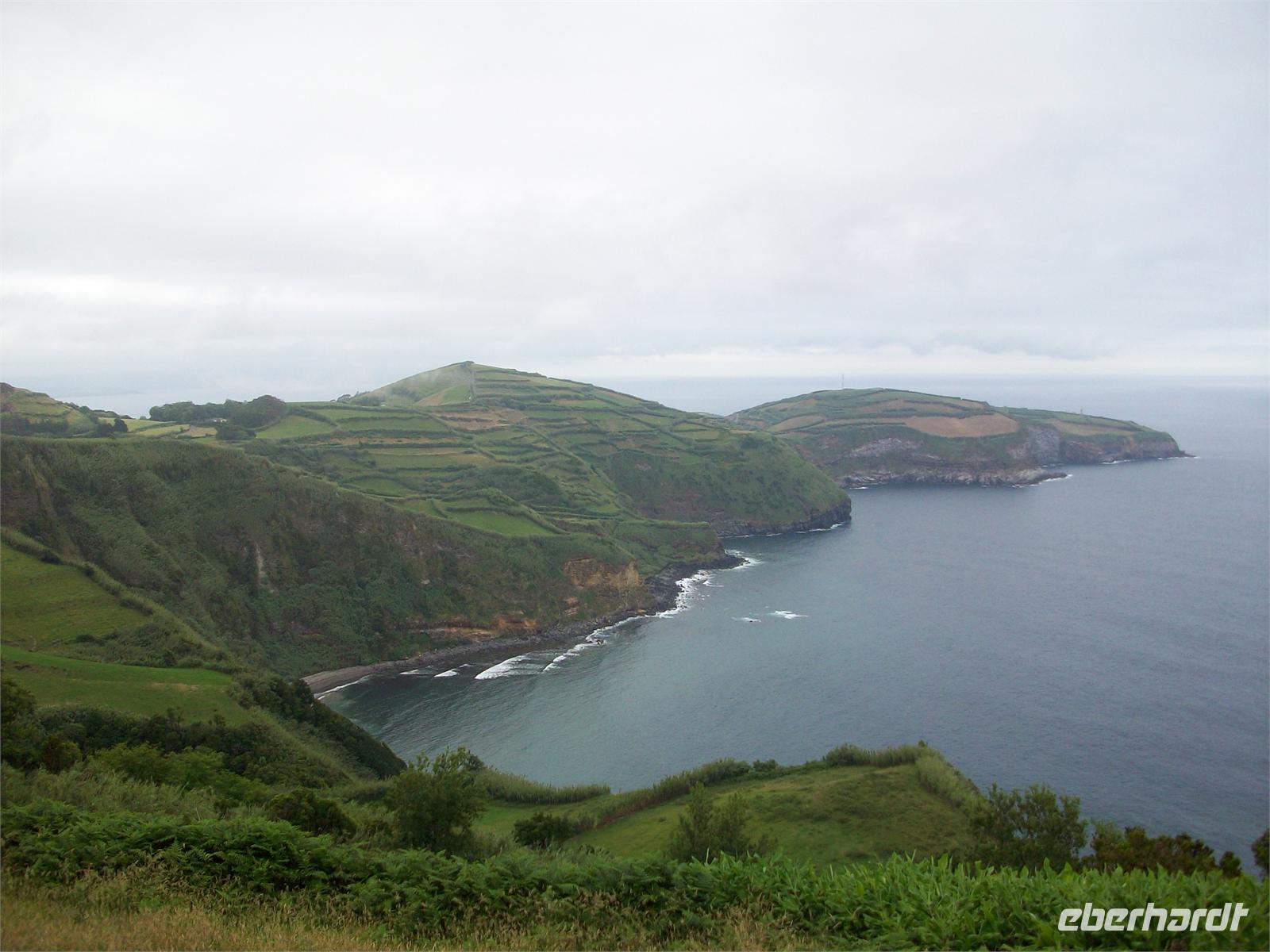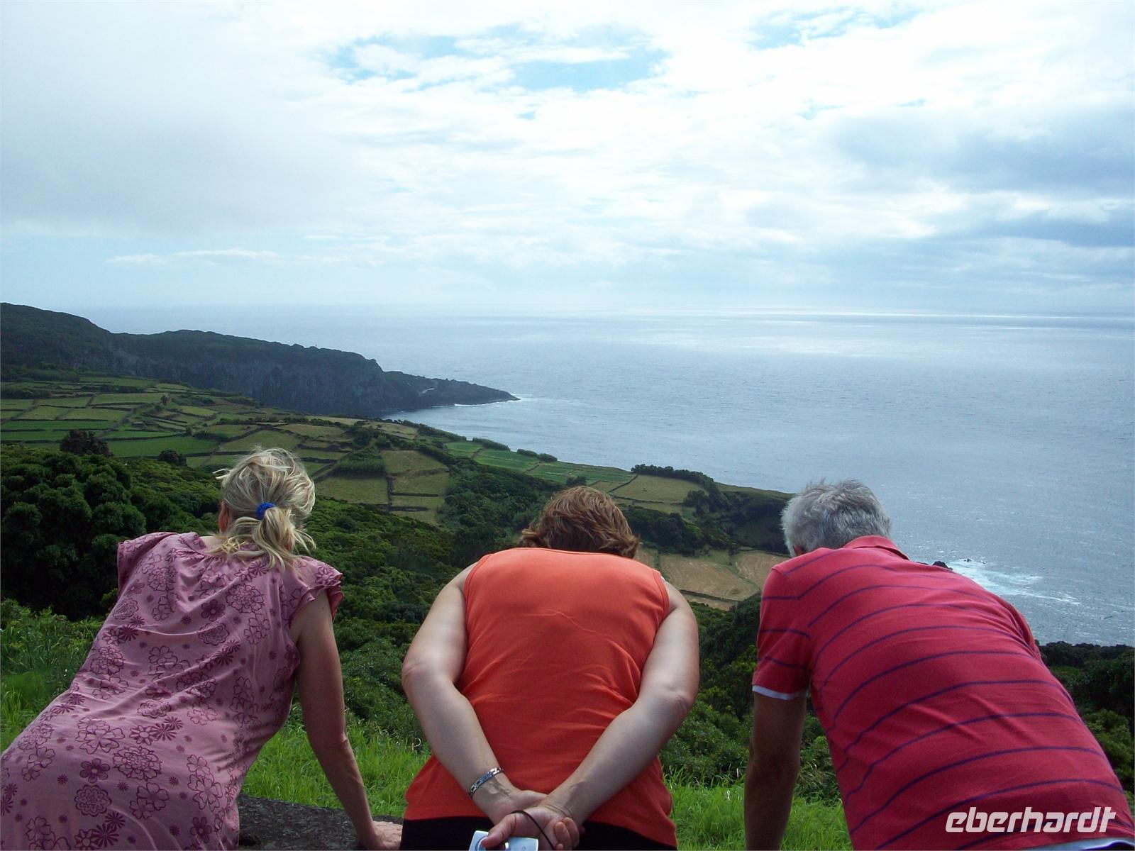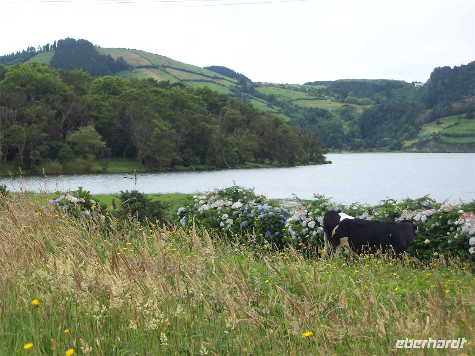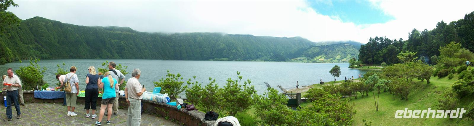Was für ein Naturschauspiel! Nach diesen bisherigen Erlebnissen benötigten wir dringend eine Stärkung. An einem wunderbaren Picknickplatz, gelegen am Lagoa Azul, verköstigten wir gegrillte Wurst, azorischen Käse, Melone und noch einige andere Spezialitäten der Azoren. So lässt es sich leben! Zur Verdauung, nach einem solchen Festmahl, haben wir uns auf eine Erkundungstour rund um den See begeben und wieder mal die Schönheit der Natur bestaunt und glückliche Kühe beim grasen beobachtet oder gestört, das weiß man nicht so genau. Nach diesem Spaziergang machten wir uns auf den Weg zurück ins Hotel. Aber vorher besuchten wir noch den Aussichtpunkt Escalvado. Hier hat man einen wunderbaren Blick auf den westlichsten Punkt von Sao Miguel. Aber dann mussten wir ganz schnell ins Hotel, denn es ist doch Halbfinale, Deutschland gegen Spanien! Da sind wir mal gespannt!