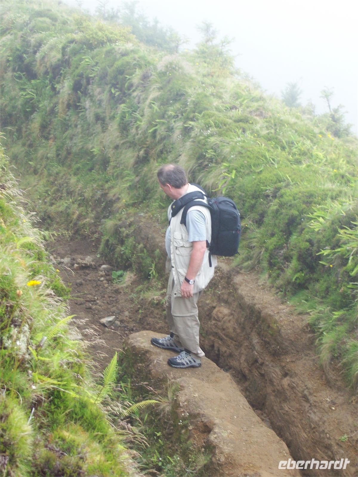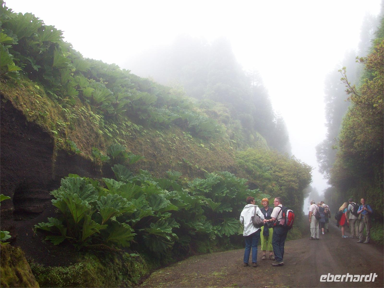 mir bei einer kleinen Wanderung die Insel unsicher zu machen. Die meisten meiner Gäste schlossen sich mir an und so holte uns unsere Reiseleiterin pünktlich um 09.00 Uhr am Hotel ab. Aber bevor wir mit den sportlichen Aktivitäten starten sehen wir erstmal wo die leckeren Ananas herkommen. Hierfür besuchen wir eine Ananasplantage und bekommen die unterschiedlichen Stationen des Wachstums erklärt und auch zu sehen. Schon genial! Wussten Sie, dass eine Ananas über 1 Jahre benötigt bis sie reif ist?! Nach dem wir wieder mal viel gelernt haben, heißt es: Ich wandre ja so gerne...". Es geht Bergauf, Bergab, entlang eines Bergkammes, schmale und breite Wege, vorbei an vielen Seen und das alles begleitet von dichtem Nebel. Tja eigentlich sollten wir viele tolle Kraterseen sehen, nur leider hat uns der Nebel einen Strich durch die Rechnung gemacht. Aber das hat die ganze Wanderung nicht weniger schön gemacht. Die atemberaubende Schönheit der Natur und vor allem der Blumen im Nebel ist einmalig! Im Anschluss an diese erlebnisreiche Wanderung folgte ein weiteres Highlight der Azoren, der "Königsblick", ein Aussichtpunkt auf die Lagoa Verde und Azul. Dies sind zwei Seen nebeneinander und bei Sonnenschein schimmern die Seen in unterschiedlichen Farben, der eine Blau der andere Grün.