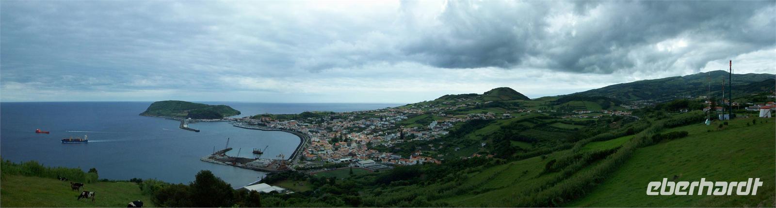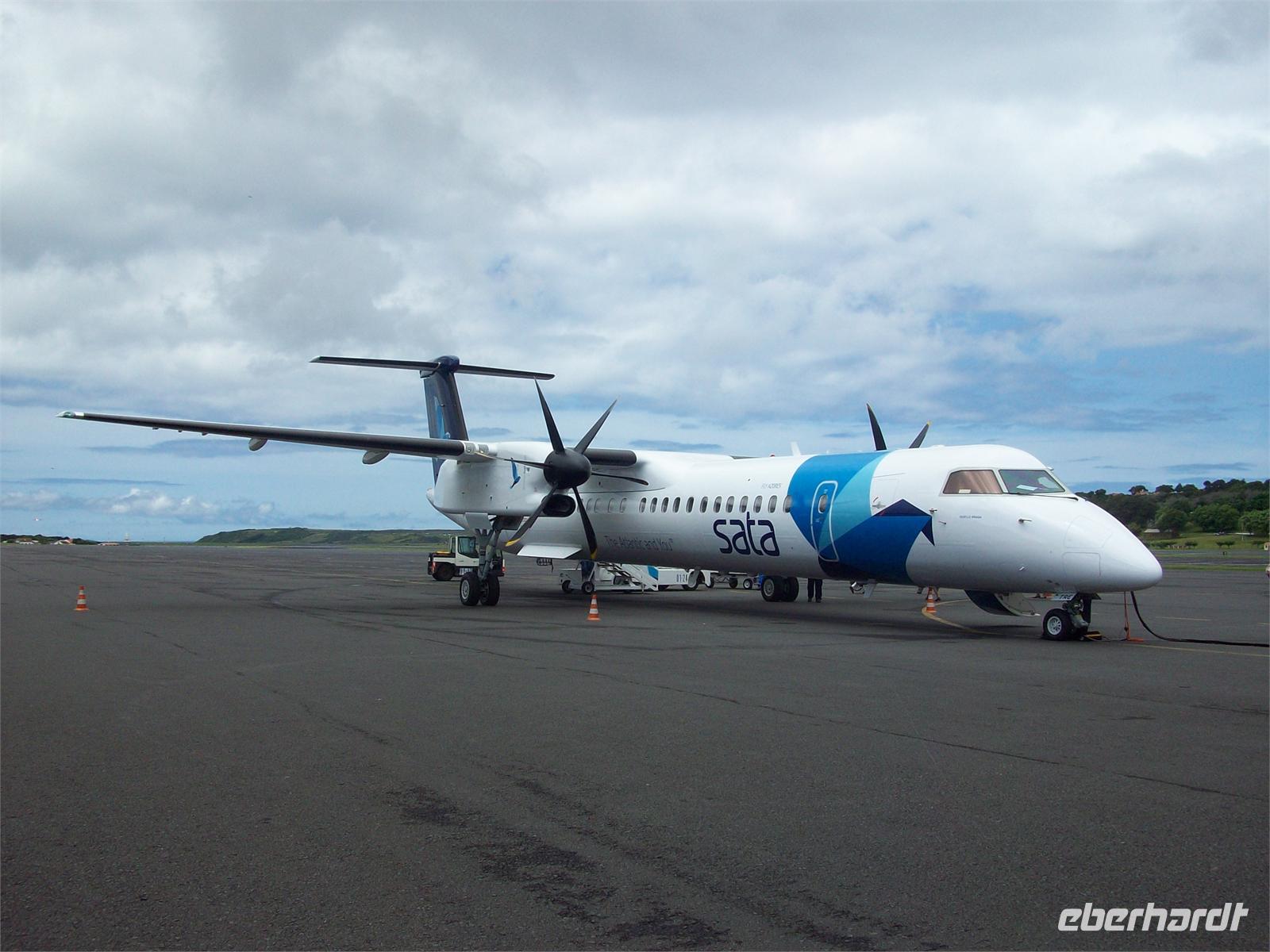 Halbfinal-Spiel begeben sich meine Gäste individuell auf Erkundungstour in Porto Delgada, denn der Vormittag steht zur freien Verfügung. Aber pünktlich kurz vor 12.00 Uhr treffen sich alle mit gepackten Koffern in der Hotel-Lobby, denn unser Transfer zum Flughafen ist da. Heute heißt es für ein paar Tage Abschied nehmen von der Azoren-Insel Sao Miguel. Während des kurzen Transfers erzählt uns Birgit noch schnell, was uns auf der nächsten Insel so erwartet. Jetzt heißt es aber bye, bye, Birgit! Aber beim Check-In ist sie noch behilflich. Dieser und auch die Sicherheitskontrolle verlaufen ohne Probleme und pünktlich kurz vor 14.00 Uhr startet unser sehr kleines Propeller-Flugzeug in Richtung Terceira. Keine 40 Minuten später sind wir schon auf festem Boden, auf Terceira. Hier erwartet uns nach der Gepäckausgabe schon unsere neue, örtliche Reiseleiterin Paula. Auf dem Weg zum