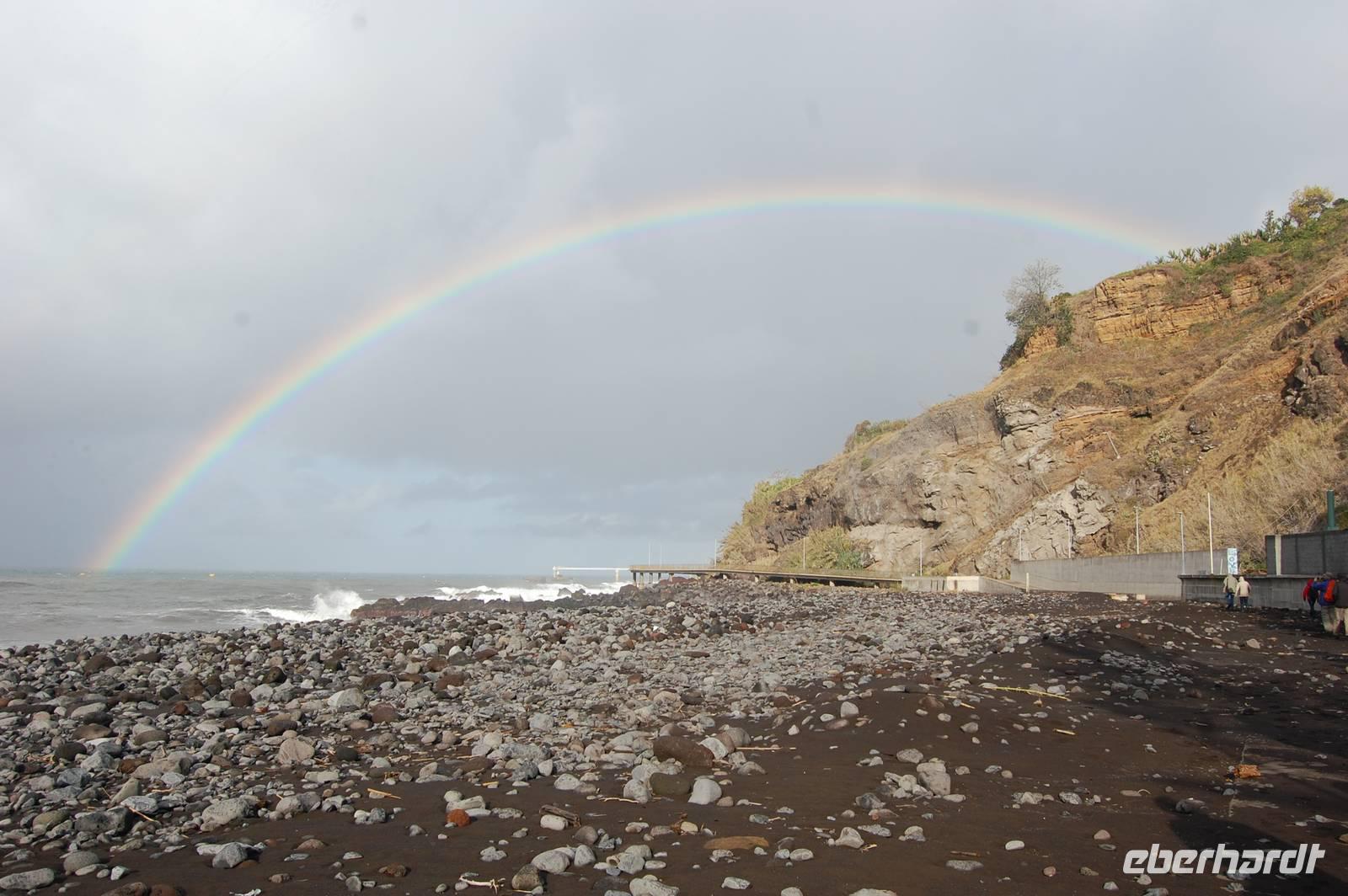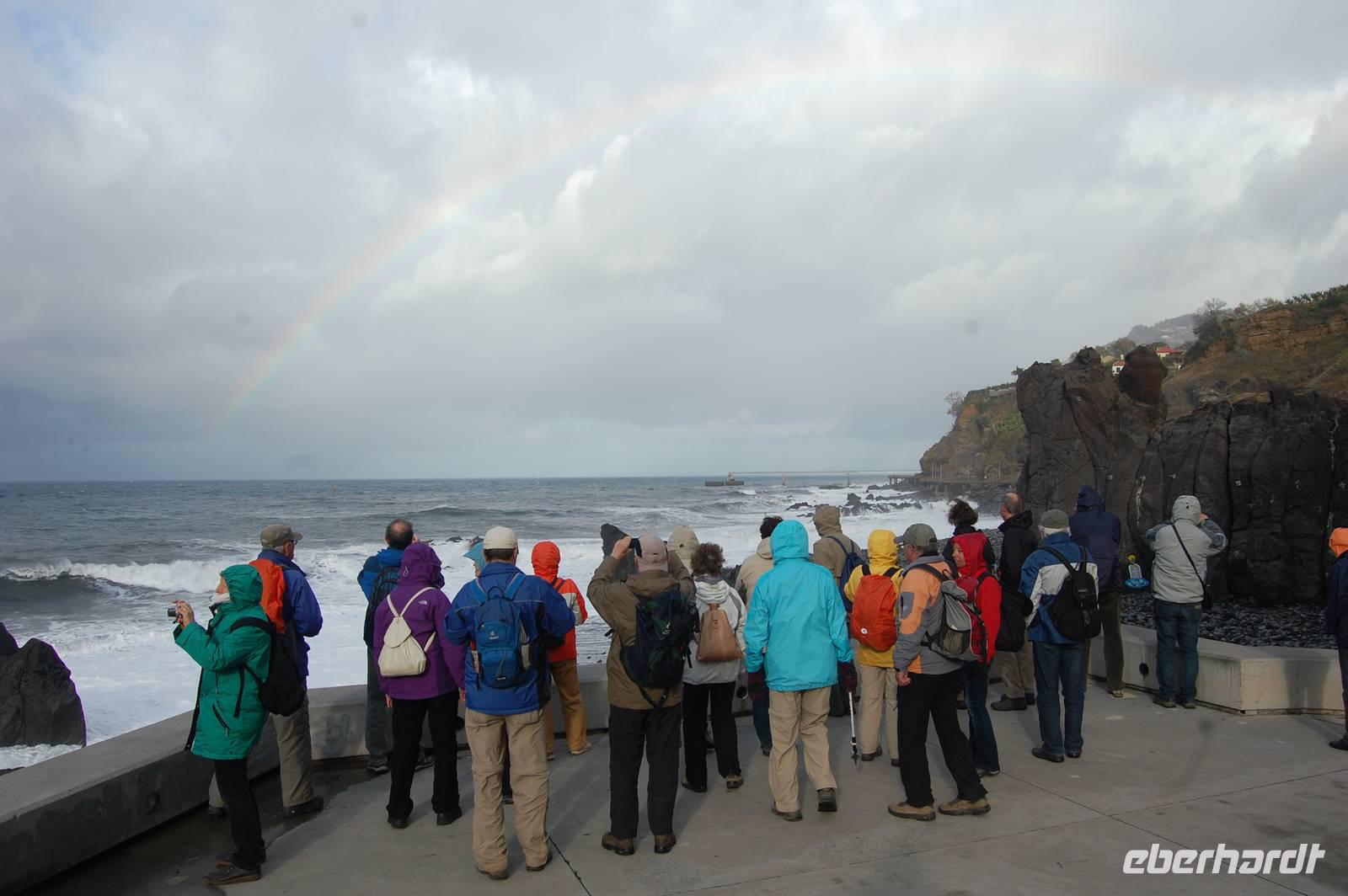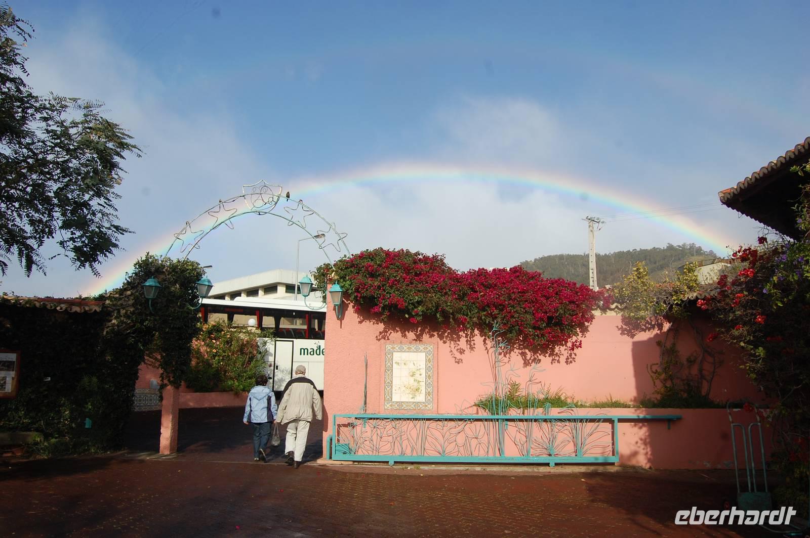 Am nächsten Morgen treffen wir uns an der Rezeption und werden von einem tollen Regenbogen und unserer Reiseleiterin Fatima begrüßt, die uns die gesamte Zeit betreuen wird. Sie spricht perfekt deutsch und kennt nicht nur Ihre Heimat Madeira, sondern auch jede Pflanze Ihrer Insel, da sie Botanik studiert hat.