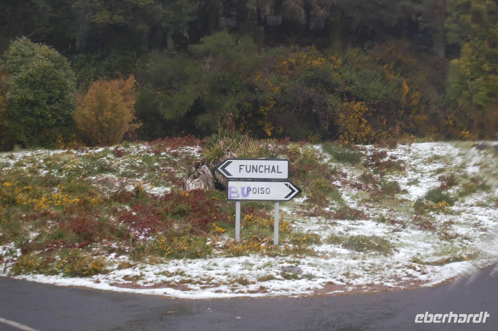 Um 09.00 Uhr starten wir mit unserem Reisebus nach Camacha, dem Zentrum der Korbflechter mit einer kleinen Manufaktur im Keller, einem Verkaufsraum und einem Café. Anschließend fahren wir weiter über einen Pass (ca. 1.400 m) und sehen Schnee, der über Nacht dort gefallen ist. Beim nächsten Stopp besuchen wir die Forellenzuchtanlage am „kalten Fluss" - Ribeiro Frio.