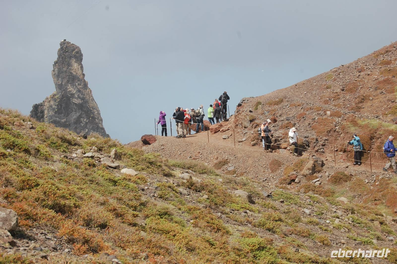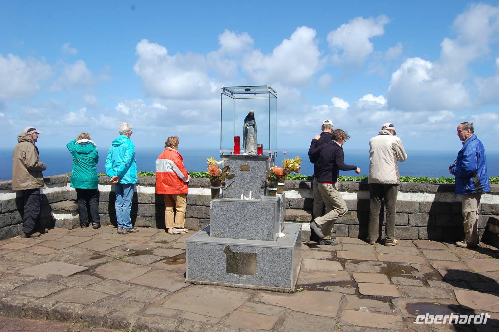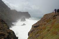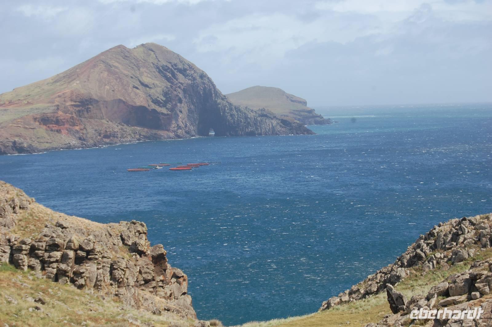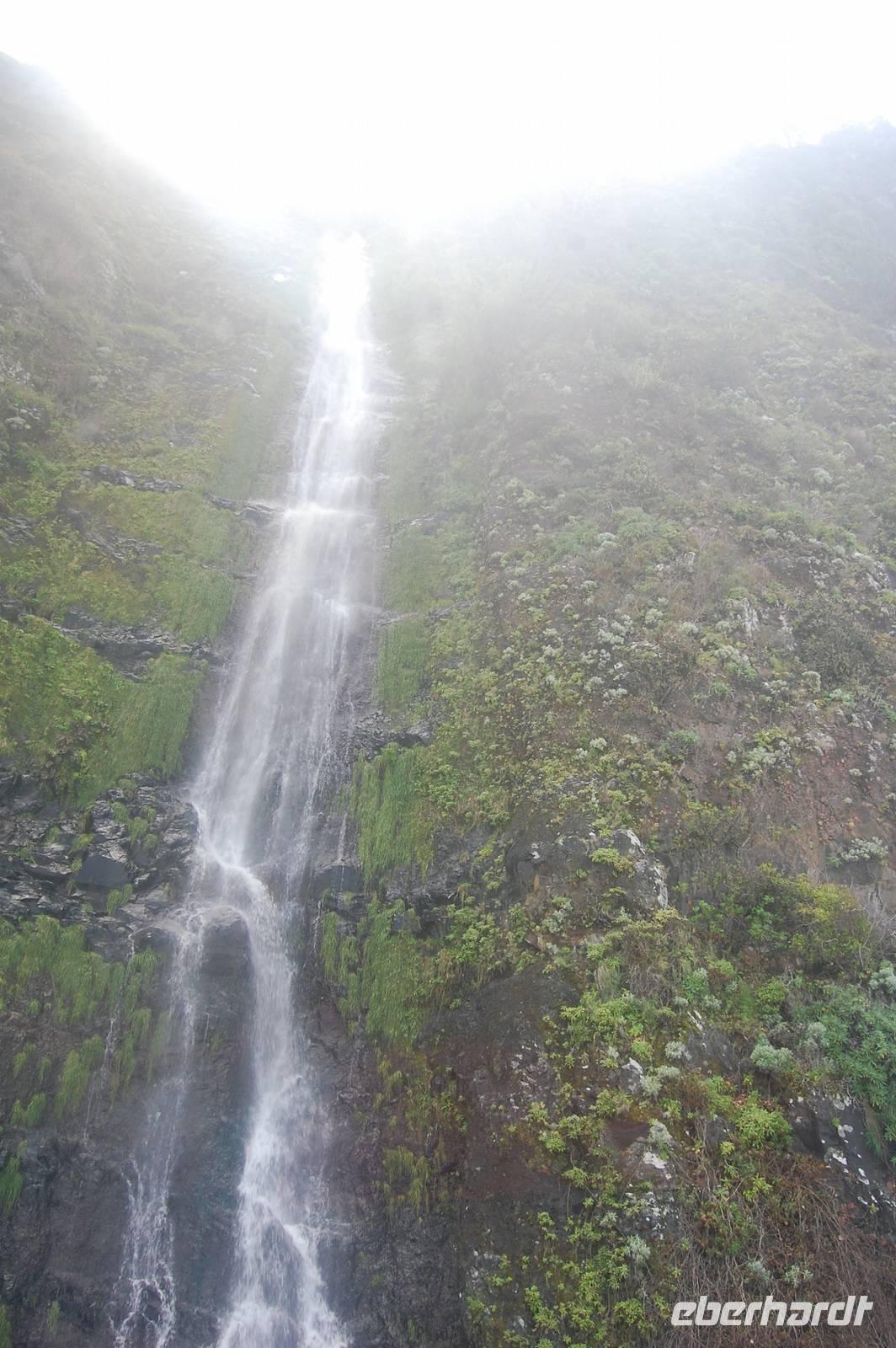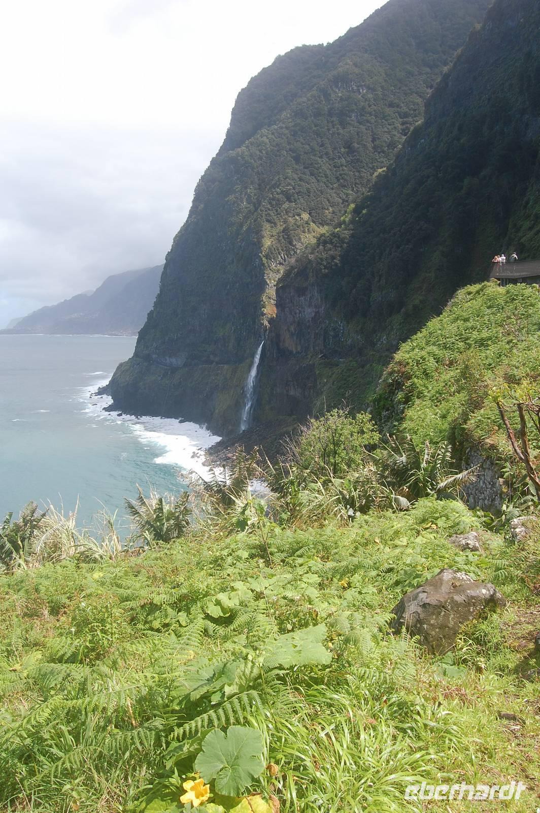 Weiter geht die Fahrt zu einem Aussichtspunkt an der Nordküste „Ponta de Rosto". Dort trotzen wir ein letztes Mal dem tobenden Sturm. In der Ferne sehen wir, dass die wütende See das Wasser so an die Klippen peitscht, dass es dort von unten nach oben regnet.