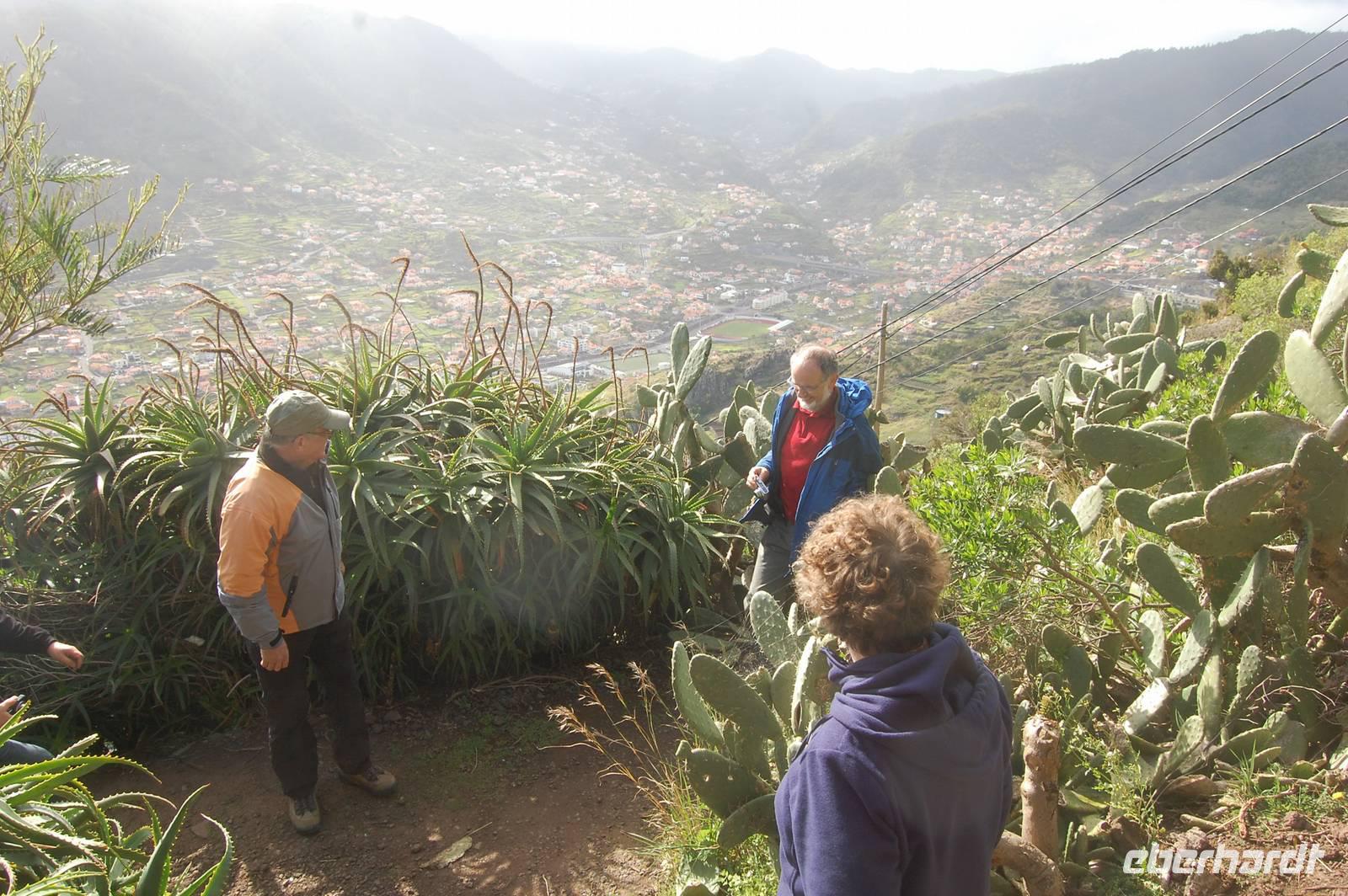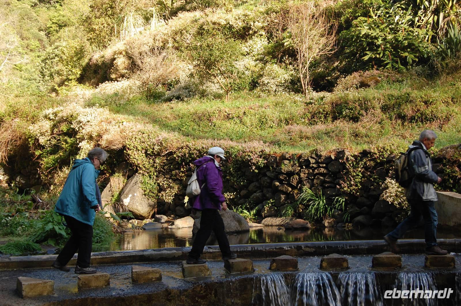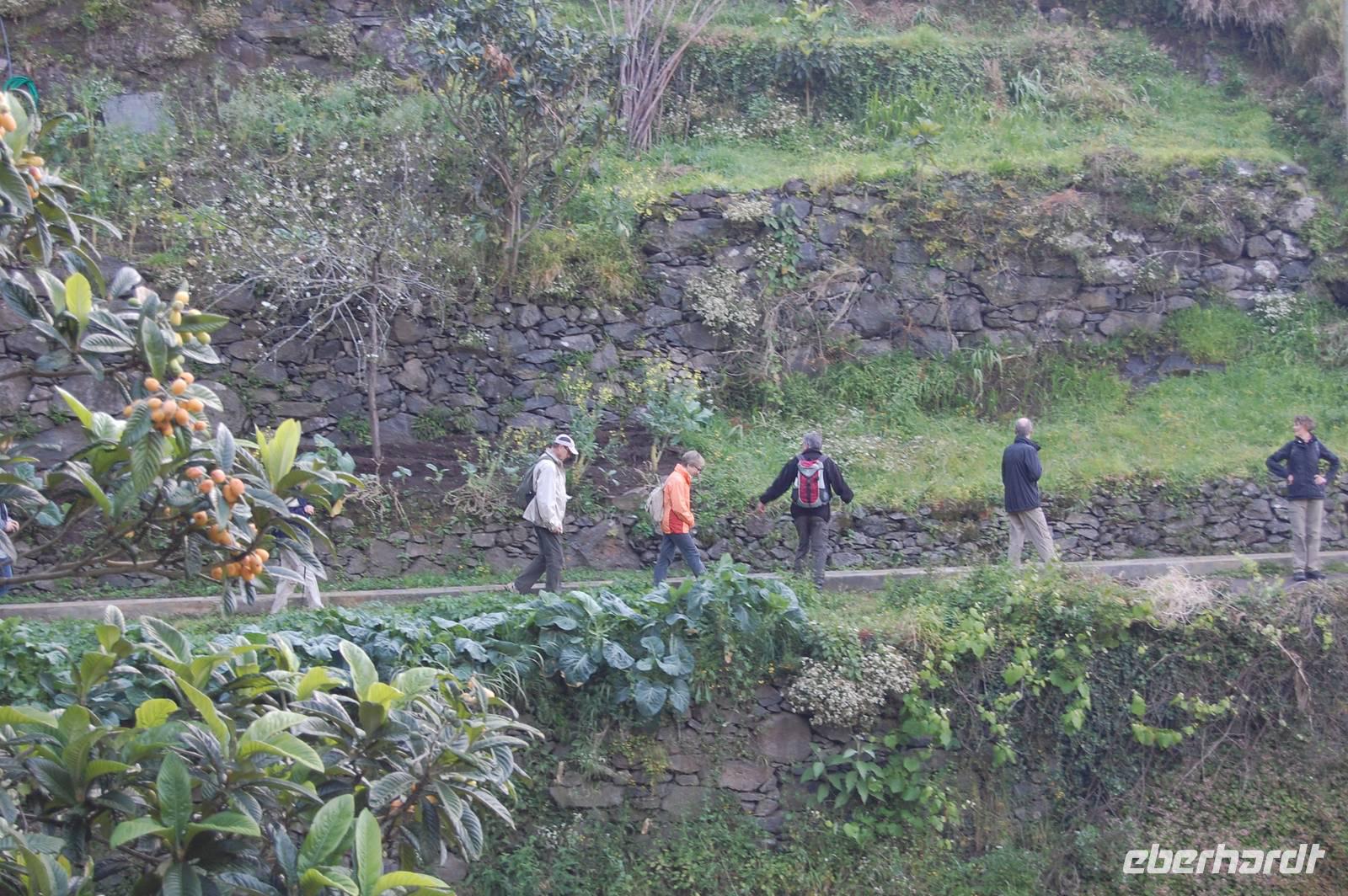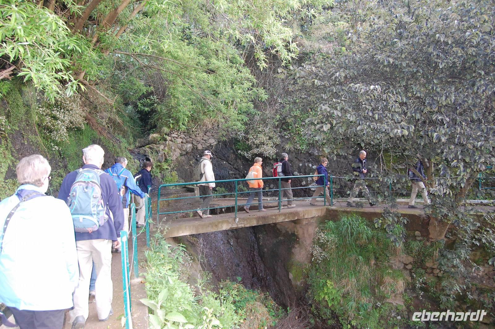 Wieder treffen wir uns alle nach dem Frühstück um 09.00 Uhr zur Abfahrt Richtung Osten, um in einem Tal bei Marocos an einem künstlichen Wasserlauf (Levada) zu starten. Um 09:30 Uhr geht es ohne Steigung immer entlang des kleinen Bewässerungskanals durch kleine Ortschaften. Im Gänsemarsch und in halber Höhe am Hang spazieren wir bei tollem Sonnenschein zwei Stunden. Fatima erläutert immer wieder die Pflanzenwelt. Die Luft wird erfüllt vom Duft der Blüten der unzähligen Mimosenbäume. Wir erhalten Einblicke in das schwierige Leben der Bergbevölkerung der Insel. Am Ende der heutigen Etappe genießen wir die Sonne und einen Kaffee im Außenbereich einer kleinen Bar. Um 12.30 Uhr steigen wir hinab ins Tal, wo der Bus im Ort bereits auf uns wartet. Nach einer kurzen Fahrt durch Machico, der ehemaligen Inselhauptstadt Madeiras, sind wir um 13.00 Uhr wieder im Hotel und genießen die Sonne am Pool oder im herrlichen Garten der Hotelanlage.
