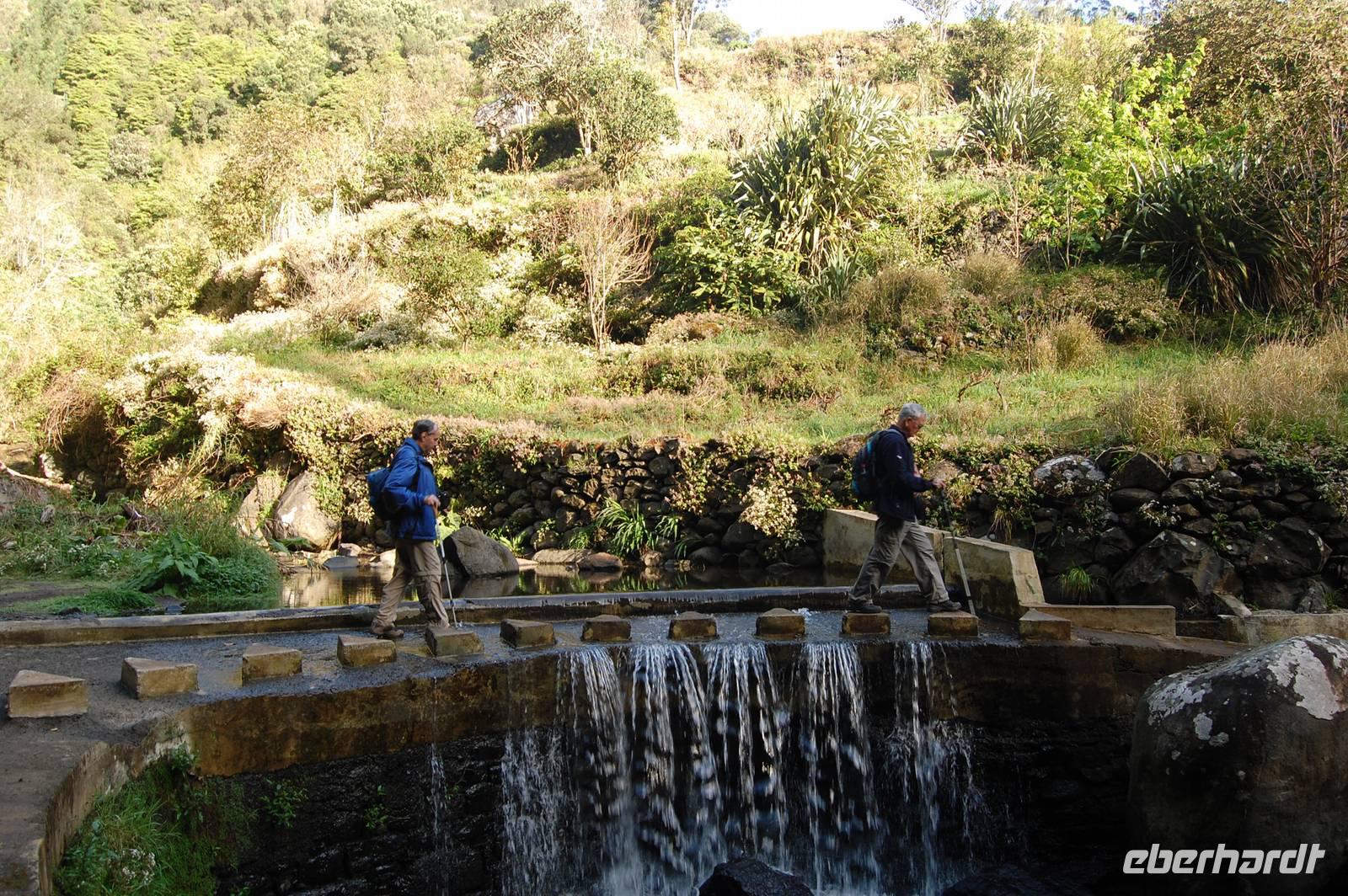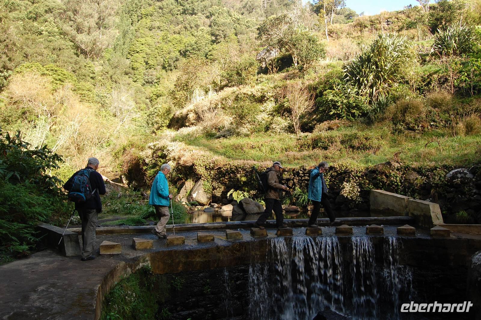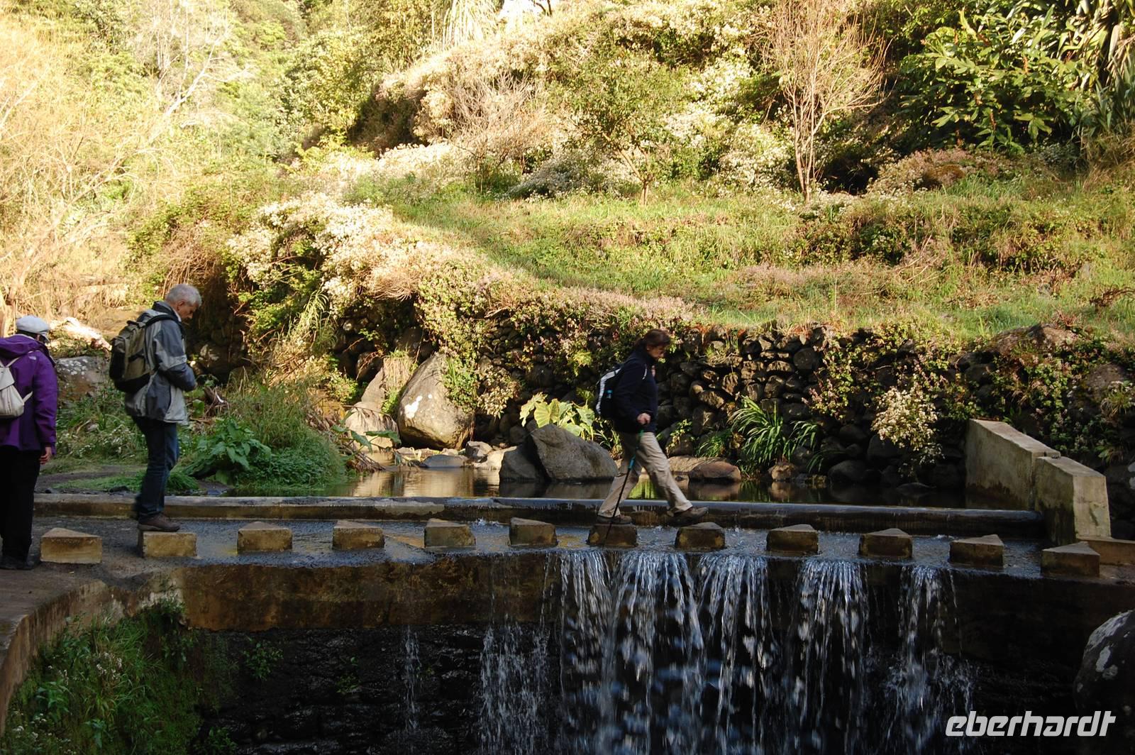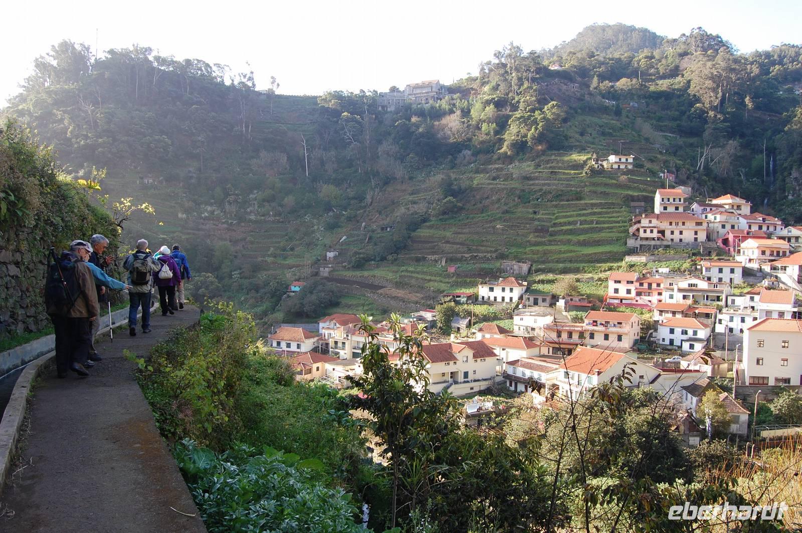 Wieder treffen wir uns alle nach dem Frühstück um 09.00 Uhr zur Abfahrt Richtung Osten, um in einem Tal bei Marocos an einem künstlichen Wasserlauf (Levada) zu starten. Um 09:30 Uhr geht es ohne Steigung immer entlang des kleinen Bewässerungskanals durch kleine Ortschaften. Im Gänsemarsch und in halber Höhe am Hang spazieren wir bei tollem Sonnenschein zwei Stunden. Fatima erläutert immer wieder die Pflanzenwelt. Die Luft wird erfüllt vom Duft der Blüten der unzähligen Mimosenbäume. Wir erhalten Einblicke in das schwierige Leben der Bergbevölkerung der Insel. Am Ende der heutigen Etappe genießen wir die Sonne und einen Kaffee im Außenbereich einer kleinen Bar. Um 12.30 Uhr steigen wir hinab ins Tal, wo der Bus im Ort bereits auf uns wartet. Nach einer kurzen Fahrt durch Machico, der ehemaligen Inselhauptstadt Madeiras, sind wir um 13.00 Uhr wieder im Hotel und genießen die Sonne am Pool oder im herrlichen Garten der Hotelanlage.