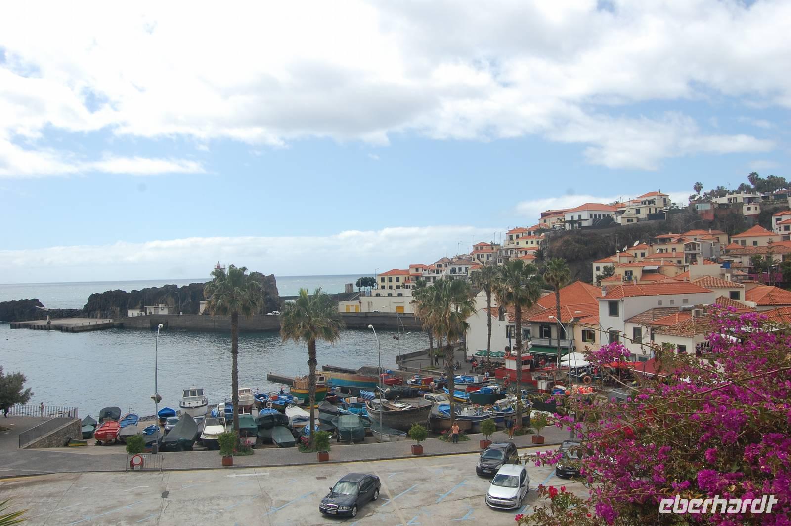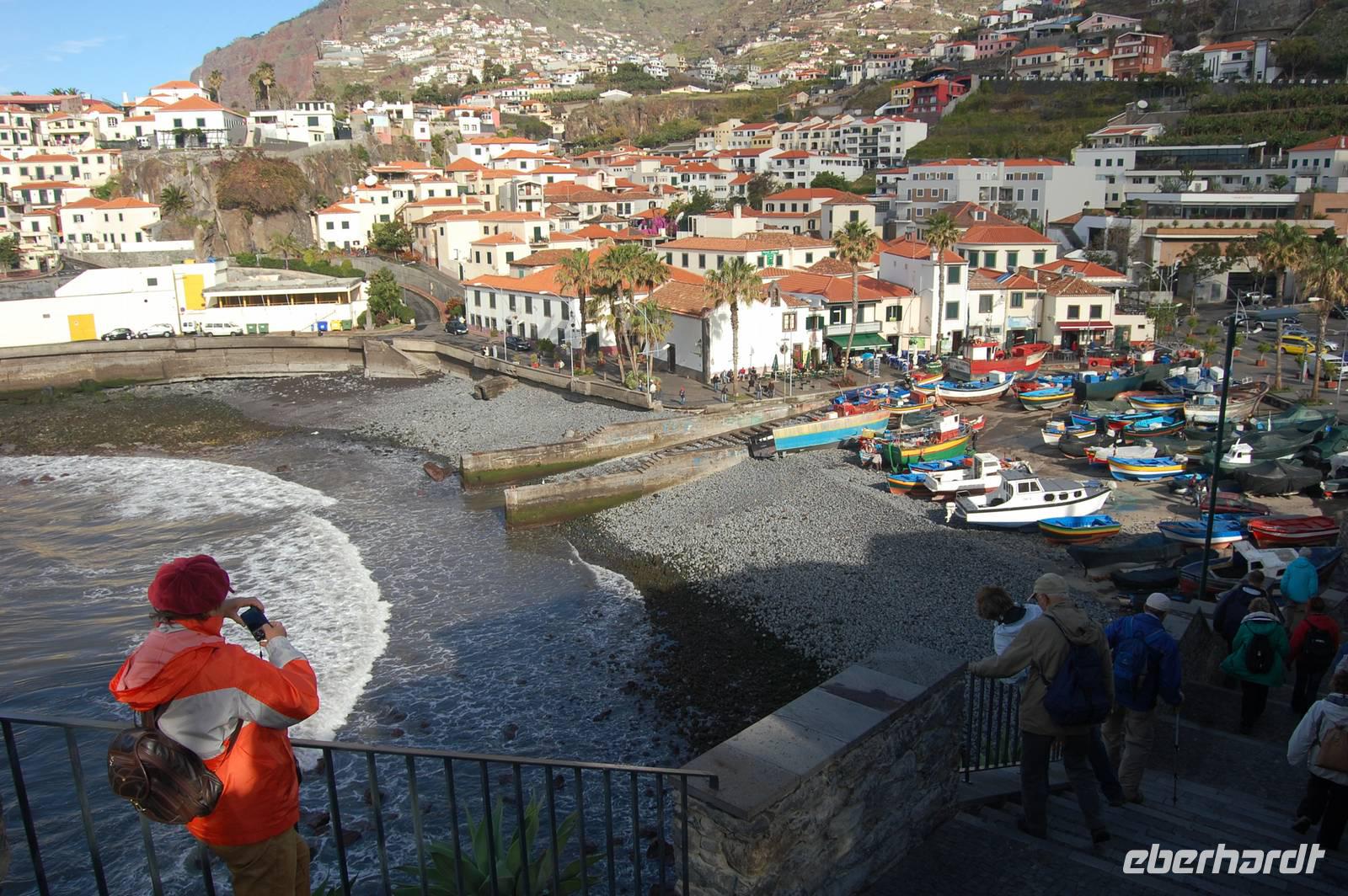 10 Uhr starten wir mit dem Bus zur städtischen Markthalle. Dort erklärt uns Fatima einige spezielle Früchte, die hier auf Madeira wachsen, z.B. Zuckeräpfel, Silberbananen, Maracujas in verschiedenen Geschmacksrichtungen und kleine Mangos. Nach dem Besuch der quirligen Markthalle und etwas Freizeit für Besorgungen beginnt eine kleine Stadtrundfahrt. Wir verlassen Funchal über die Hotelregion in Richtung West und gelangen zum schönsten Fischerdorf der Insel „Câmera de Lobos" - „Bucht der Seelöwen". Diese Bucht hat Winston Churchill besucht und auch wir genießen eine „Nikita", ein Getränk aus Weißwein, Bier und Ananas-Eiscreme.