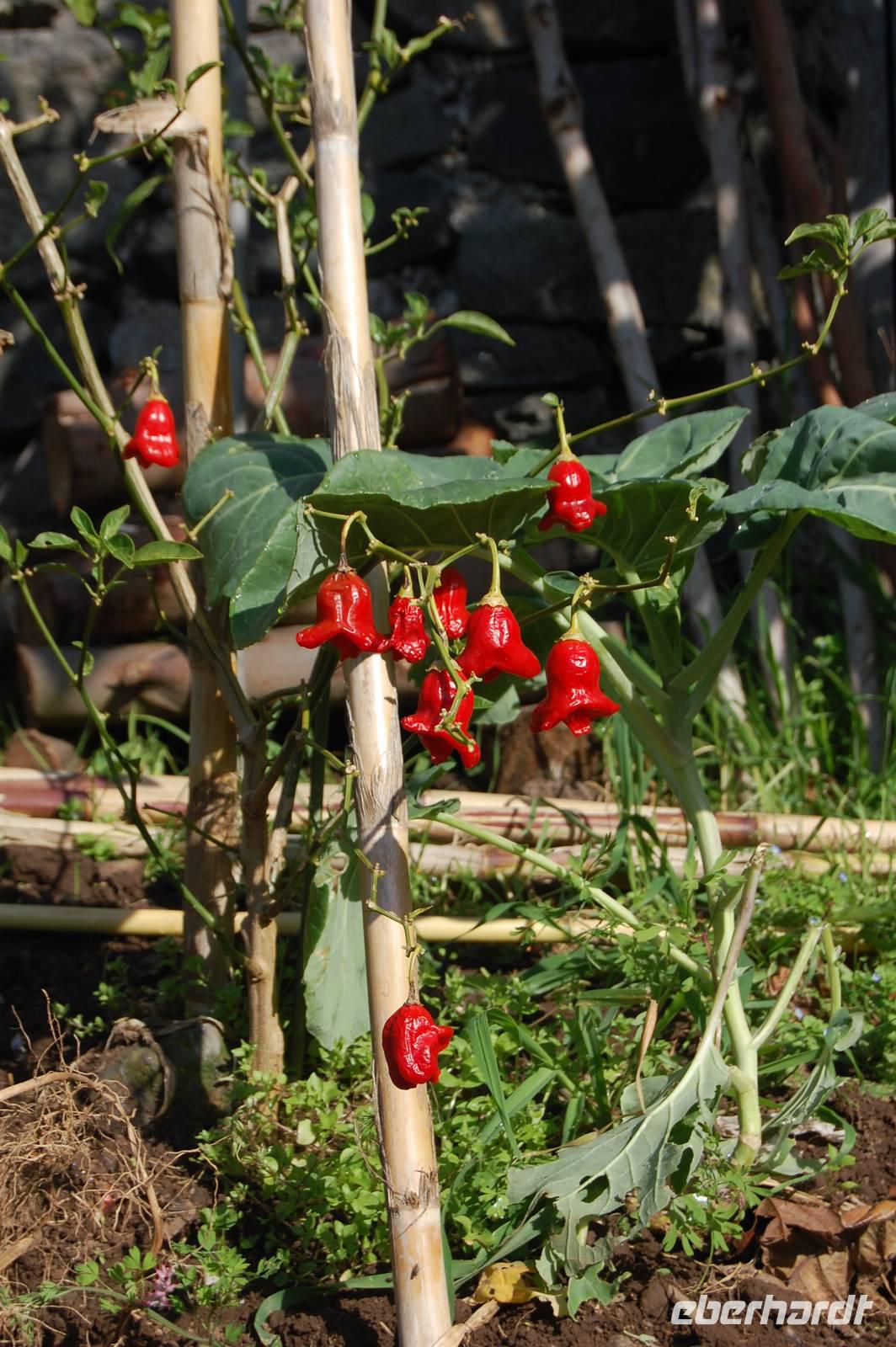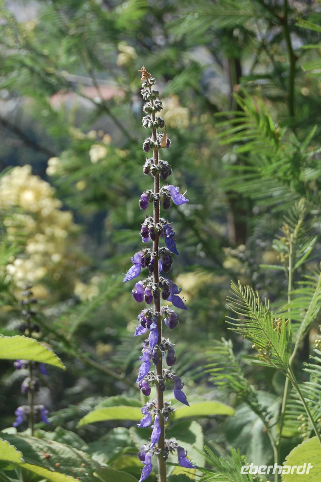 Um 14.00 Uhr treffen wir in Esmeraldas Kräutergarten ein. Auf der Terrasse gibt es Zitronengras-Tee und ein Stück Kuchen. Anschließend führt uns Esmeralda durch Ihren Kräutergarten und lässt uns verschiedene Kräuter riechen oder sogar kosten. Die botanische Vielfalt und ihre umfangreichen Kenntnisse lassen uns staunen.