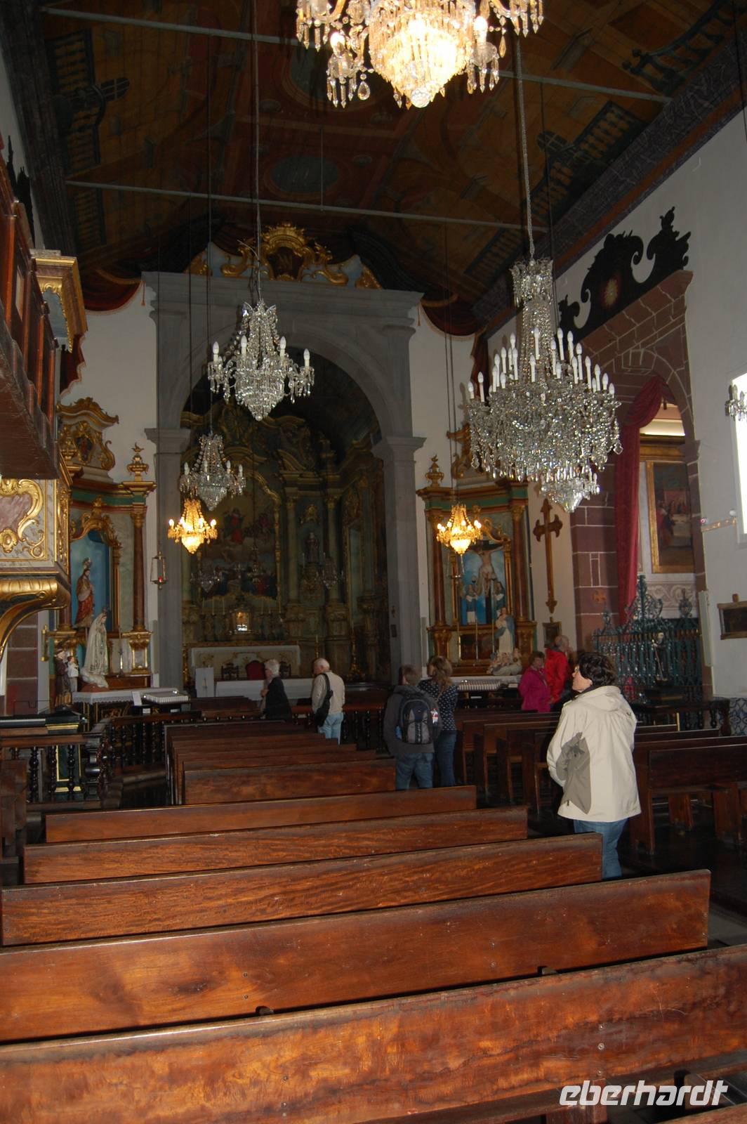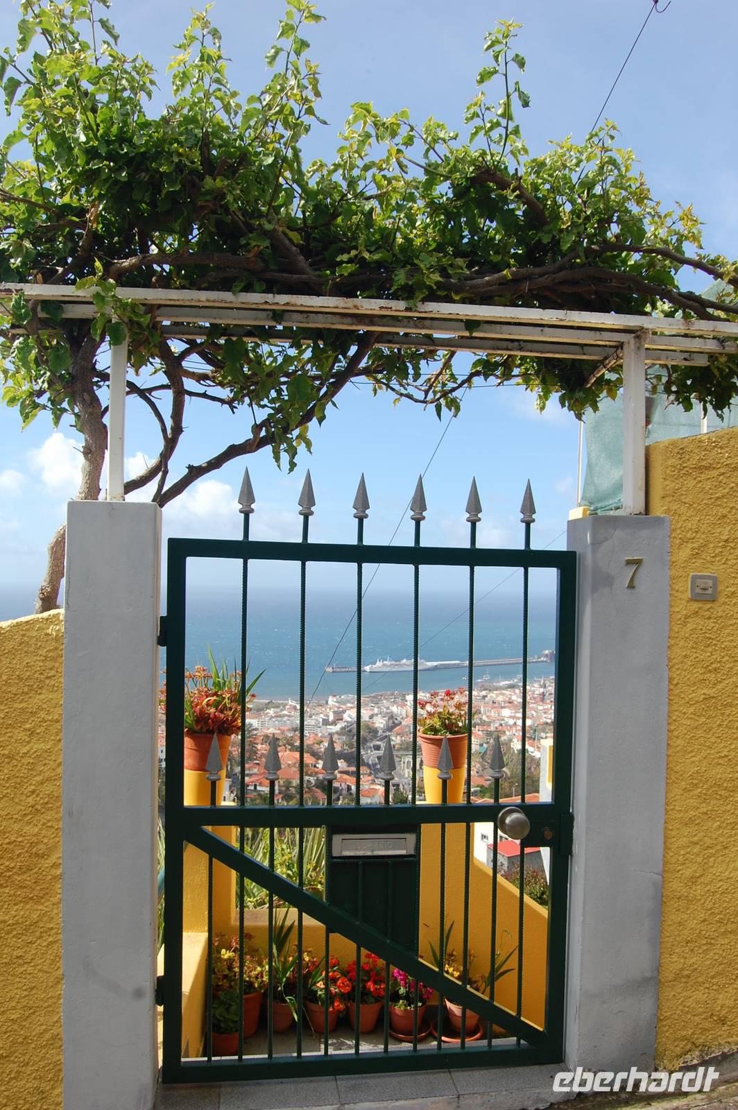 Um 14.00 Uhr bringt uns der Reisebus wieder hinunter in die Ortschaft „Ribeira Brava" - „Wilder Bach". Interessant ist hier die Kirche „Sao Bento". Ein kleiner Bummel durch die engen Gassen hinter der Kirche und schon sind wir wieder am Bus, mit dem wir um 15.00 Uhr zur Weinprobe zu fahren. Wieder steigt der Bus einen Hang hinauf, wo wir auf halber Höhe an einer Quinta - einem ehemaligen Herrschaftshaus - stoppen. Zu Fuß müssen wir den kleinen Weinberg hiauf, um die Terrasse des Hauses zu erreichen. Der Eigentümer lädt uns zu einer kleinen Hausbesichtigung ein, die im Weinlager endet. Mit einem Gläschen Madeira-Wein und einem Stück Honig-Kuchen genießen wir den Ausblick in die weite Landschaft. Nach dieser letzten Station bringt uns der Bus um 16 Uhr zurück zum Hotel, wo wir bis zum gemeinsamen Abendessen (fakultativ) noch genügend Zeit haben.
