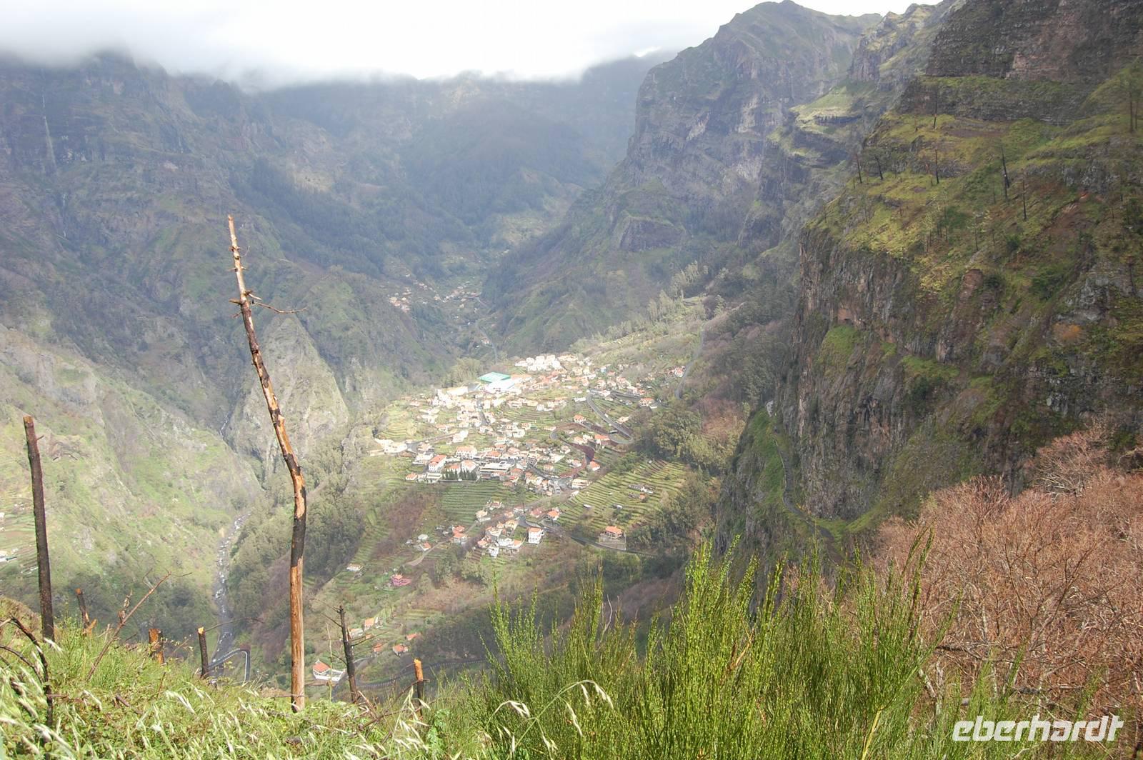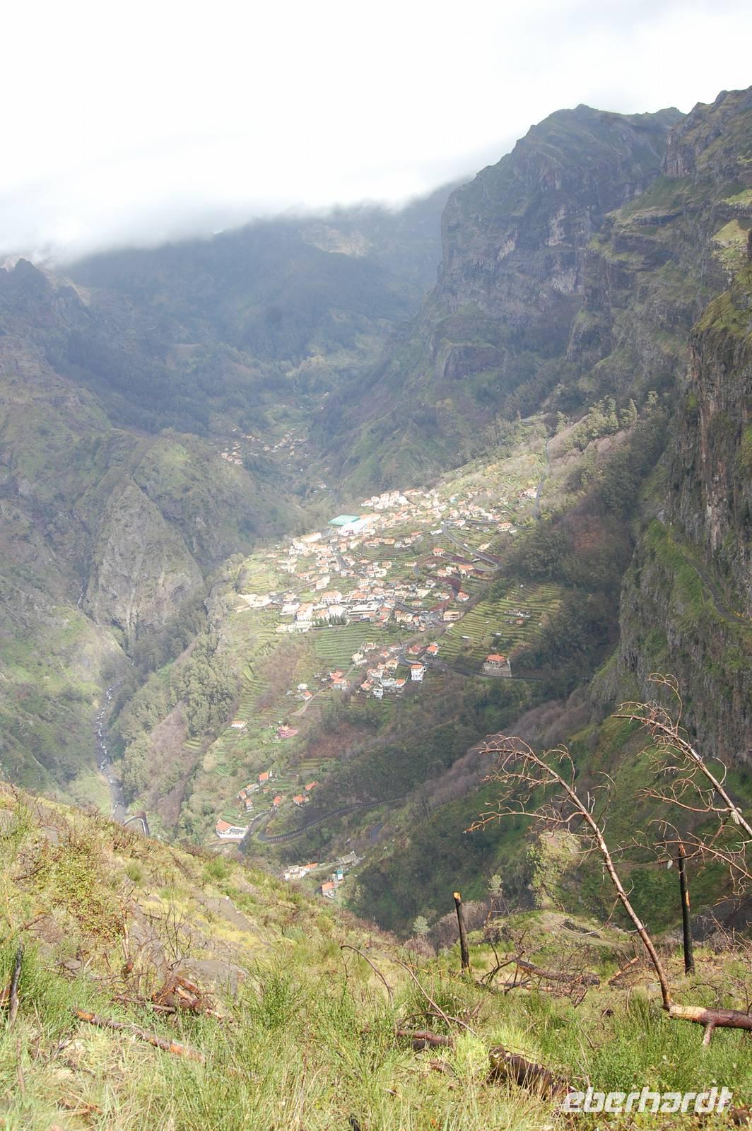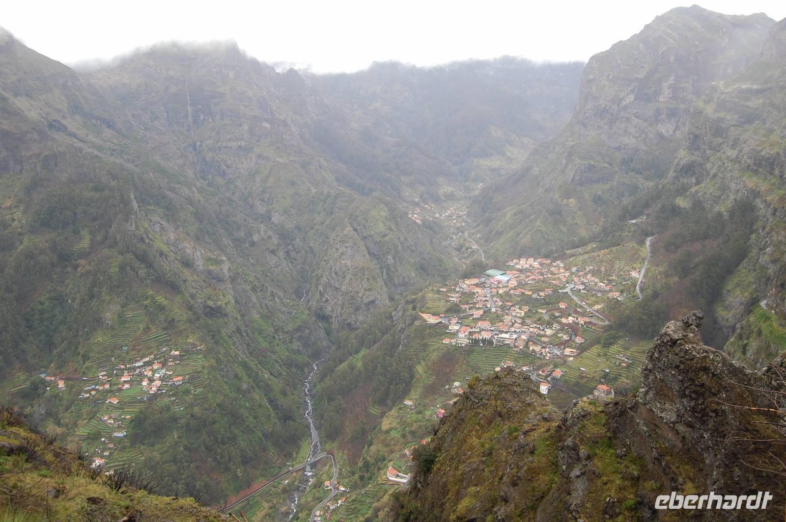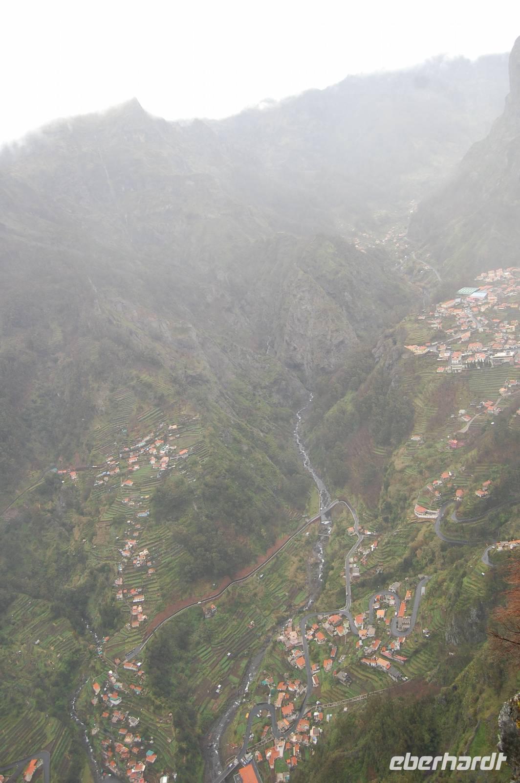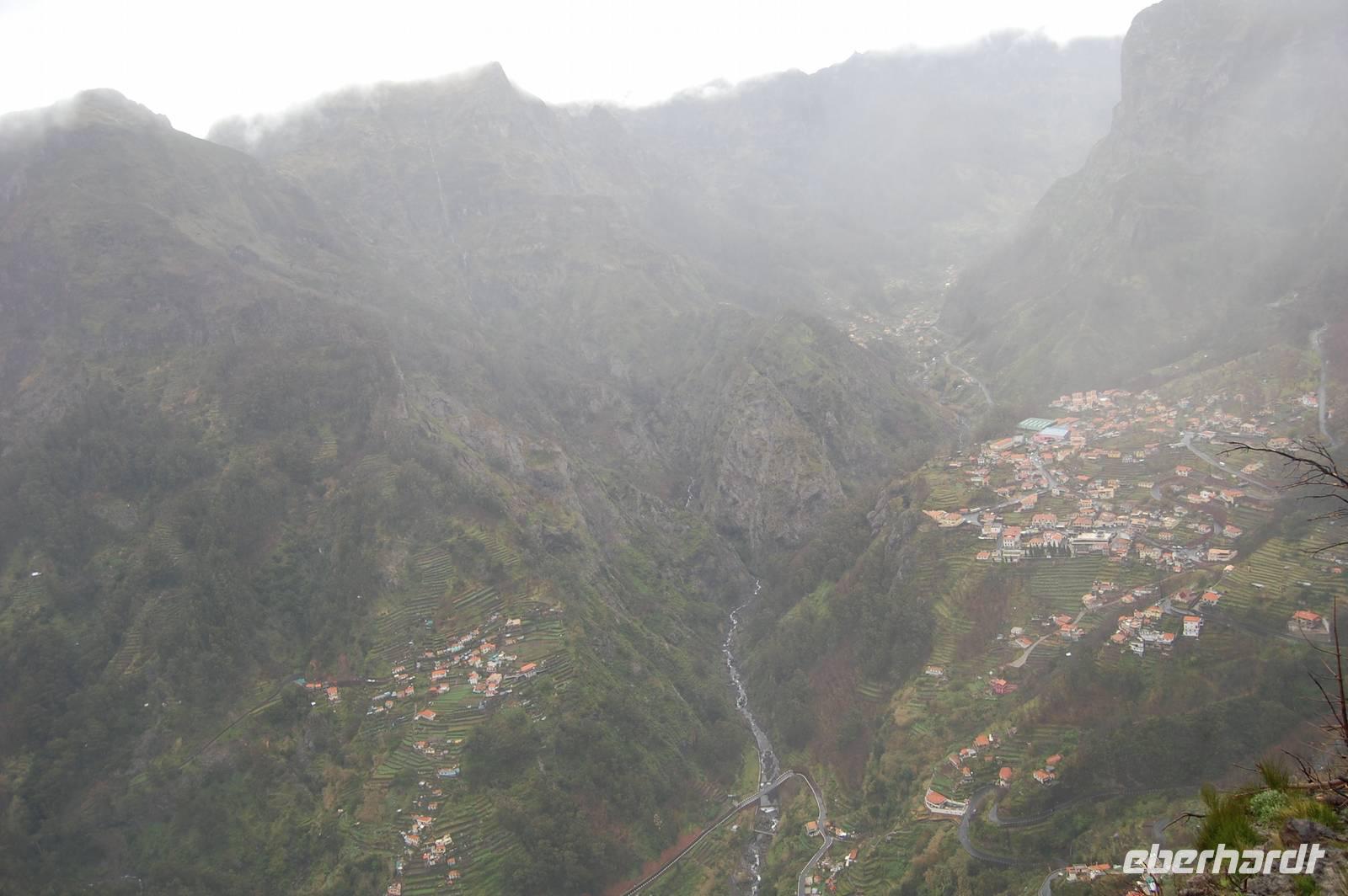 Anschließend bringt uns der Bus hinauf in die Berge bis auf eine Höhe von 1050 m. Wir stoppen am Aussichtspunkt „Eira do Serrado", von wo aus wir einen fantastischen Blick ins Nonnental haben. Besonders als die Sonne die Wolken durchbricht, wird die Ortschaft im schwer zugänglichen Tal zu einem tollen Fotomotiv.