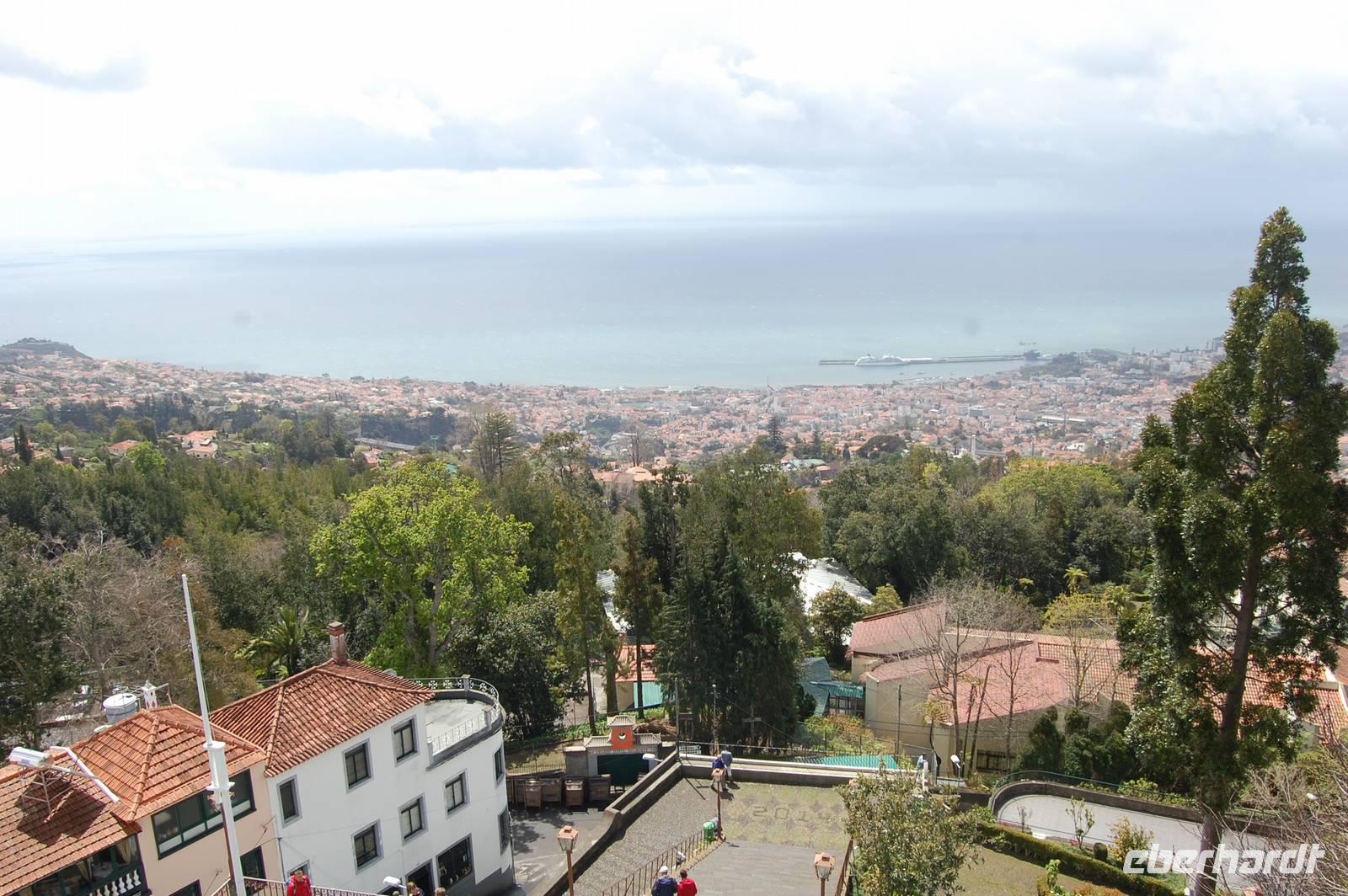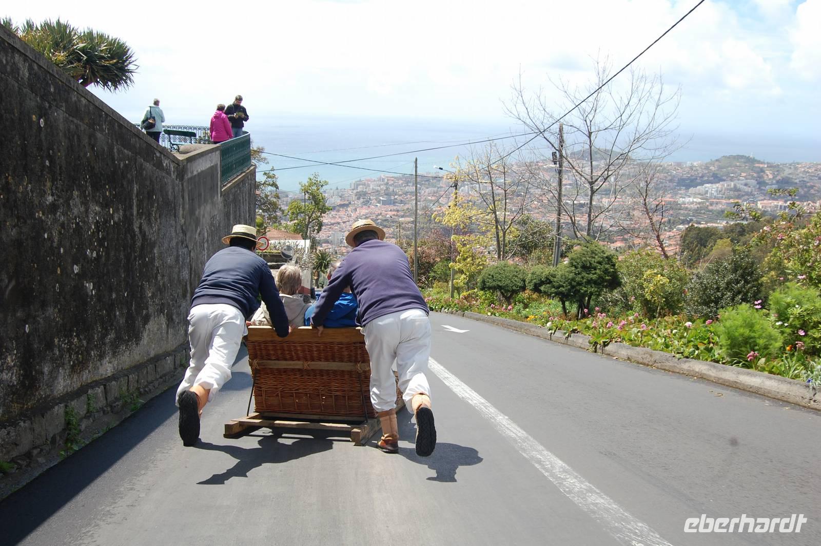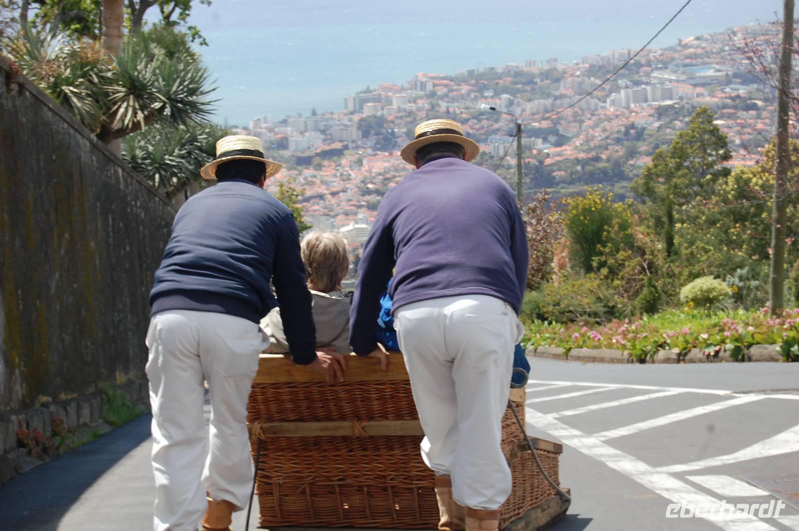 13:00 Uhr starten wir und fahren direkt nach Monte, wo wir nur wenige Stufen zur Wallfahrtskirche hinaufsteigen müssen. Von der Aussichtsplattform der Kirche, die man über die schmalen Treppen der beiden Kirchtürme erreichen kann, bietet sich ein grandioser Blick über Funchal bis hin zur Südküste der Insel. Wieder unten angekommen kann man eine Attraktion auf Madeira buchen.