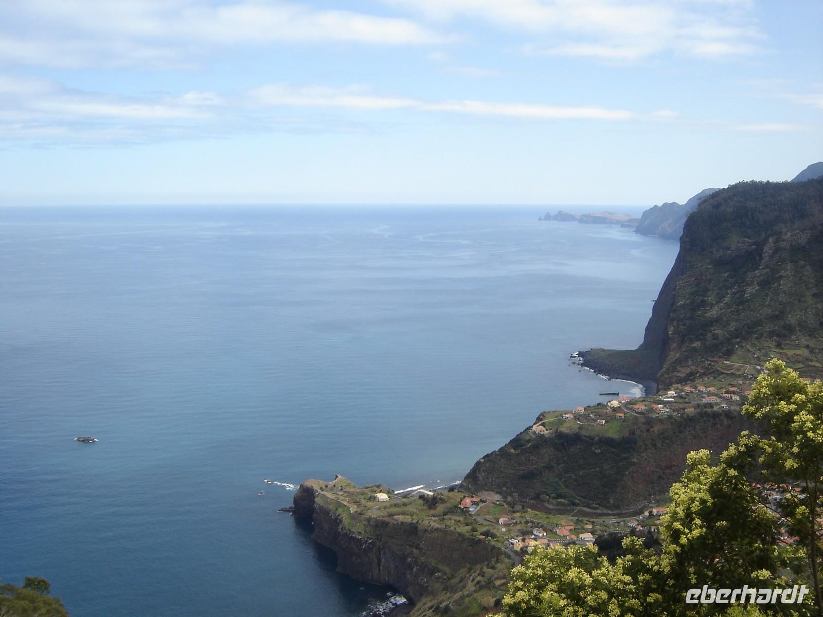 Entlang der Küste fährt uns Crogerio nach Cabo Girao und anschließend zum Ribeira Brava, wo die schöne Kirche Sankt Benedikt aus dem 16. Jahrundert zu bewundern ist. In Porto Moniz lud ich unsere Gäste ein, das kleine aber sehr sehenswerte Aquarium zu besuchen. Verschiedene Seesterne, Algen und kleine sowie große Fische, darunter auch Rochen und Haie, waren zu finden. In dem pittoresken Fischerdorf Porto Moniz erlebten wir auch das tosende Meer und die natürlichen Meeresschwimmbecken im Vulkangestein. Über Sao Vicente, wo der Brautschleierwasserfall die steilen Hänge herabfällt, fahren zurück nach Canico de Baixo. Am Abend organisierte ich ein Abendessen im Panoramarestaurant Mirinda, welches weit oben über der Funchal liegt. Wir genossen den Sonnenuntergang und am Abend die funkelnden Lichter der Hauptstadt bei einem Espetada-Essen (Rindfleischspieß) und einem Poncha, dem Nationalgetränk der Insel.