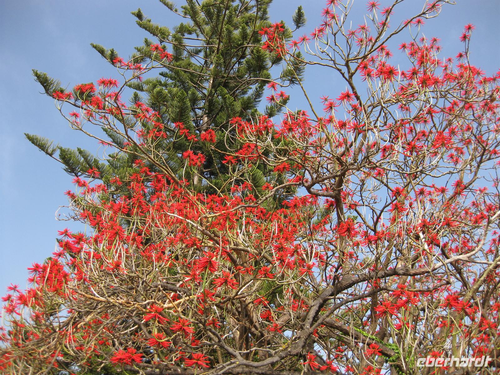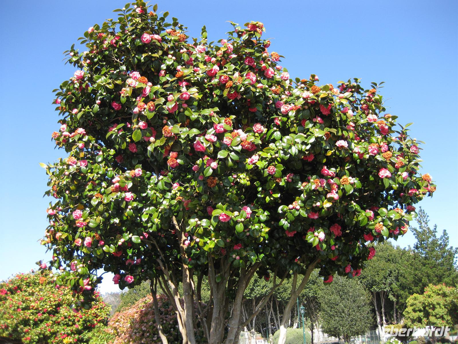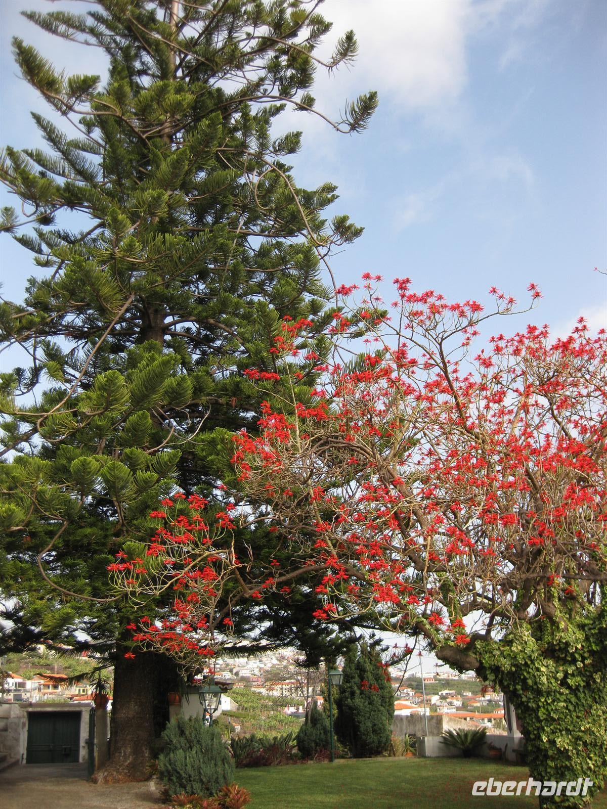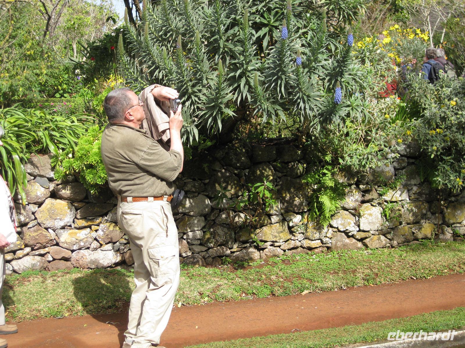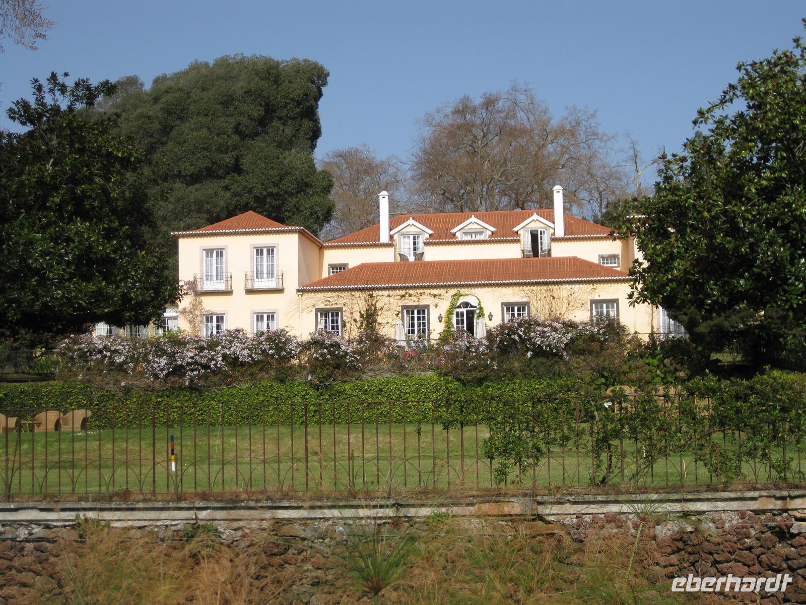Madeirensern auch Palheiro Gardens genannt, unser erstes Ziel. Vom Eingang führt der Weg an hunderten weiß bis dunkelrot blühenden Kamelienbäumen vorbei in den Park. Auf dem Areal befindet sich ein Herrenhaus, das von den Besitzern noch bewohnt ist. Der daran unmittelbar angrenzende Park ist für die Besucher nicht zur Besichtigung frei gegeben. Das übrige Gelände steht für die Besucher offen. Es beherbergt einen wunderschön angelegten Park mit vielen einheimischen Blumen, Planzen und Bäumen, aber auch mit exotischen. Helena führt uns durch den Park. Sie erläutert uns die Geschichte und sie zeigt und erklärt uns die verschiedenen Pflanzen. Im Garten befinden sich auch eine kleine Kapelle und ein Teehaus, in dem man einkehren kann. Gleich neben dem Park befindet sich das Golf-Hotel und der Golfplatz. Dieses Areal gehörte früher mit zu Blandy's Garden. Nachdem sich alle satt gesehen haben, spazieren wir wieder zum Bus.