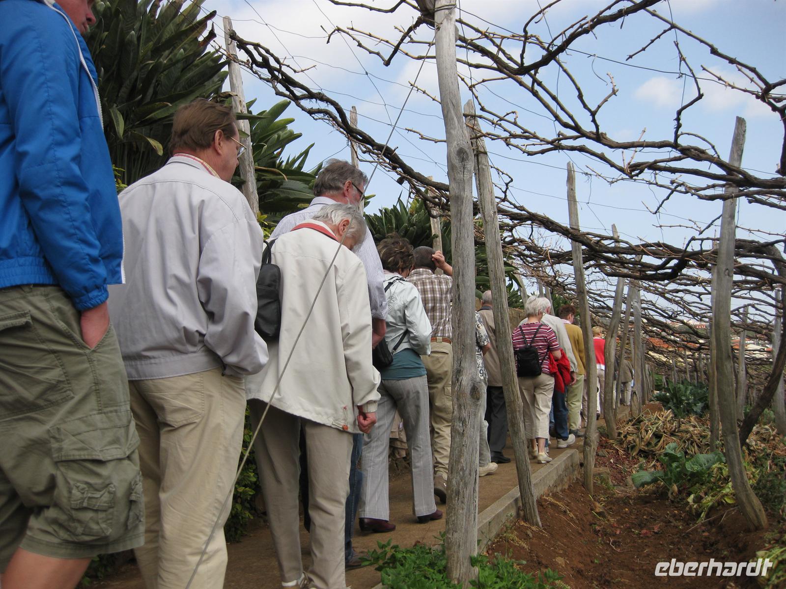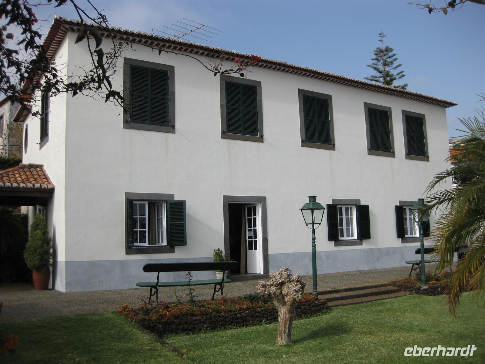 Bananenplantage vorbei bis zum Haus, in dem der Madeira-Wein gelagert wird. Wir dürfen den Wein und den Honigkuchen Bolo de mel kosten. Dann führt uns der Gutsbesitzer zu seinem Herrenhaus aus dem 17. Jahrundert, das von einem wunderschönen Garten umgeben ist. Zum Haus gehört auch eine kleine Kapelle. Wir können das Haus und die Kapelle besichtigen. Vom Garten aus hat man einen tollen Blick über die Landschaft bis zum Meer. Wir genießen den Besuch dieses Kleinods.