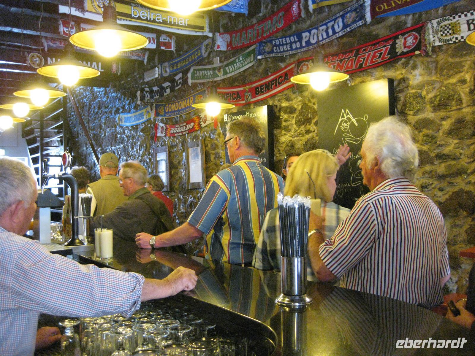 Wir erreichen Sao Vicente. Hier verlassen wir die Küstenstraße und fahren in das Landesinnere, denn wir müssen wieder auf die andere Seite der Insel, an die Südküste. Wir fahren ein ganzes Stück bergauf, dann durch einen längeren Tunnel und tauchen schließlich auf der Straße im Ribeiratal wieder auf. Bevor wir nach Ribeira Brava kommen, verlassen wir die Straße und fahren in Richtung Camara de Lobos. Dort halten wir noch einmal etwas länger. Wir entern eine Hafenkneipe und verkosten zwei Spezialgetränke Nicita und Poncha. Dabei beobachten wir die Fischer. Noch geht es ruhig zu, denn sie können erst am Abend hinaus fahren. Der Degenfisch lässt sich nur nachts fangen. Und wir erkunden noch etwas das Fischerdorf. Dann fahren wir zum Hotel nach Canico zurück.